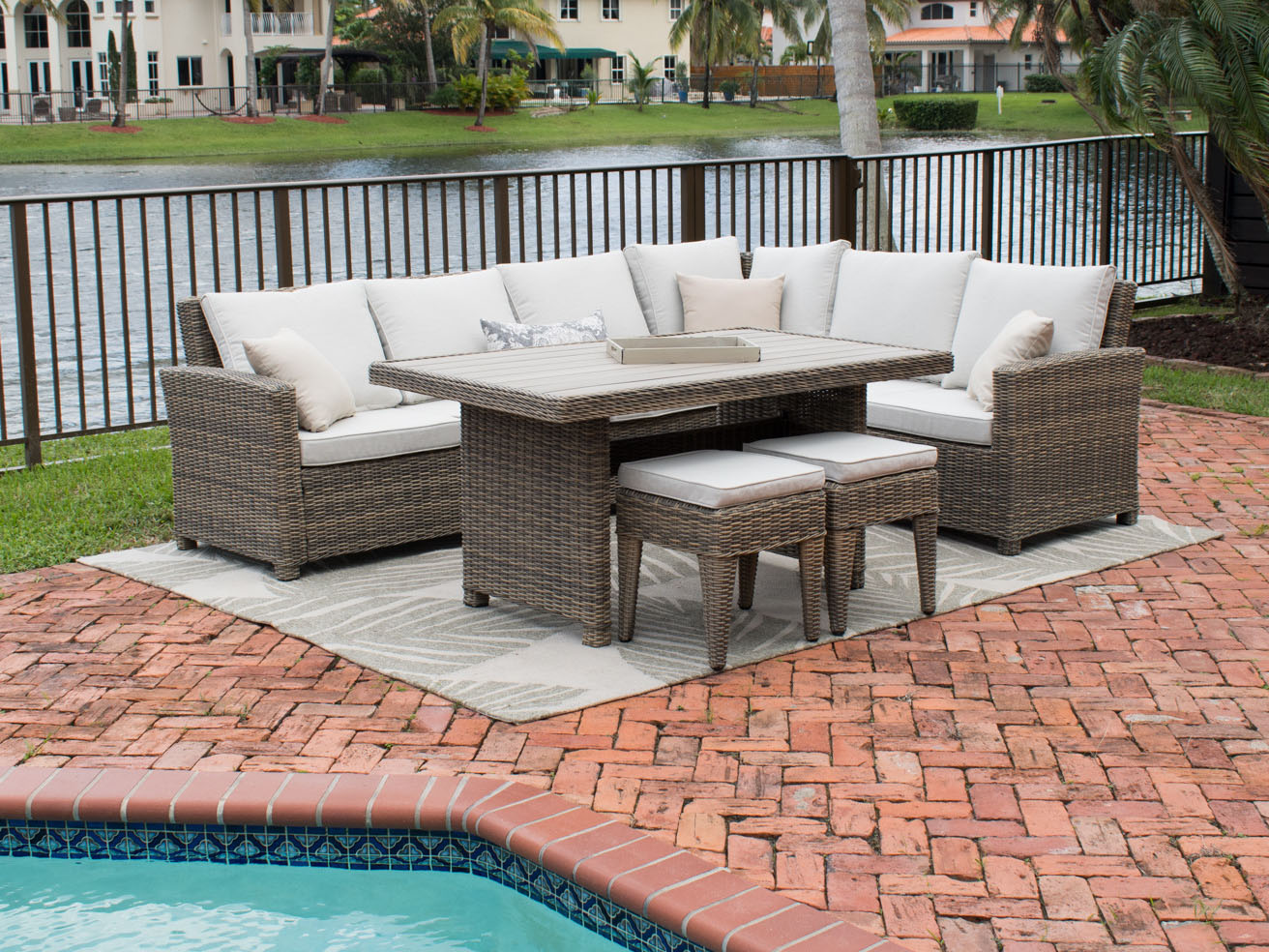 Spanish Wells Aluminum Wicker Driftwood 3 Piece Sectional Lounge Set
