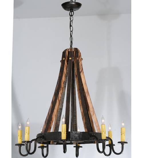 27"W Barrel Stave Madera 8 LT Chandelier - Meyda Lighting 113361