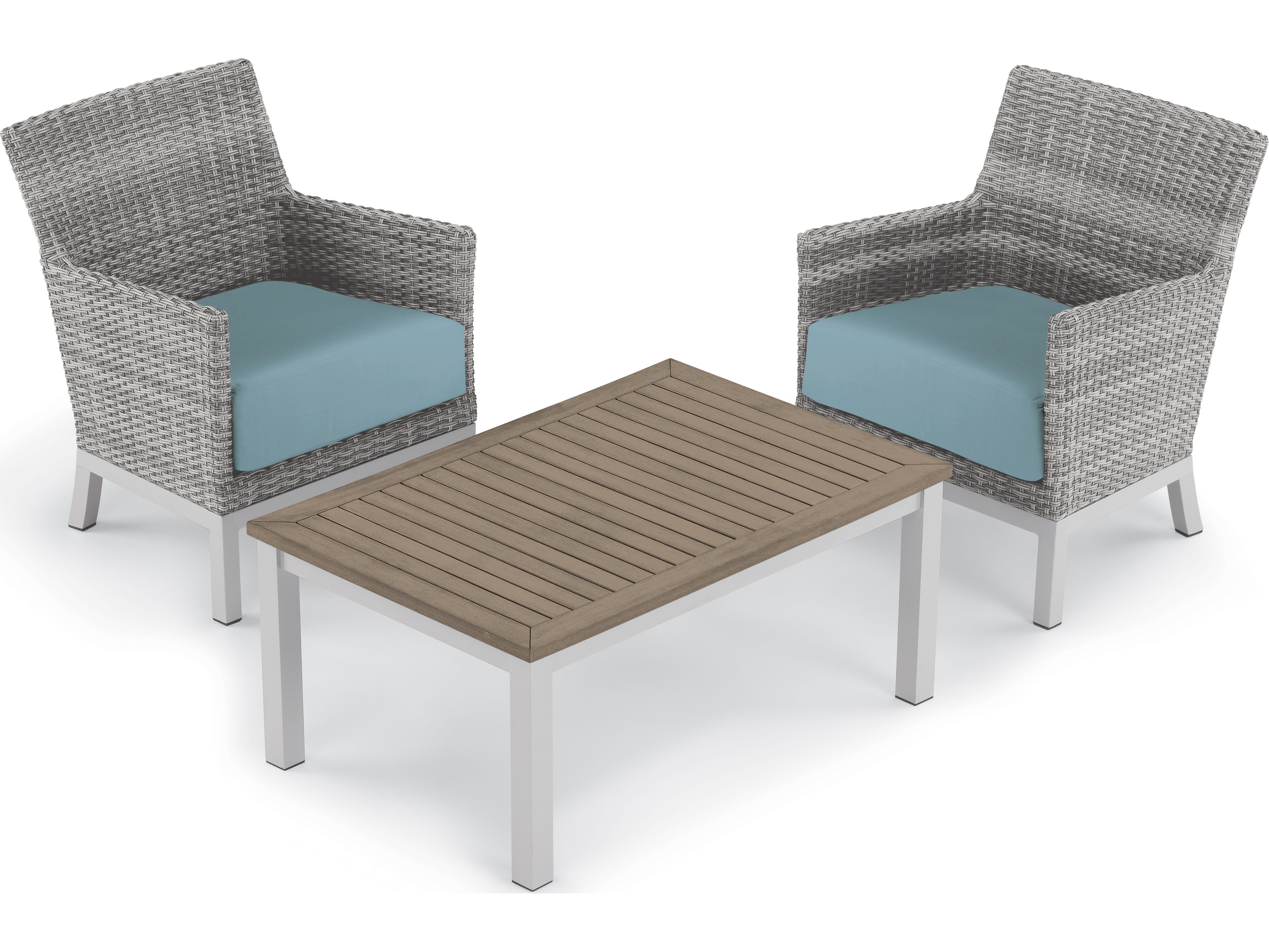 Argento Wicker 3 Piece Lounge Set with Ice Blue Cushions