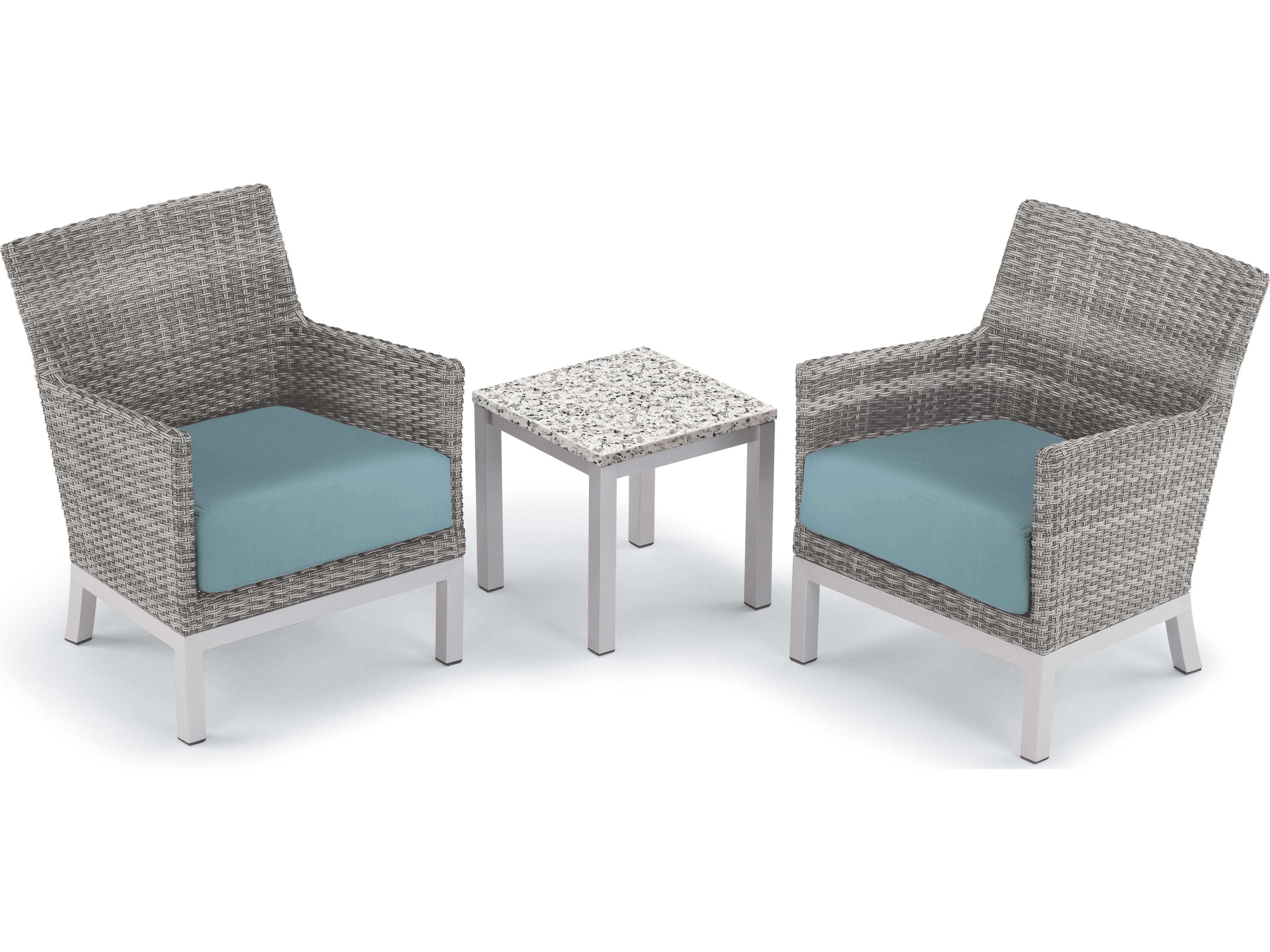 Argento Wicker 3 Piece Lounge Set with Ice Blue Cushions