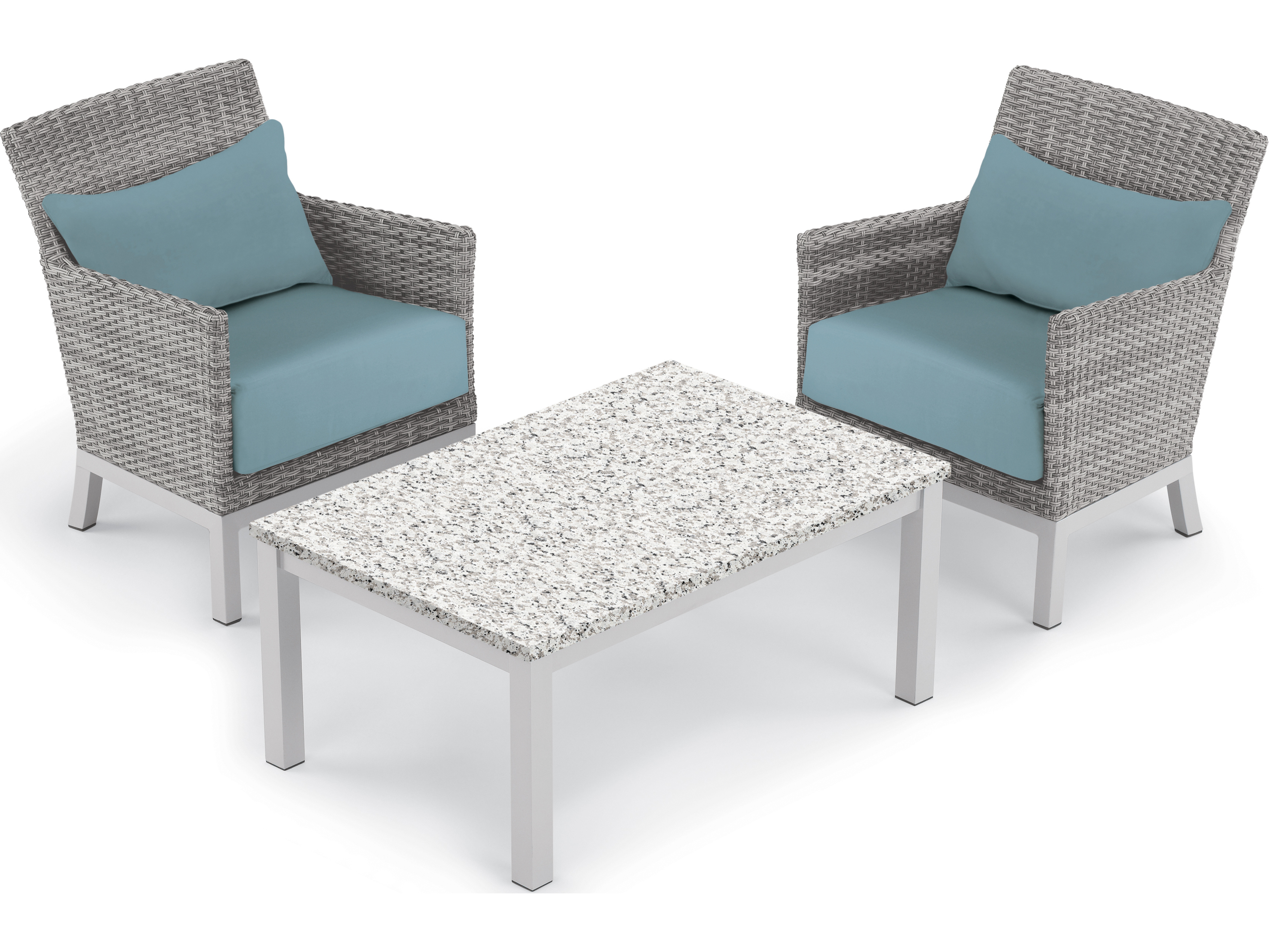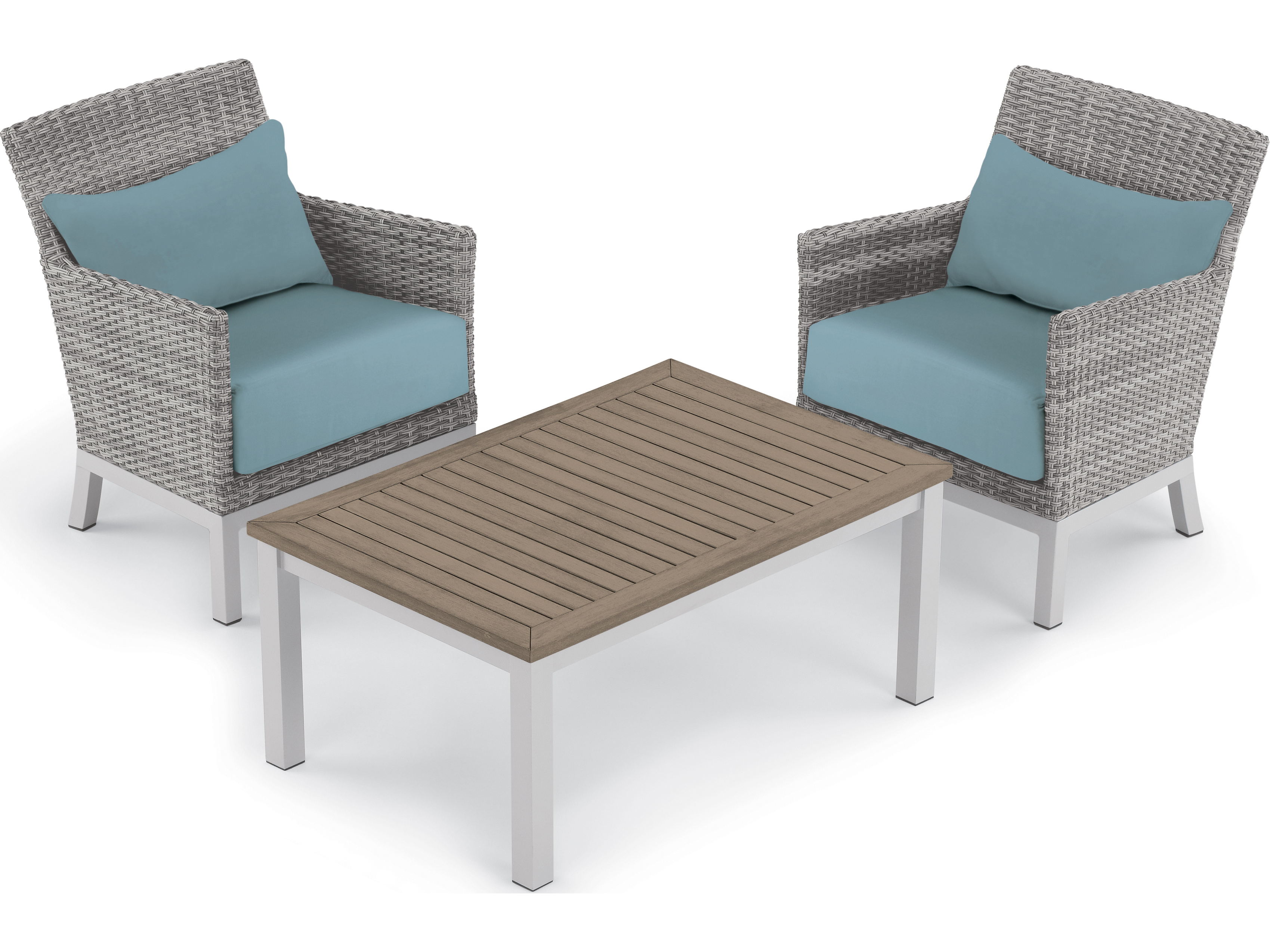 Argento Wicker 3 Piece Lounge Set with Ice Blue Lumbar Pillows & Cushions