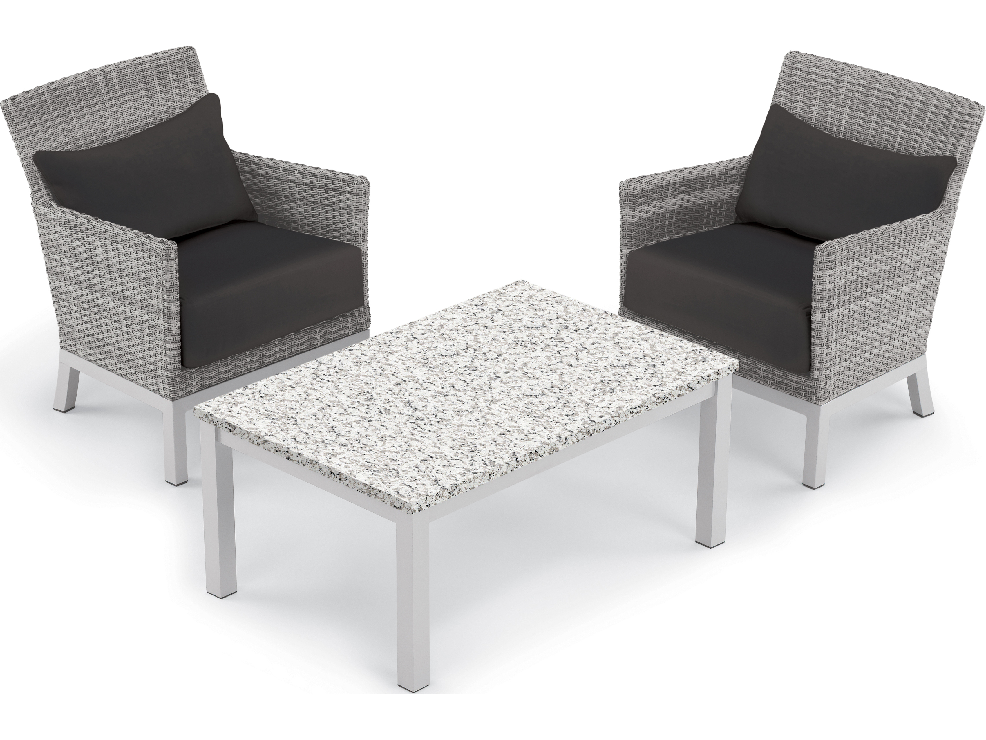 Argento Wicker 3 Piece Lounge Set with Eggshell White Lumbar Pillows & Cushions