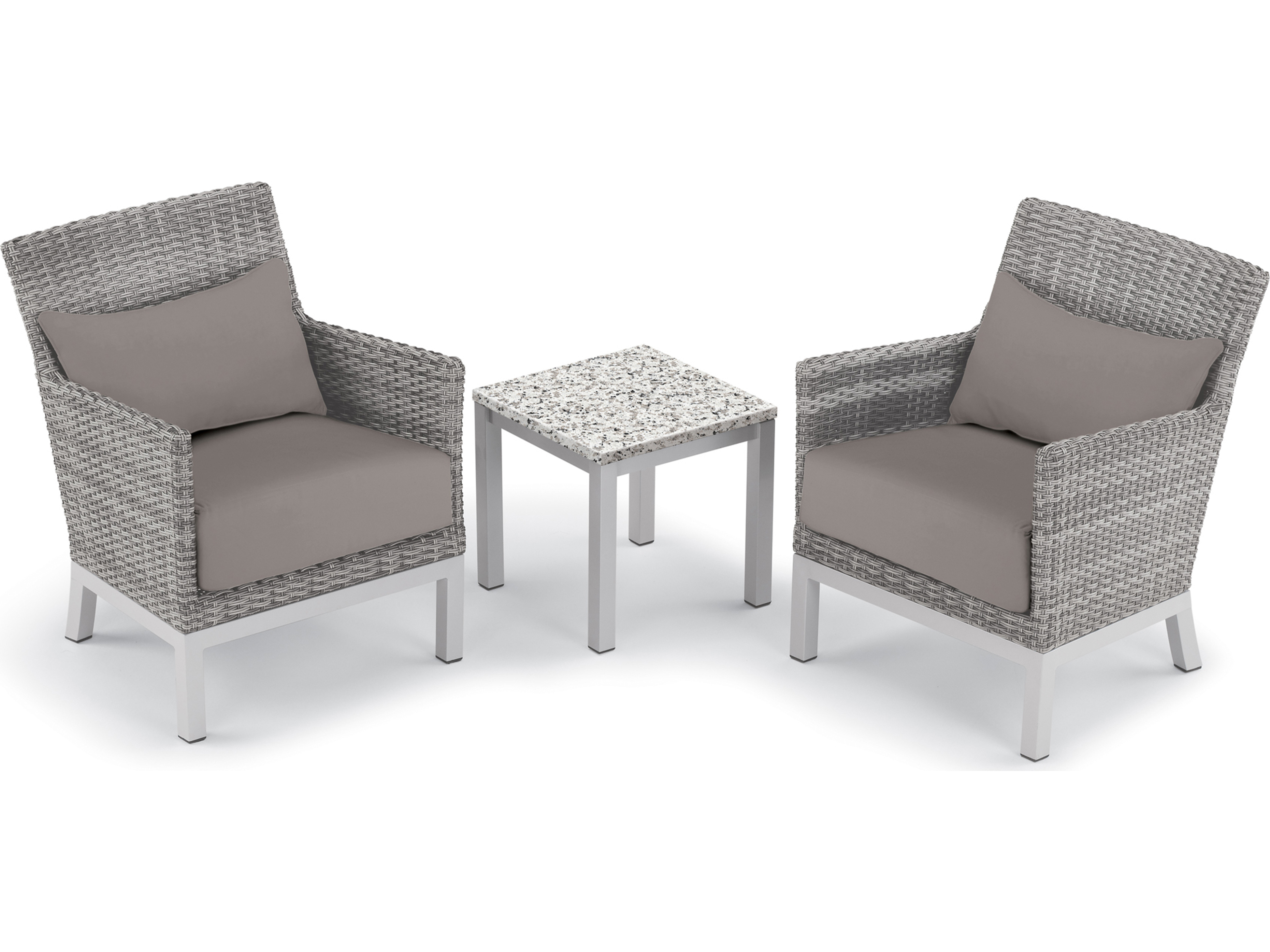 Argento Wicker 3 Piece Lounge Set with Stone Lumbar Pillows & Cushions