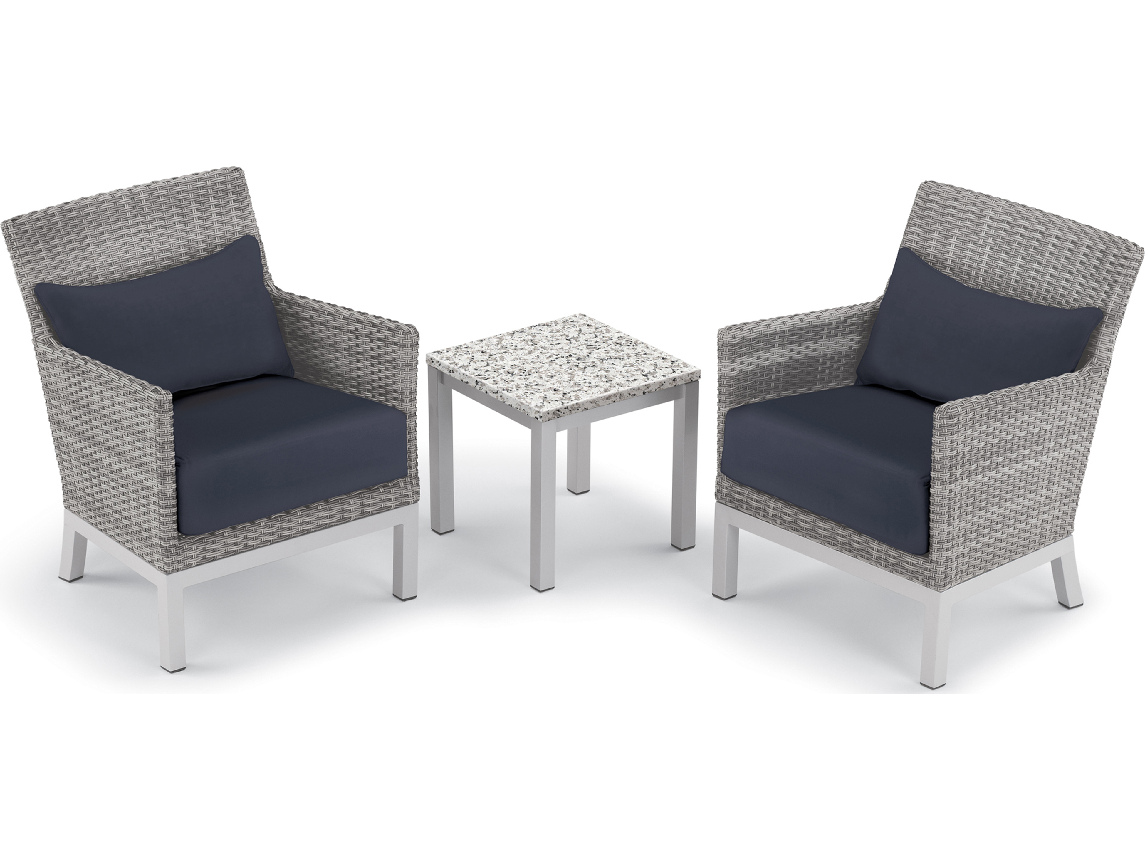 Argento Wicker 3 Piece Lounge Set with Midnight Blue Lumbar Pillows & Cushions
