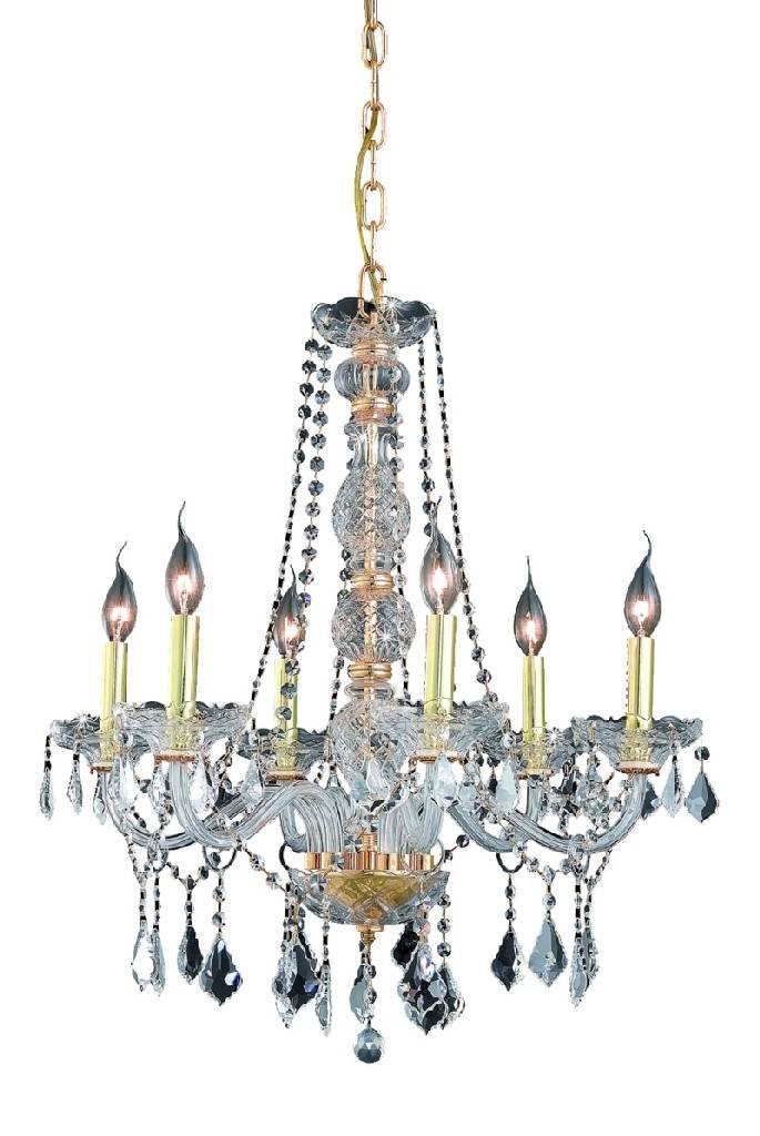 Verona 6 light Gold Chandelier Clear Royal Cut Crystal - Elegant Lighting V7856D24G/RC