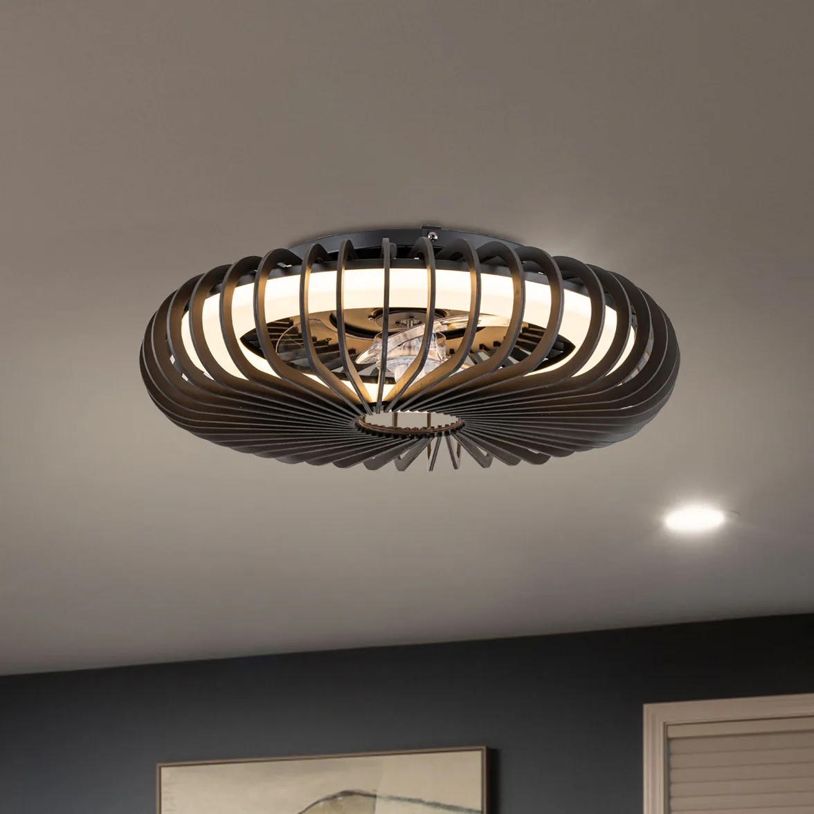 C Cattleya 23" Modern Black Dimmable LED Round Ceiling Fan with Remote Control