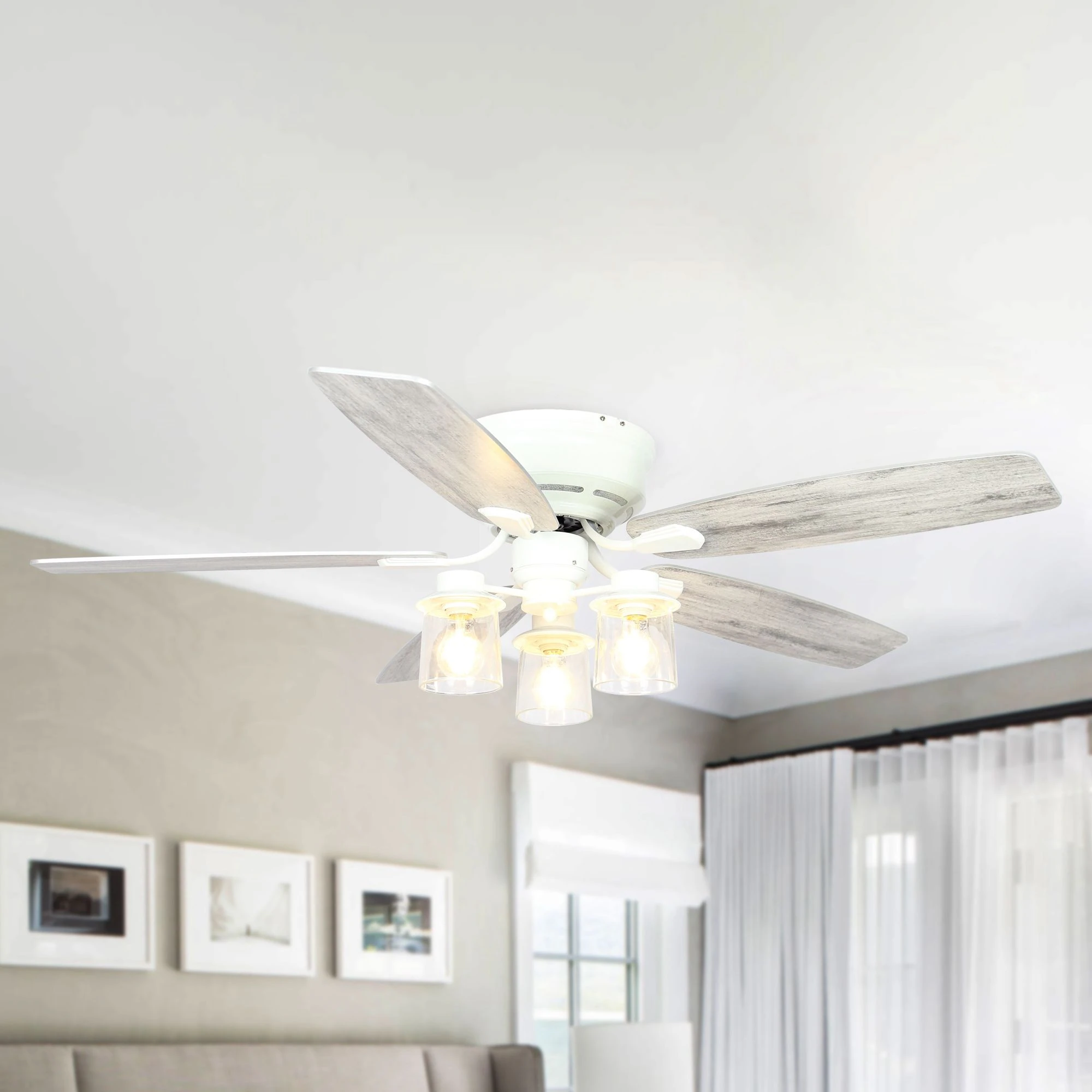 52 in. Low Profile White Flush Mount Ceiling Fan with Light Kit and Remote