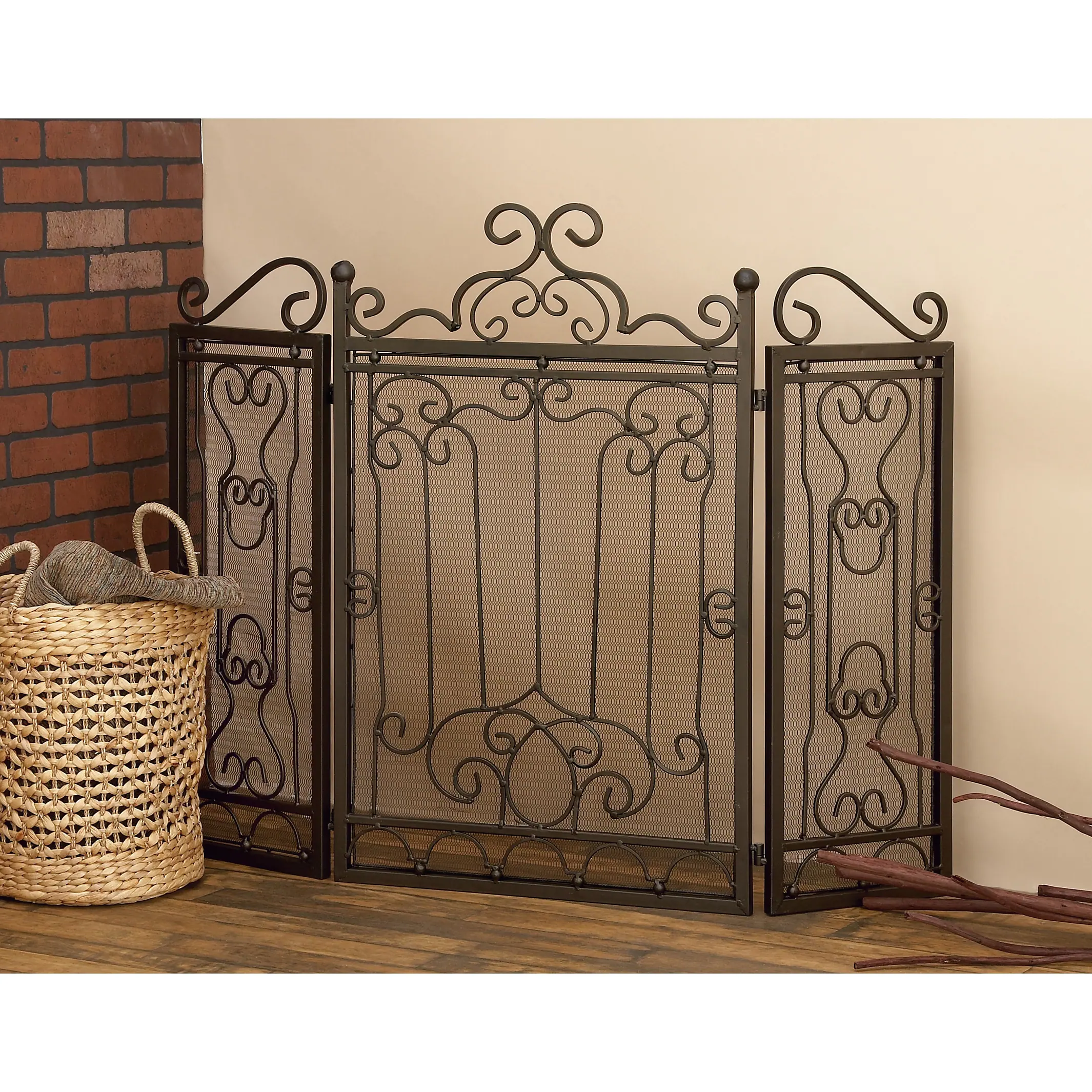 Brown Iron Traditional Wood Fireplace Screen Pattern 38 x 48 x 1 - 48 x 38