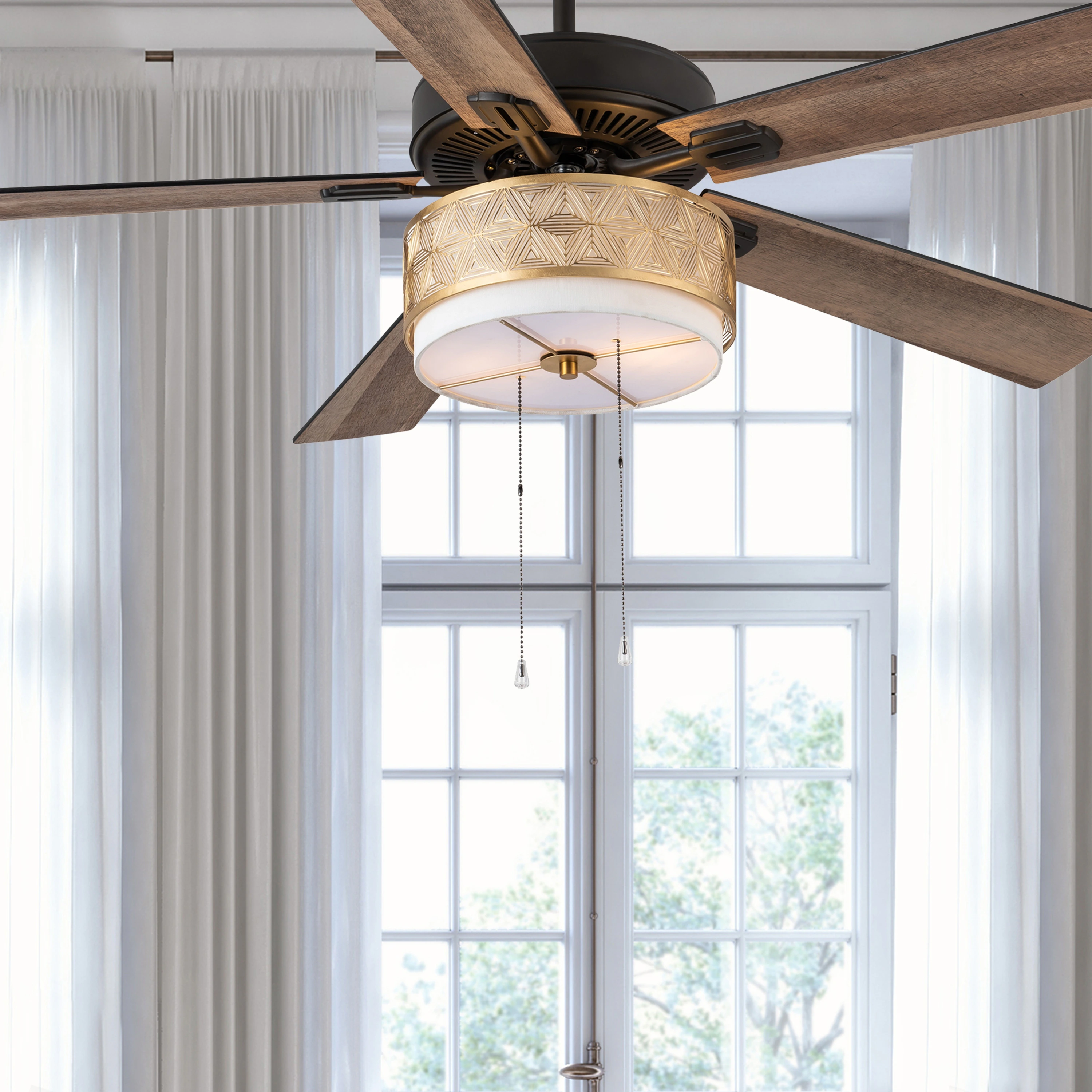 Gianna River of Goods Gold Metal and Fabric 52in. 2-Light Ceiling Fan