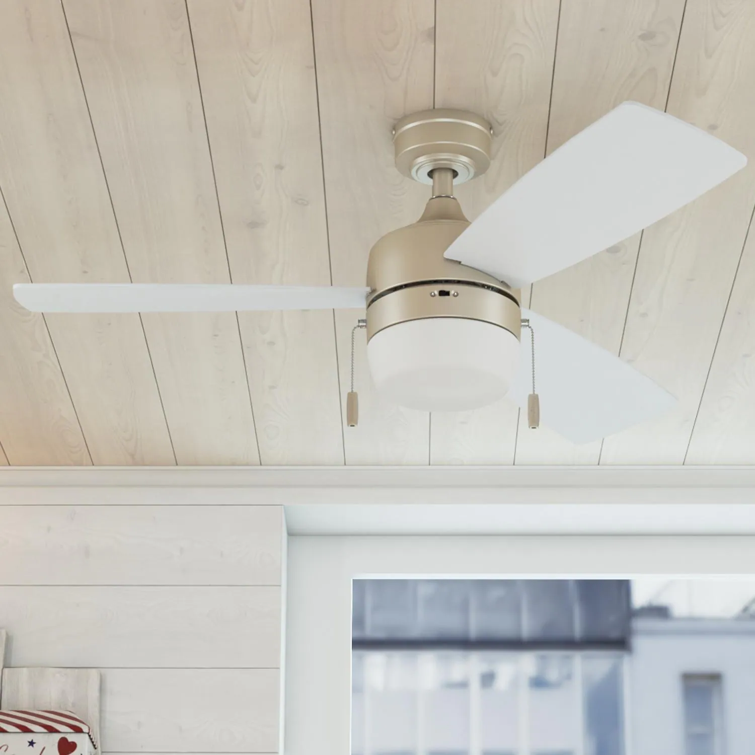 44" Honeywell Barcadero Champagne Contemporary Indoor LED Ceiling Fan with Light, Pull Chain