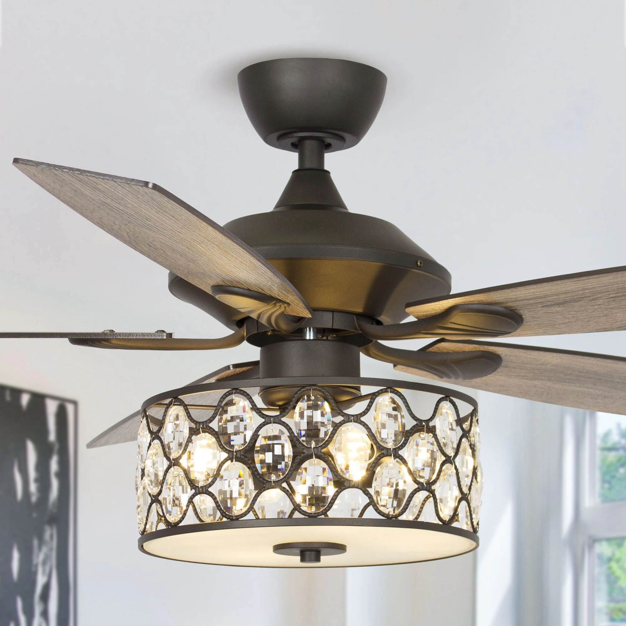 52" Matte Black Wooden 5-Blade Crystal Ceiling Fan with Remote