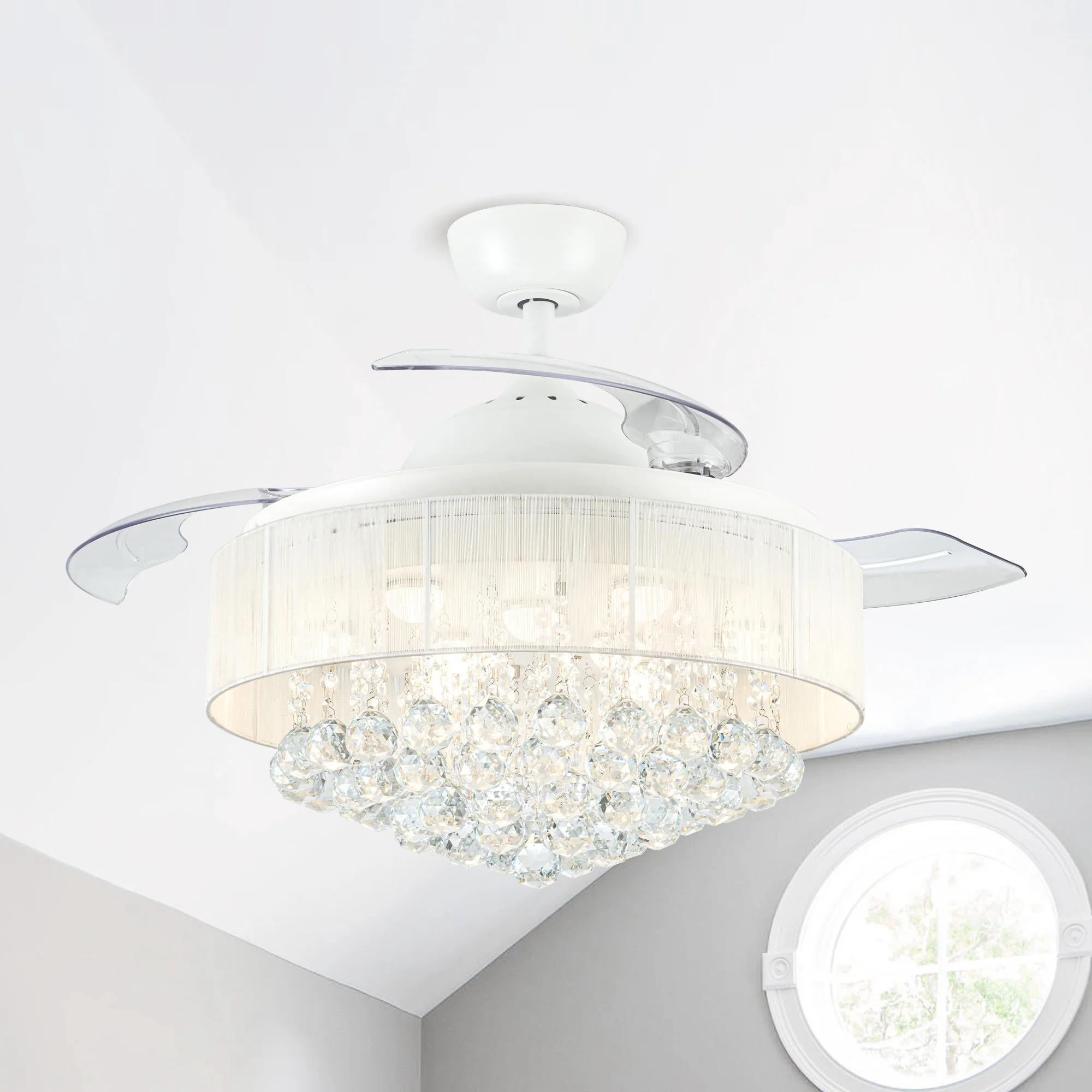 36-in Chrome Retractable Crystal Ceiling Fan with Remote