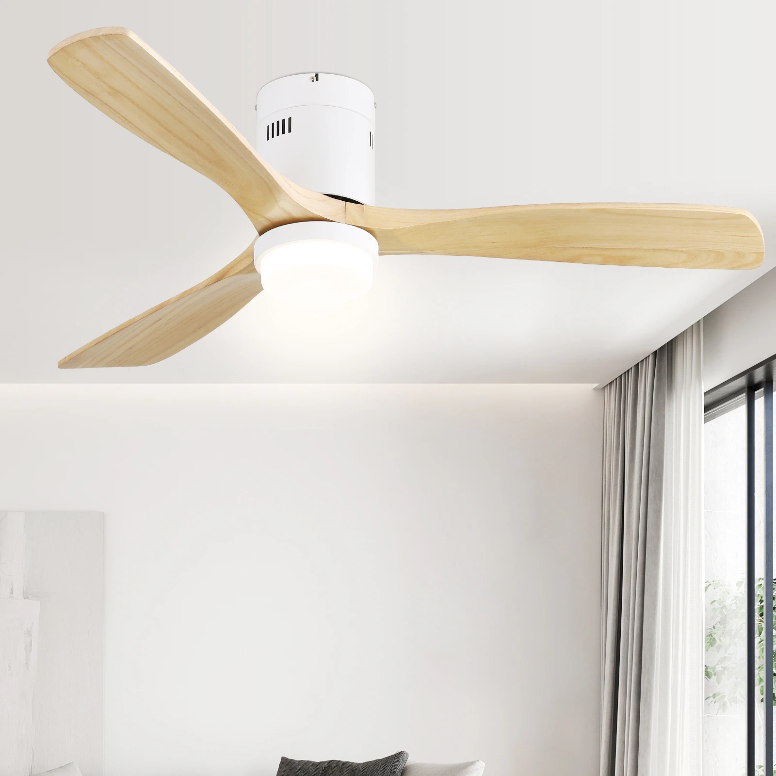 52" Low Profile Ceiling Fan with Light and Remote,Wood Blades,Integrated LED,3 Light options
