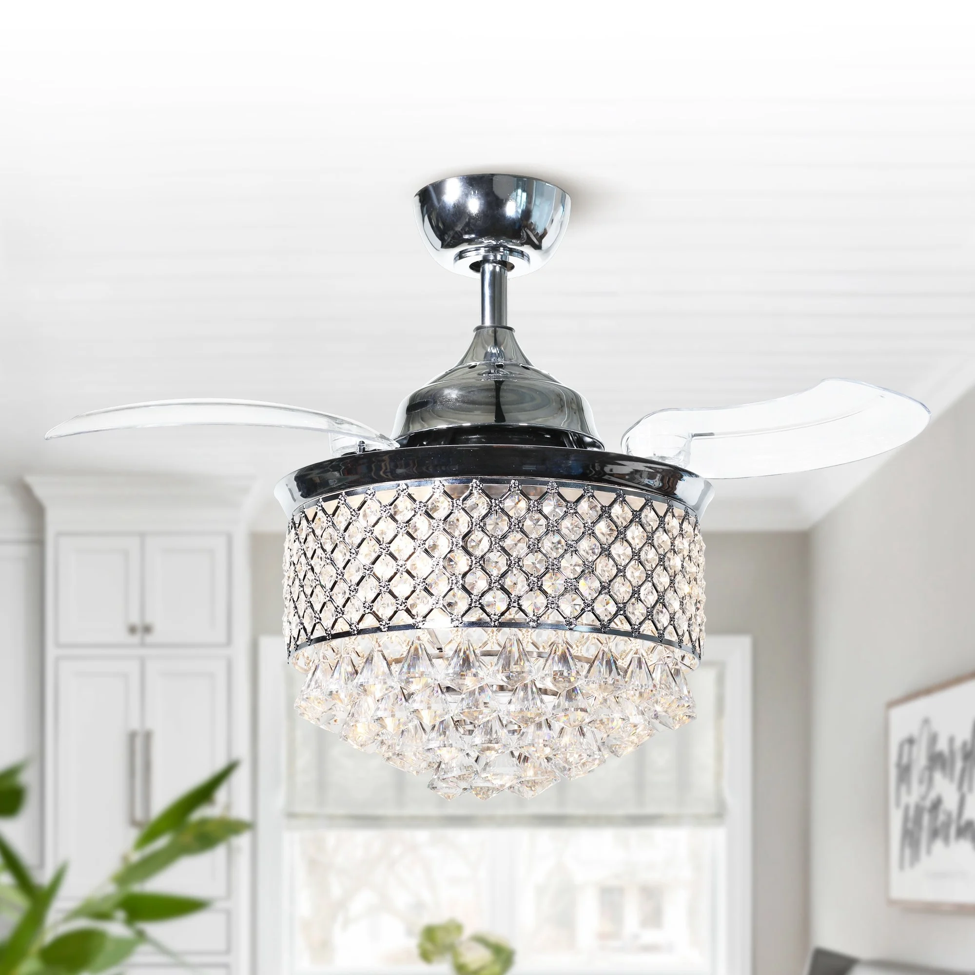 Chrome 36-in Retractable 3-Blade Crystal Ceiling Fan