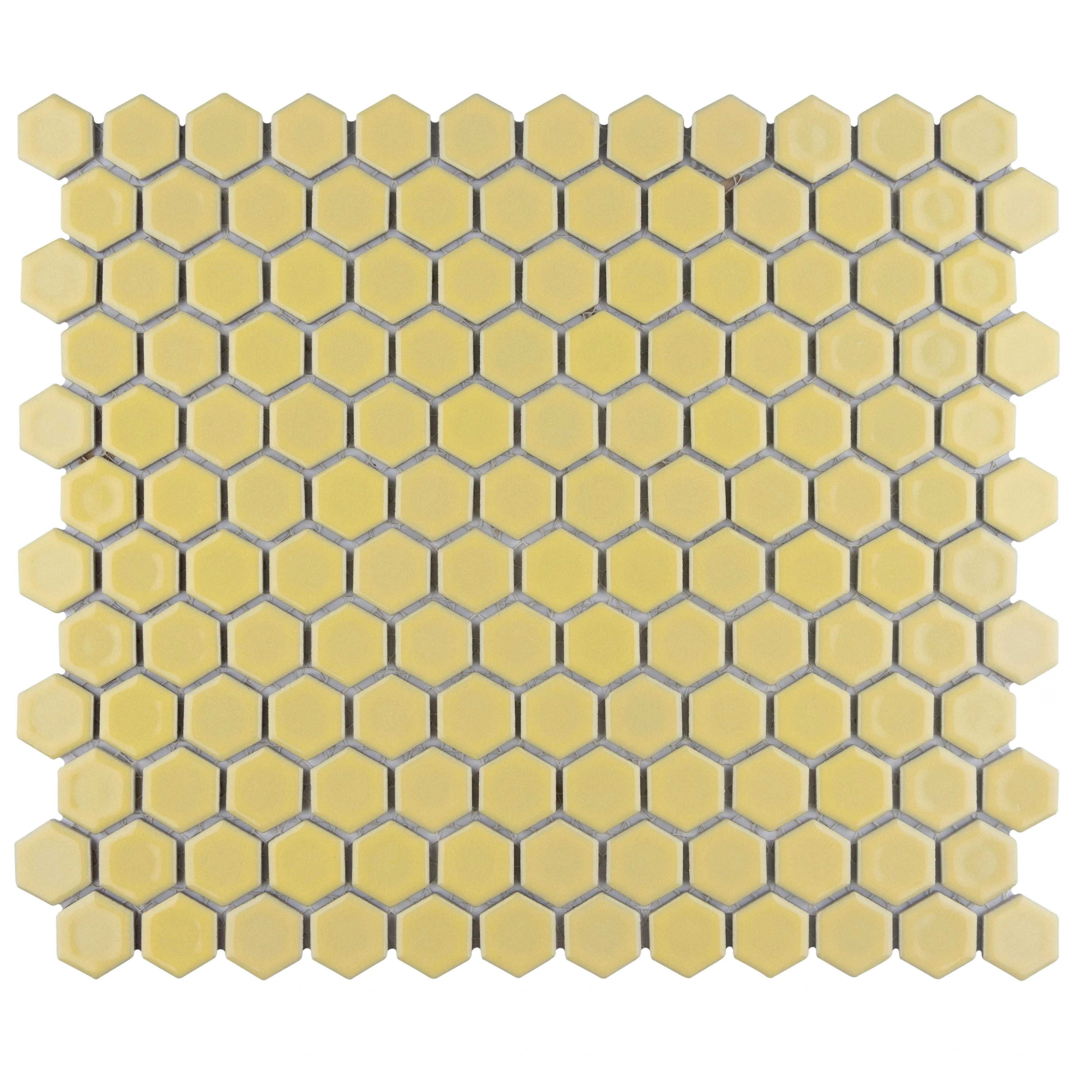 Merola Tile Hudson 1" Hex Vintage Yellow 11-7/8" x 13-1/4" Porcelain Floor and Wall Tile