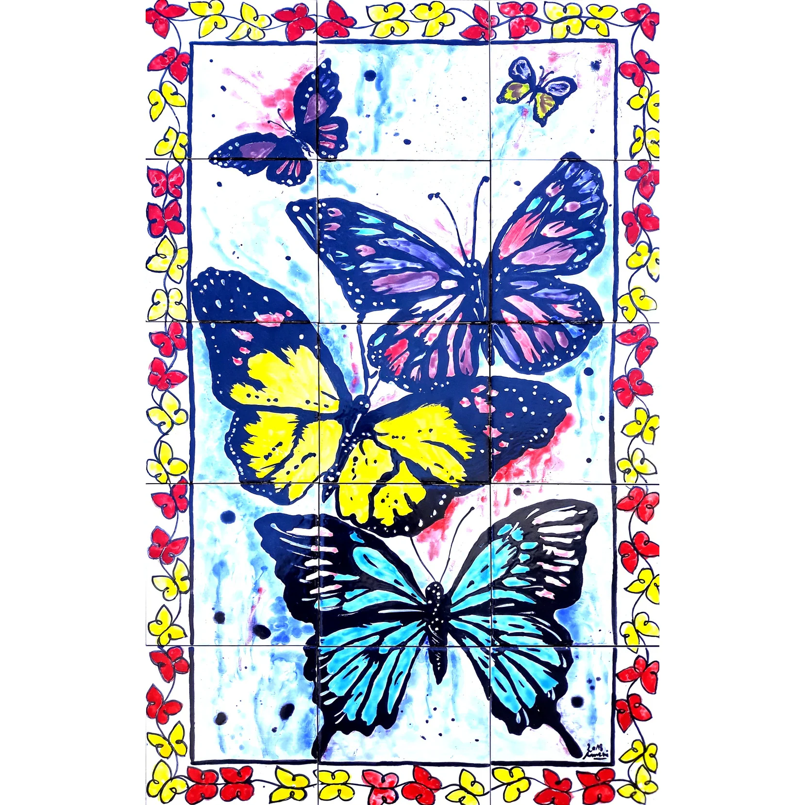 18in x 30in Butterfly Motif 15pc Mosaic Tile Ceramic Wall Mural