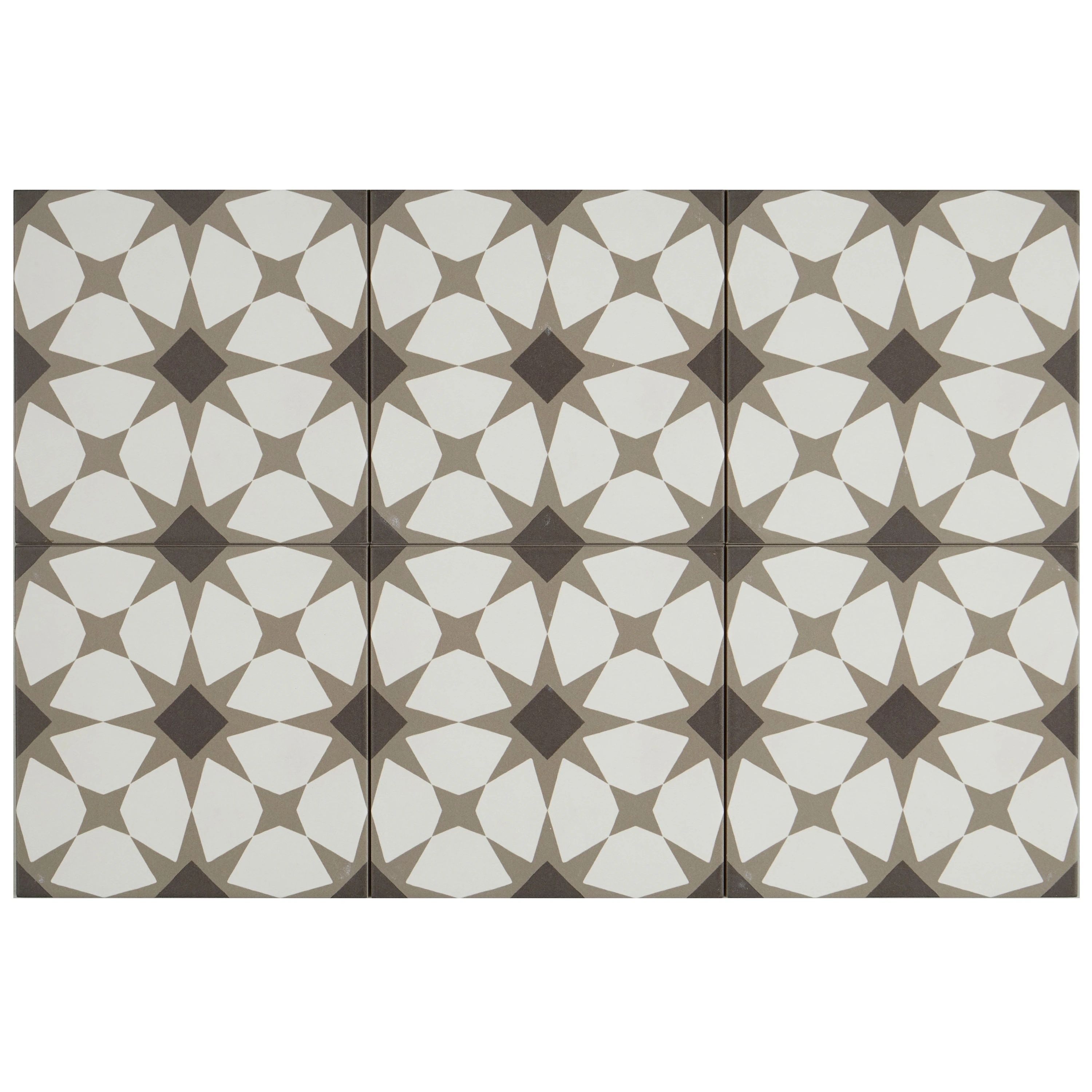 Hand-Made Encaustic Look 8X8 Starbrite White & Brown Decorative Blend