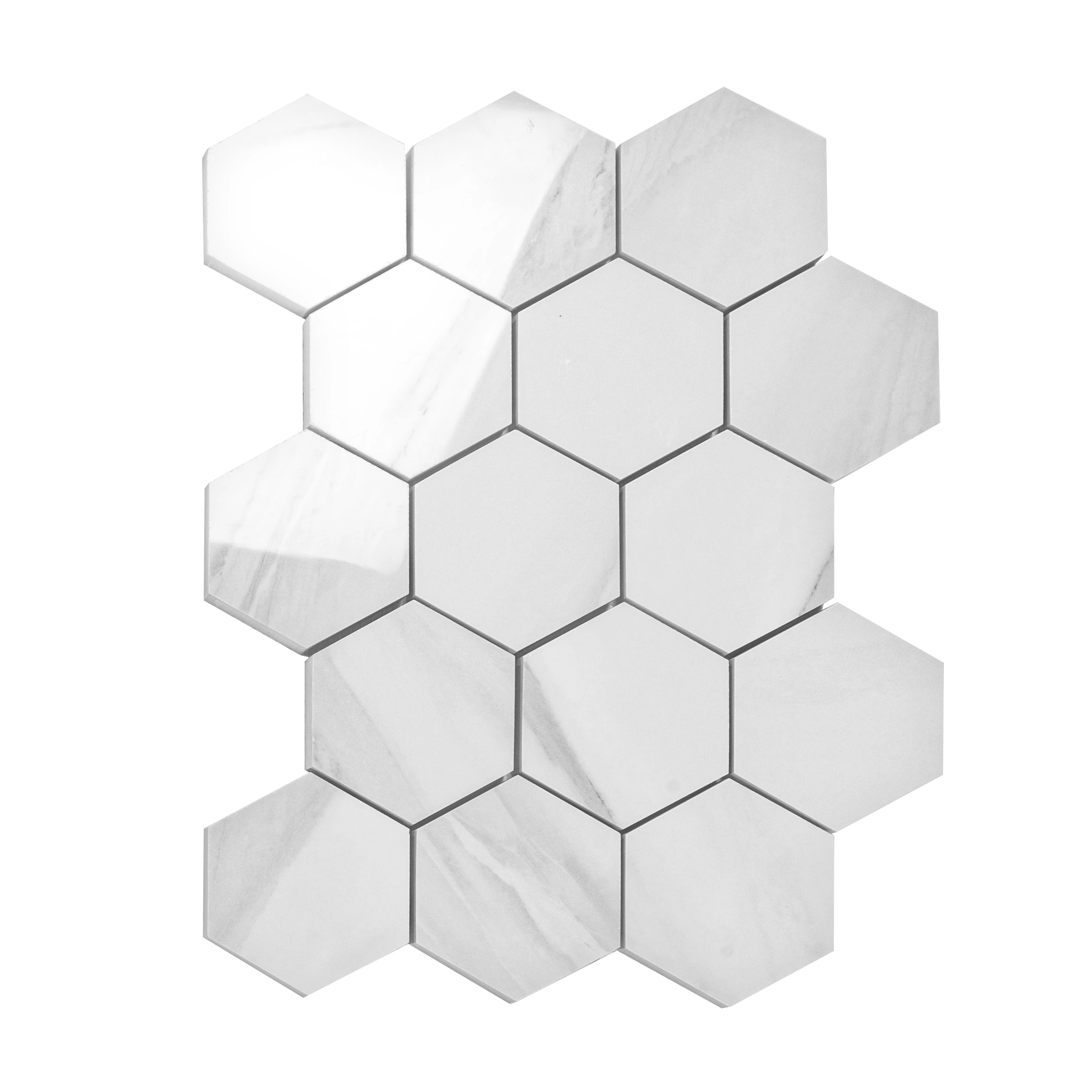 Splendor 8.86 in. x 12.8 in. Polished White Porcelain Mosaic Hexagon Wall and Floor Tile (7.09 sq. ft./case) (9-pack)