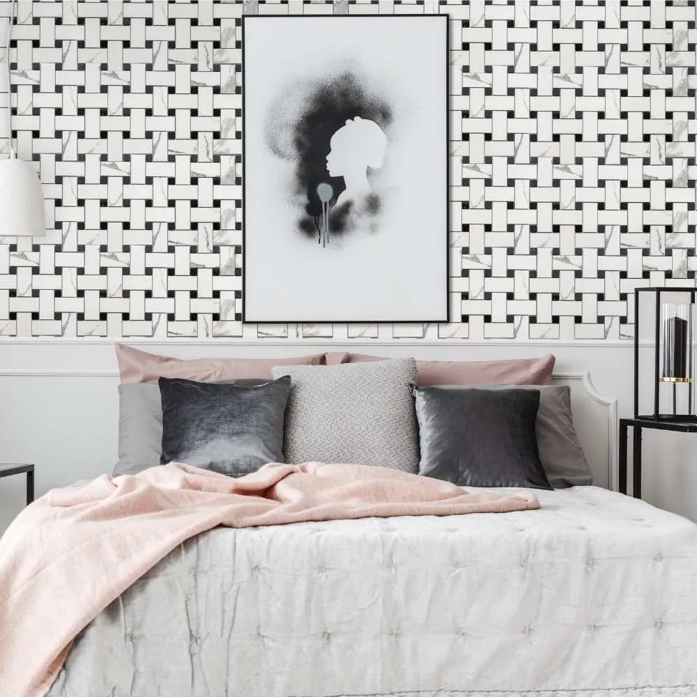 The Tile Life Stately Basketweave 13" x 13" Calacatta Porcelain Tile Flooring and Wall