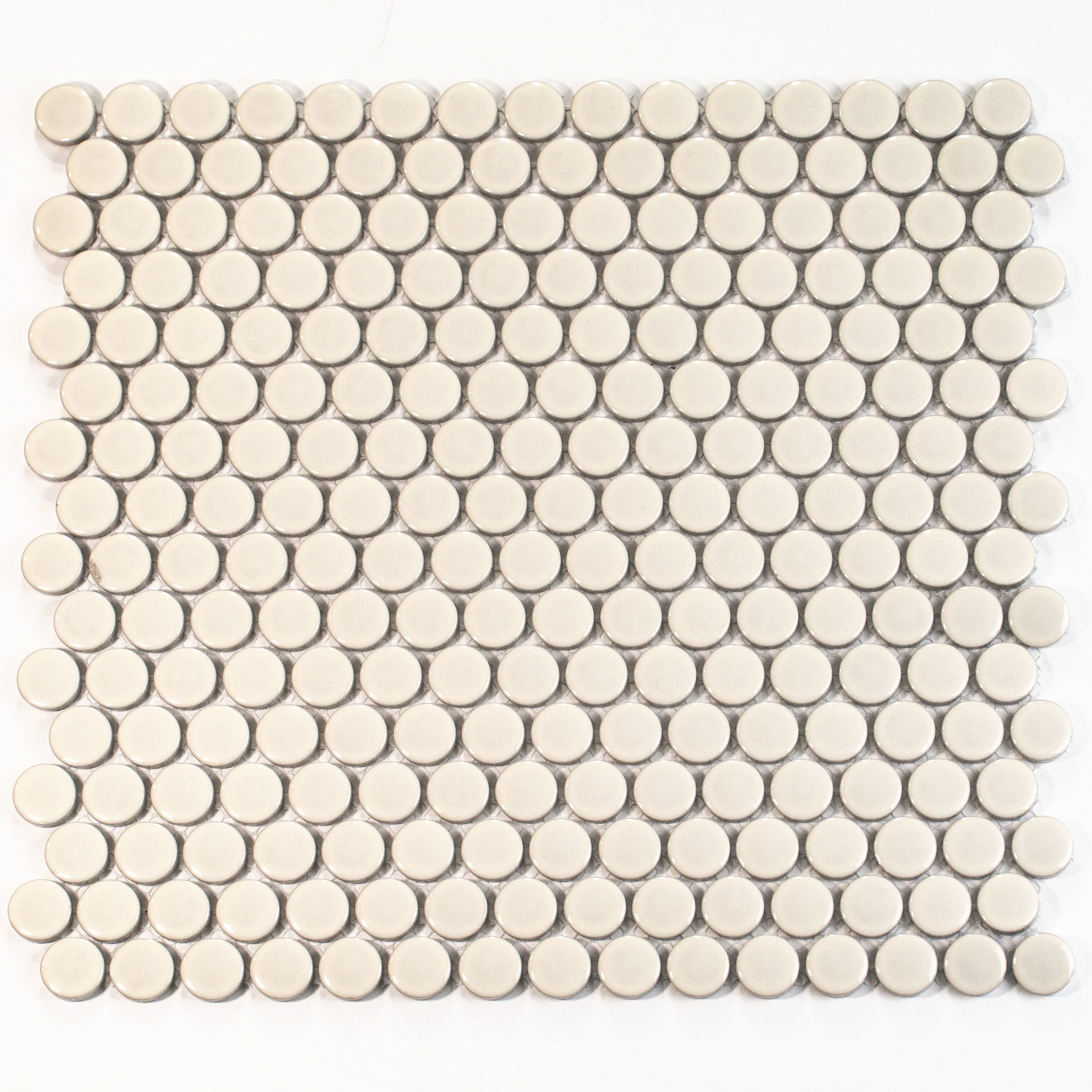 Cirkel 11.46 in. x 12.4 in. Glossy Beige Porcelain Mosaic Wall and Floor Tile (9.87 sq. ft./case) (10-pack)