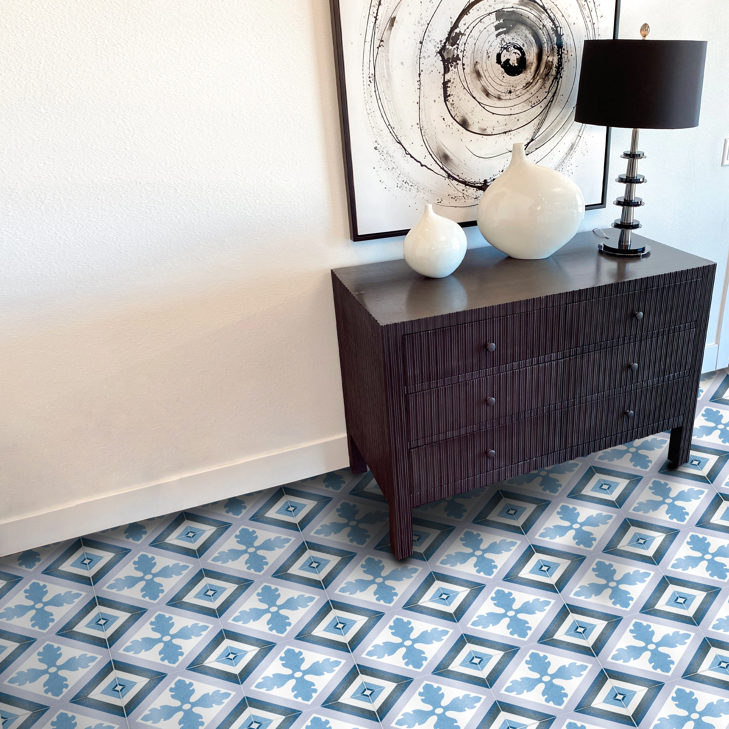 Avila 10 x 10 Ceramic Floor/Wall Tile in Blues, Dark Grey