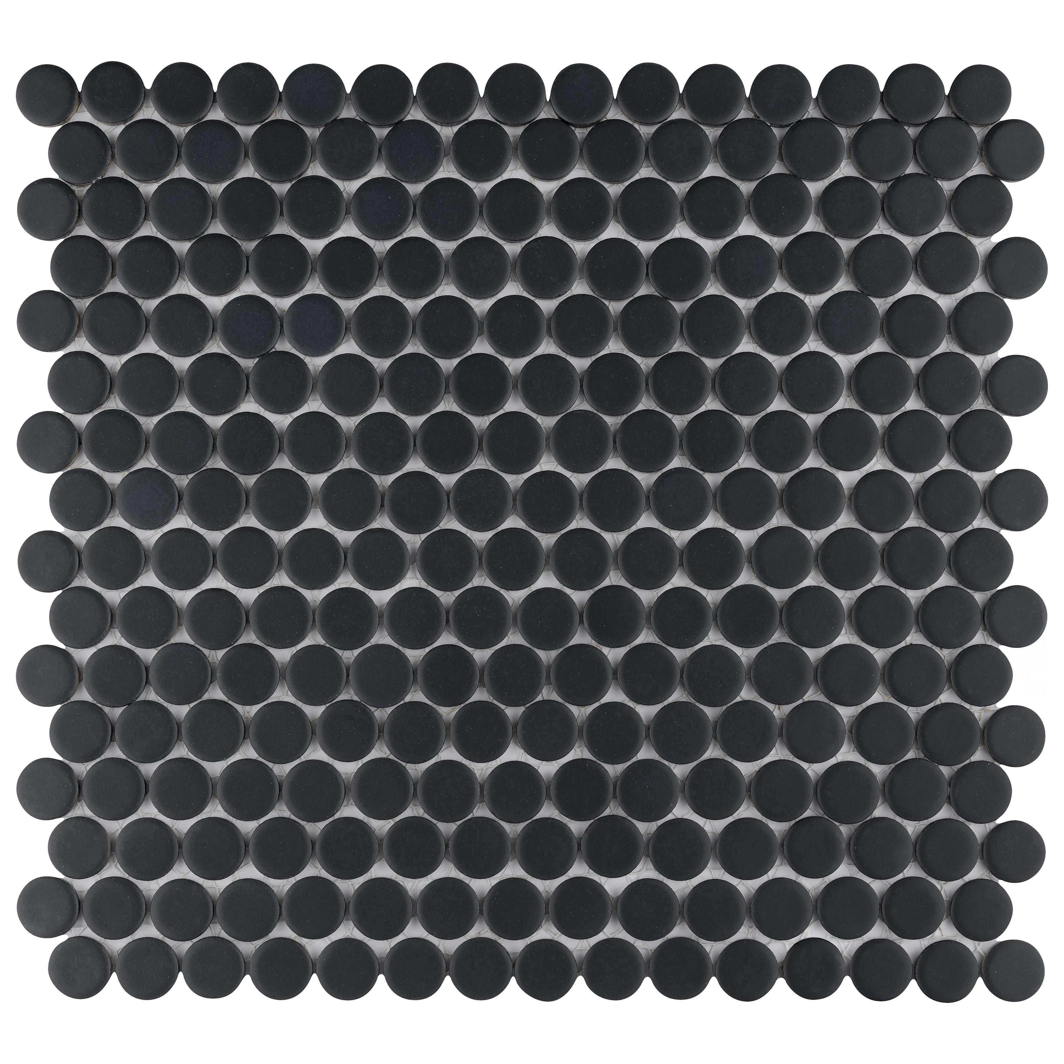 Merola Tile Hudson Penny Round Matte Black 11-7/8" x 12-5/8" Porcelain Floor and Wall Tile