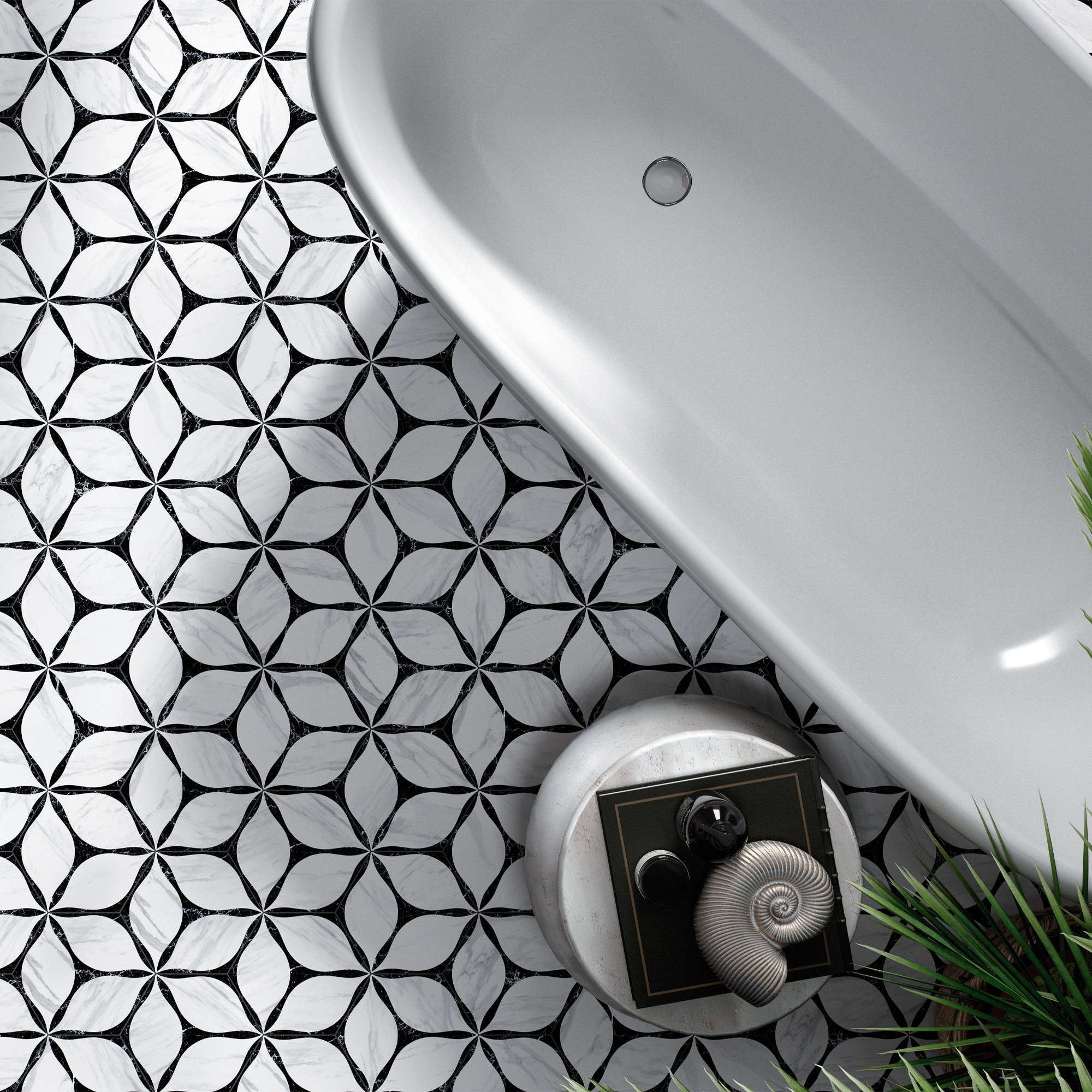TileGen. Corola 8" x 9" Porcelain Patterned in Black Wall & Floor Tile (24 tiles/9.05 sqft.)