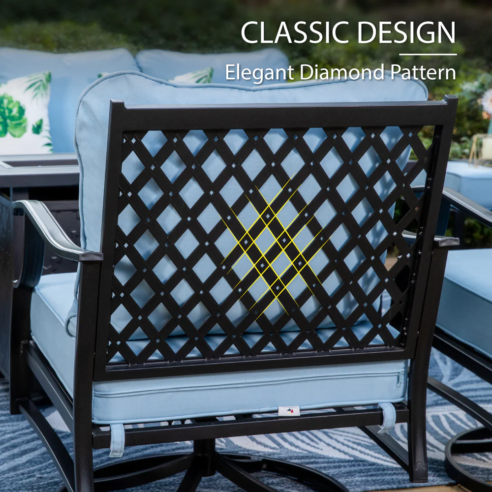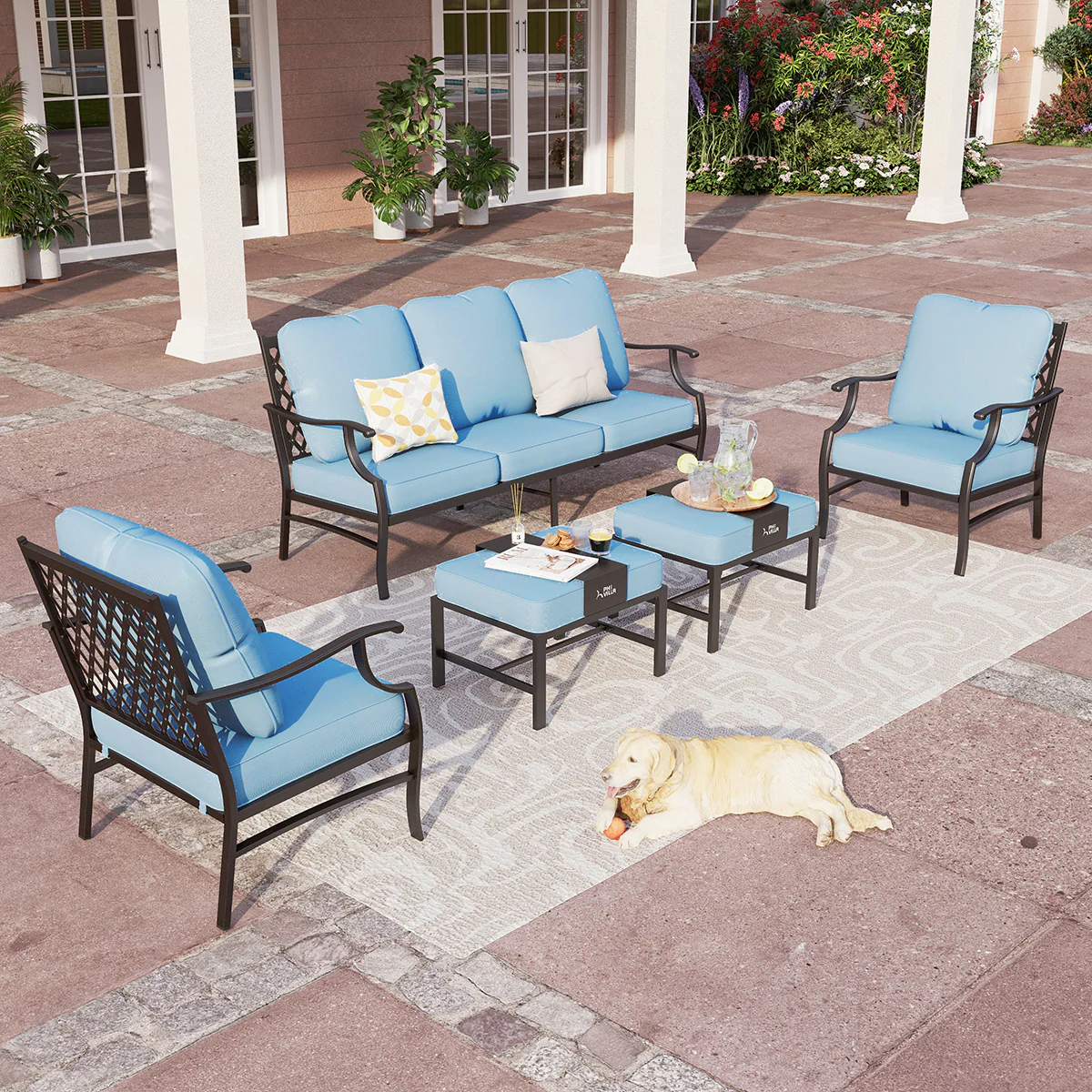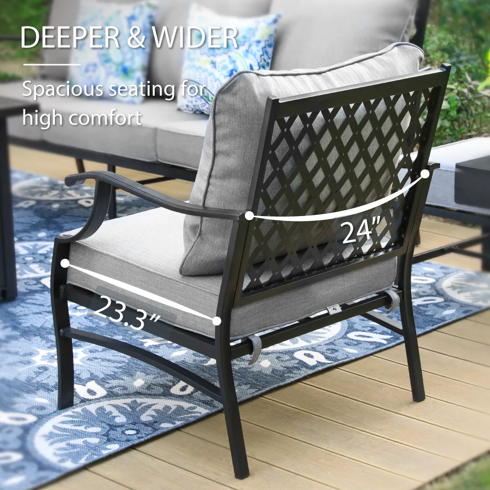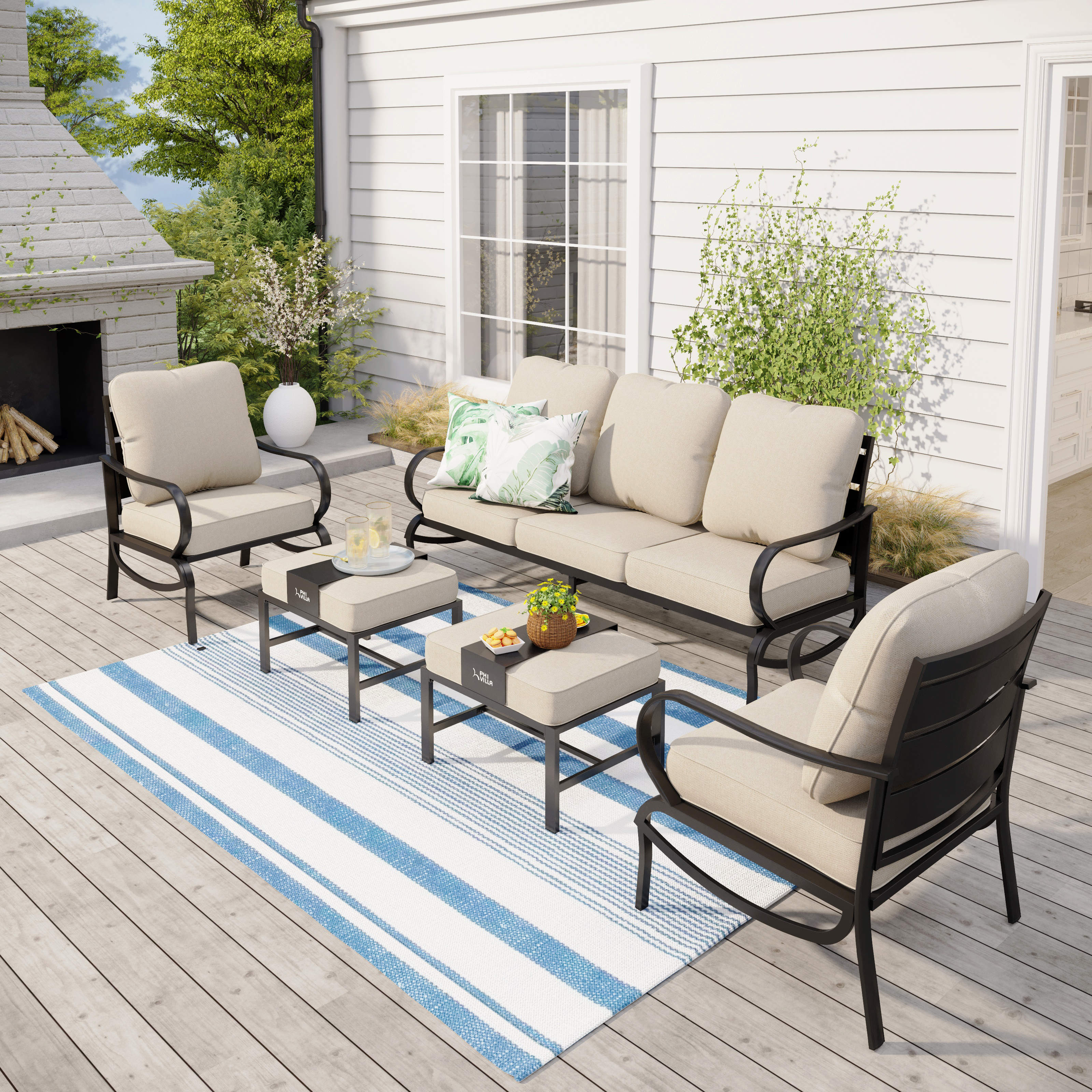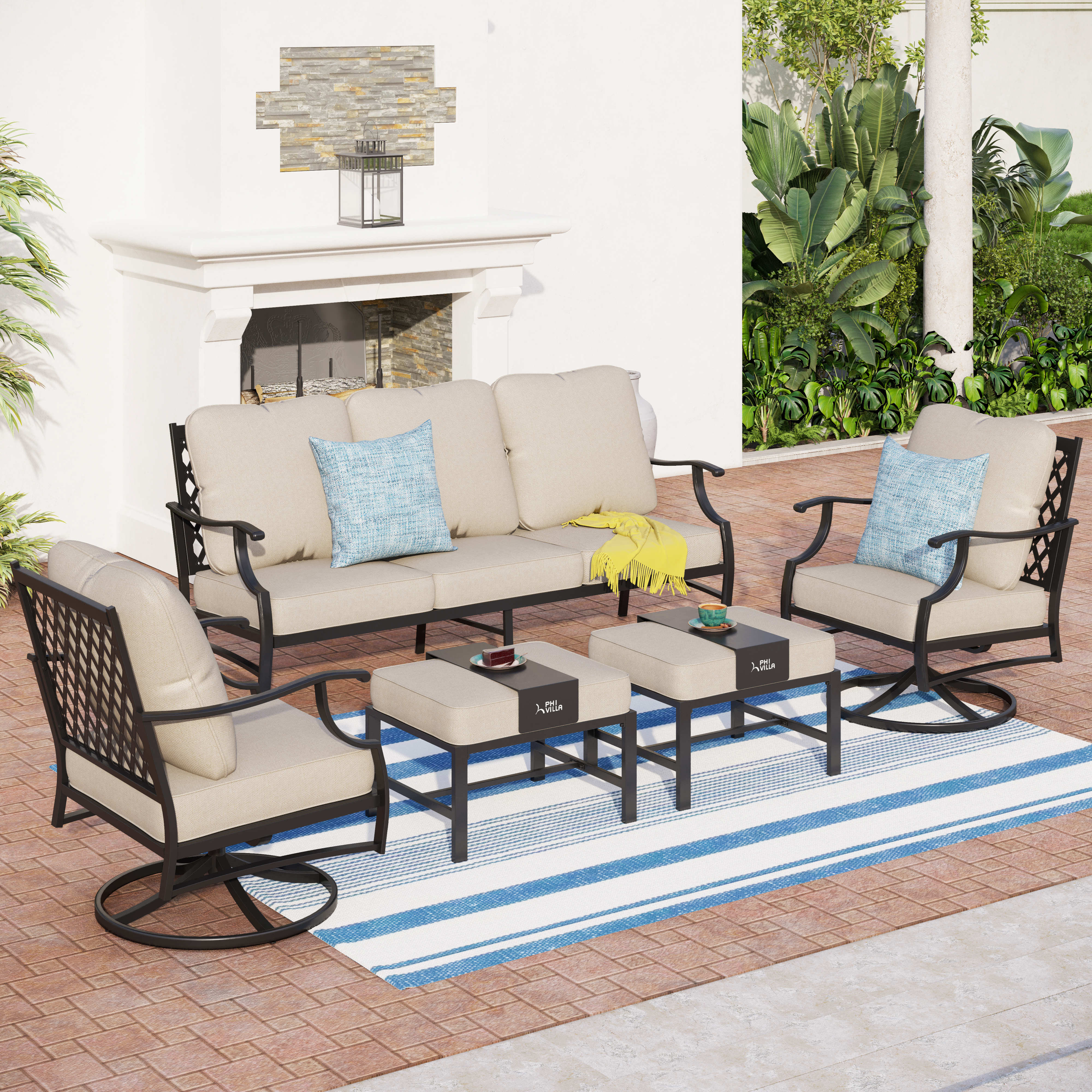 PHI VILLA 5-Seat Rattan-steel Luxury Padded Patio Conversation Set