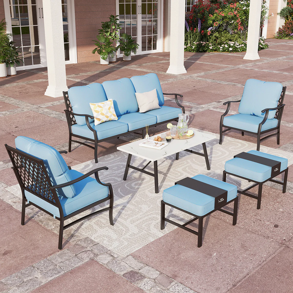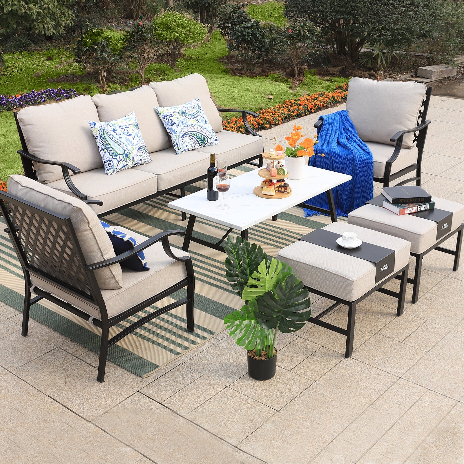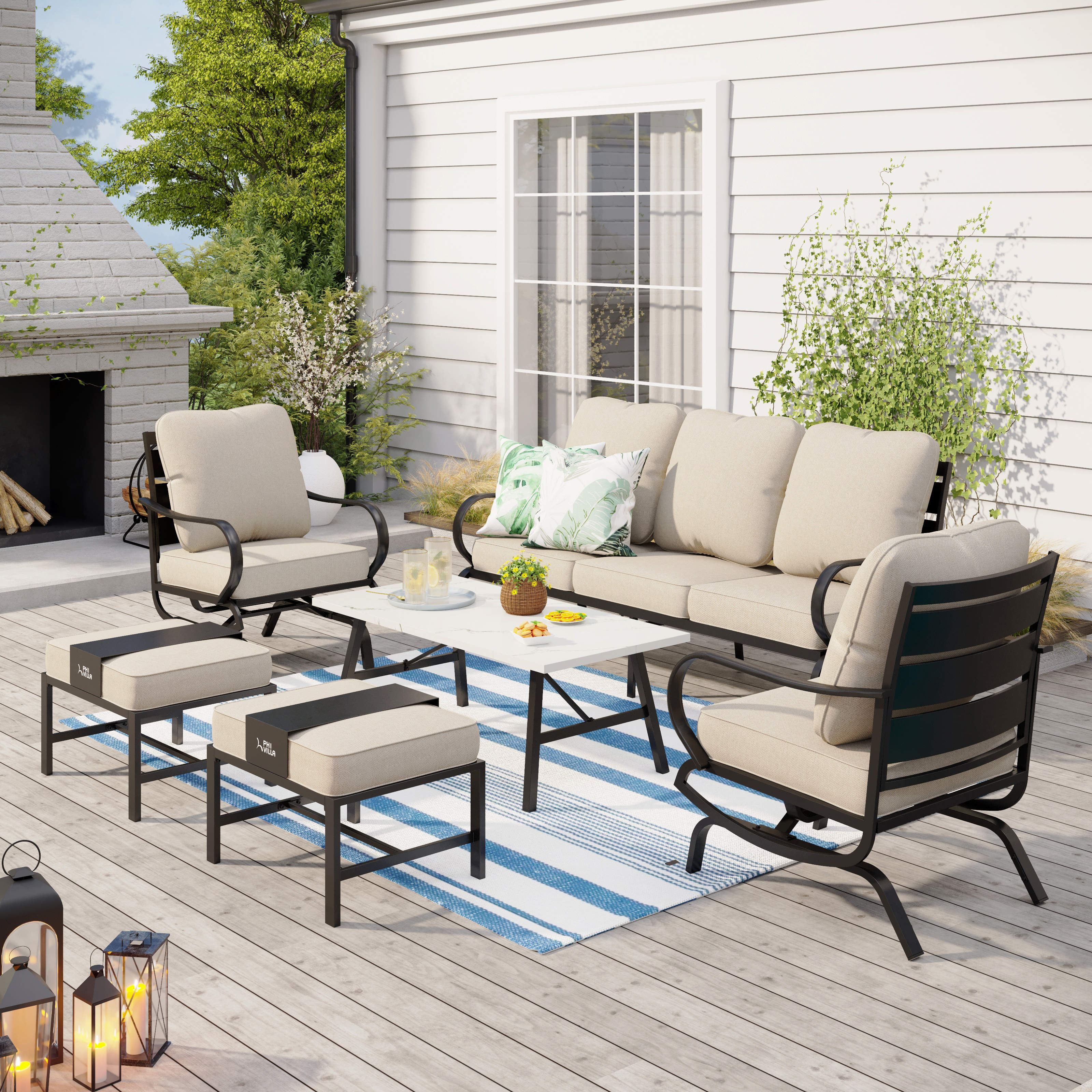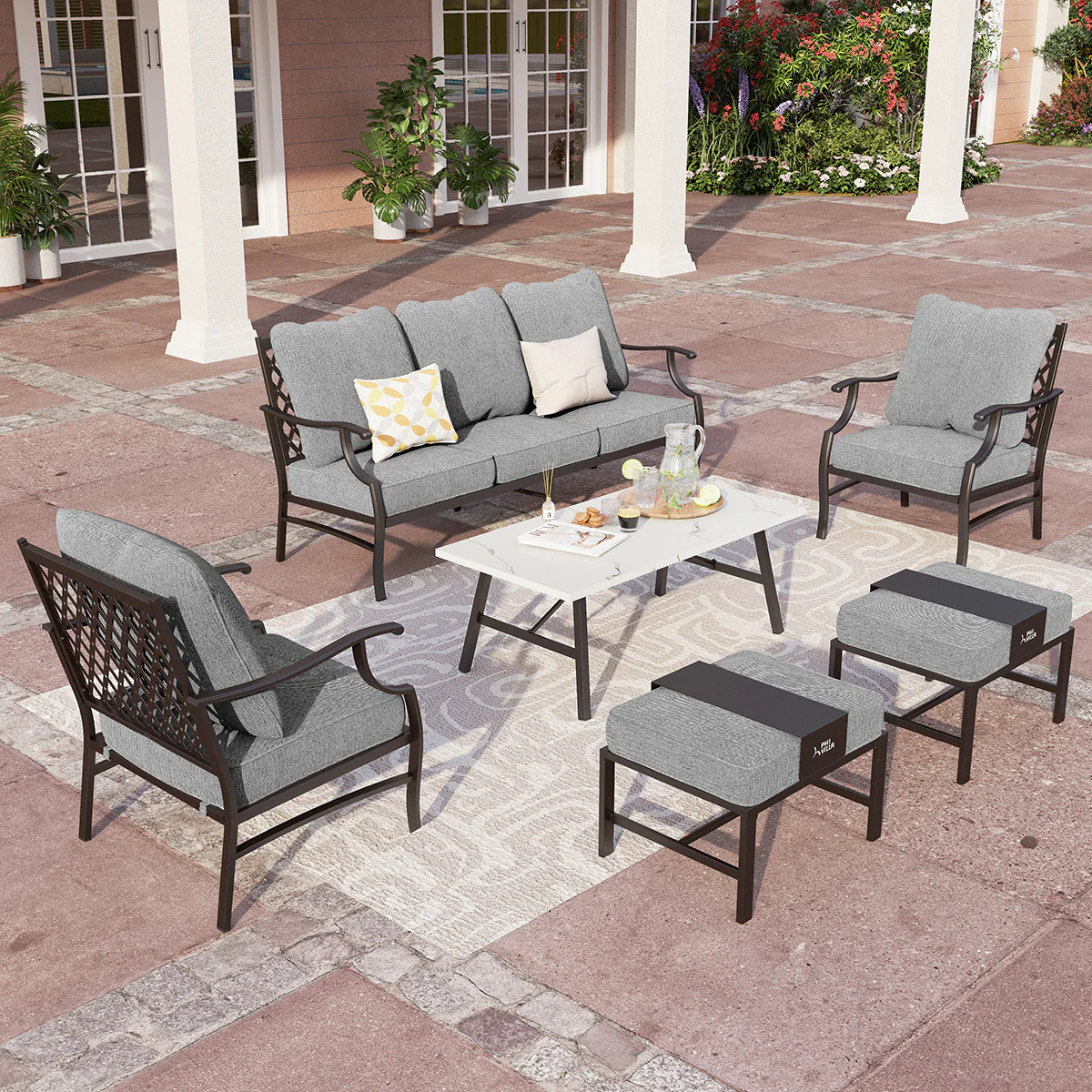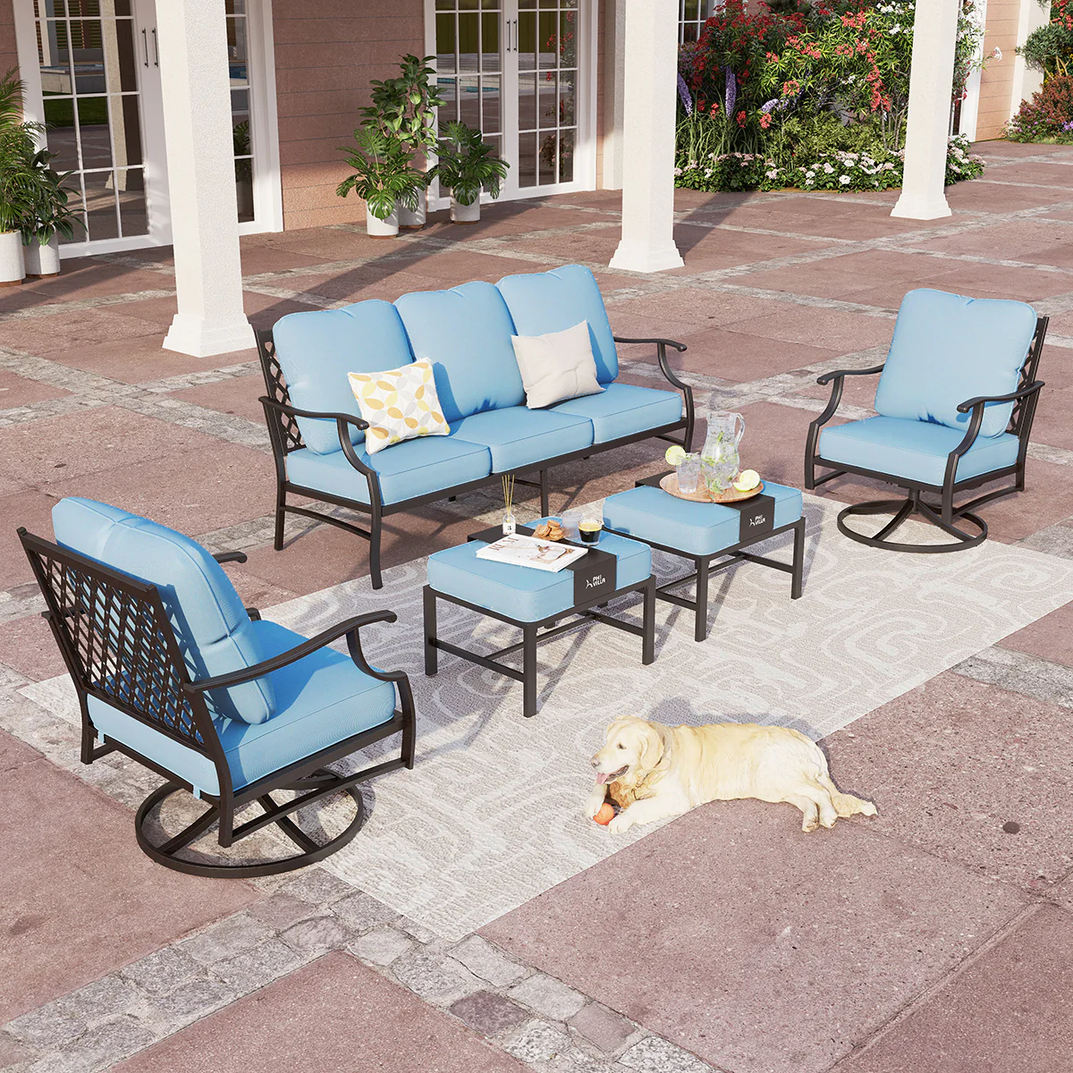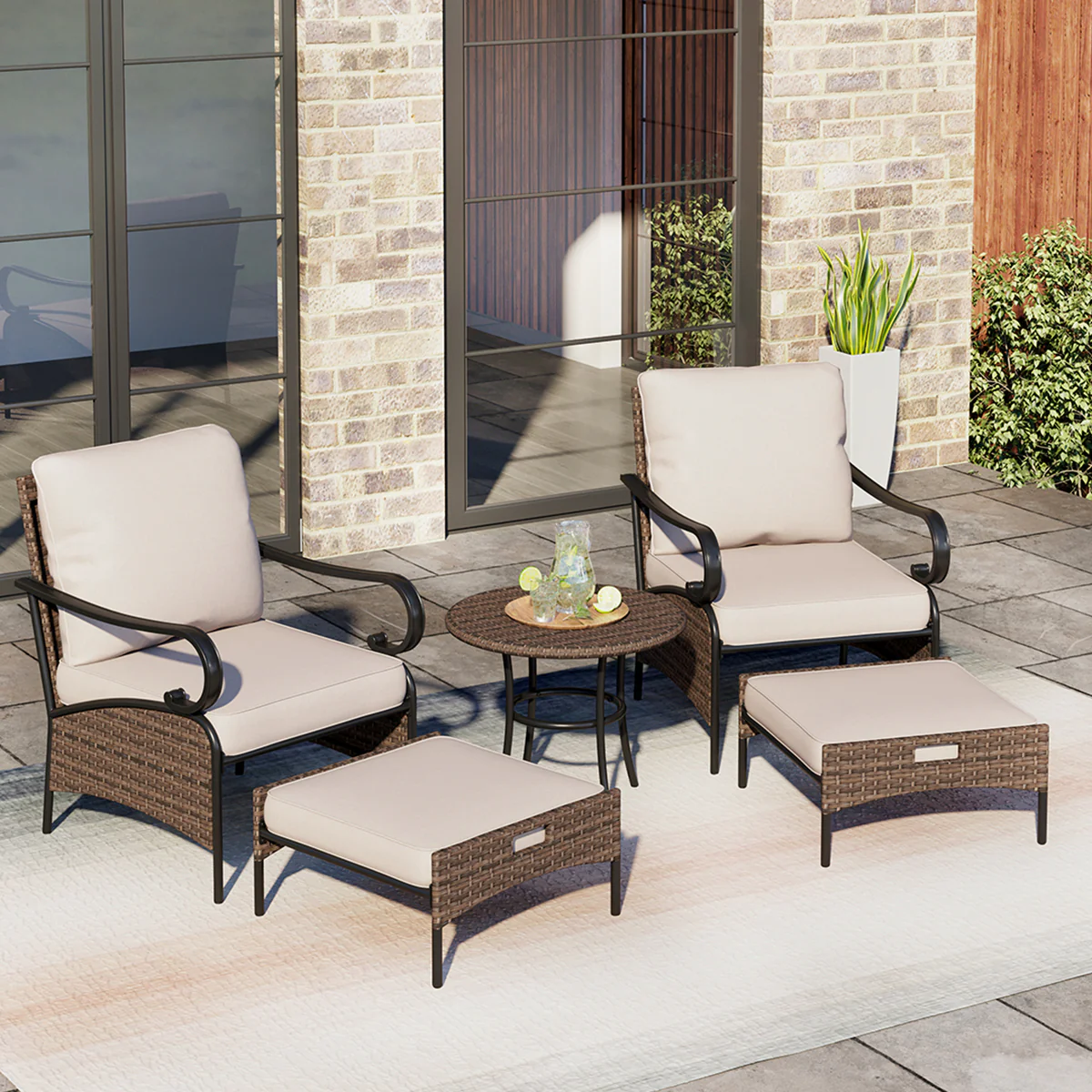 PHI VILLA 5-Seat Rattan-steel Luxury Padded Patio Conversation Set