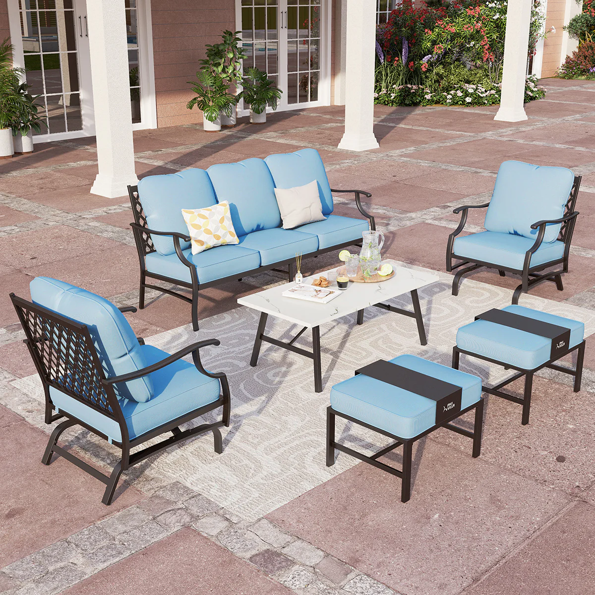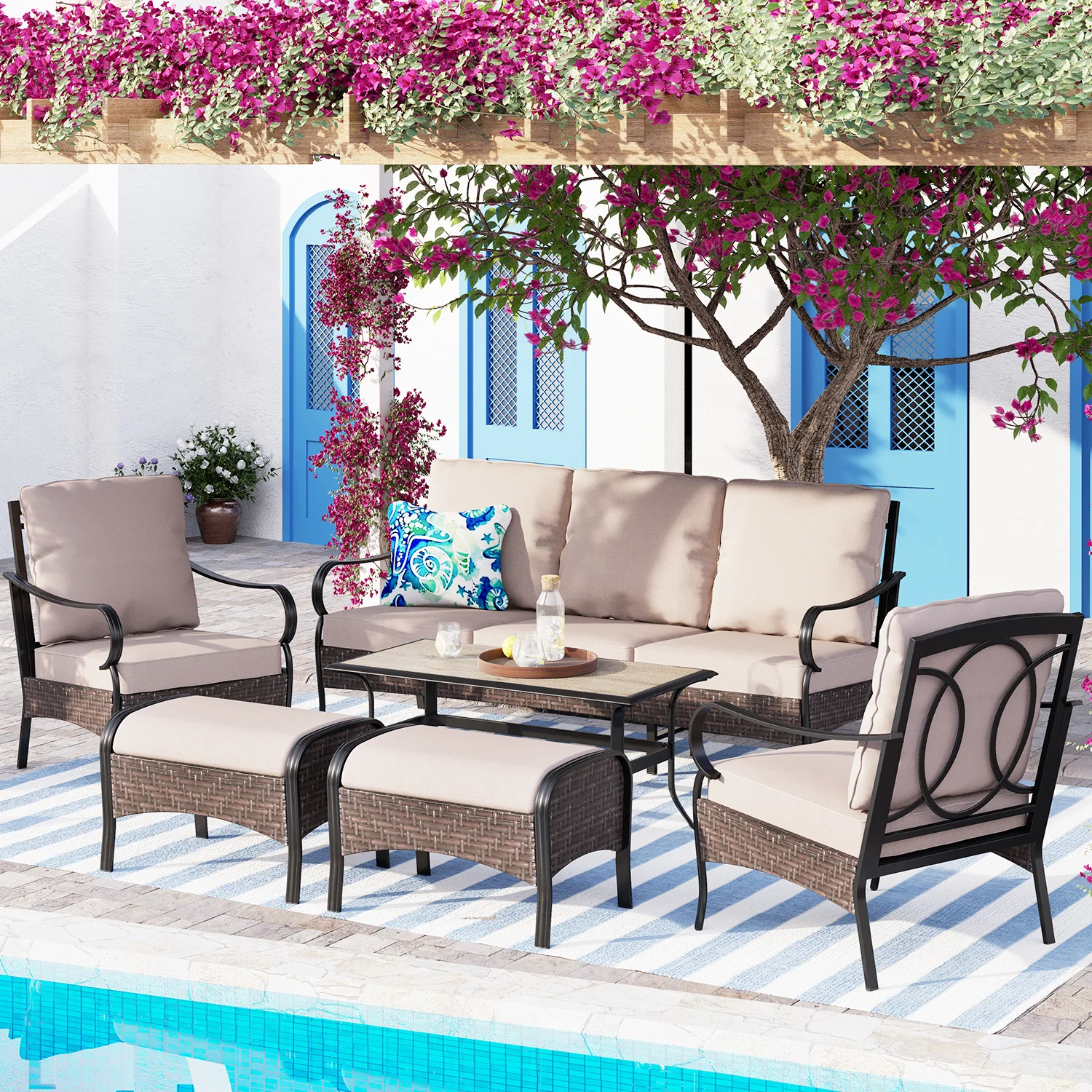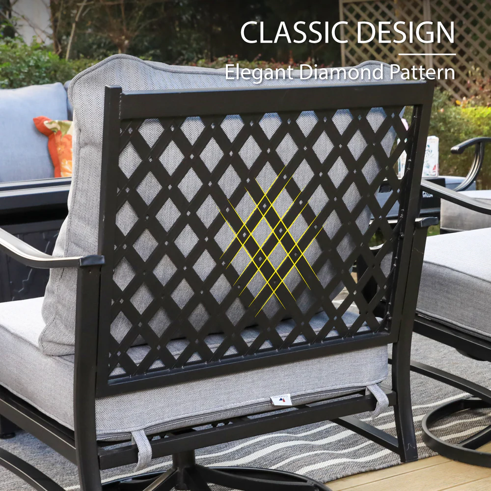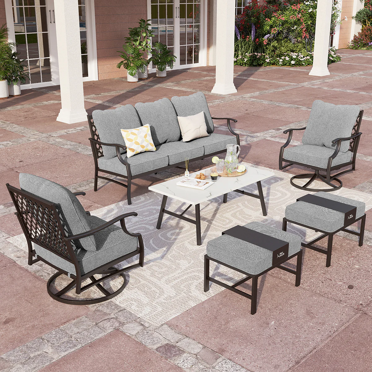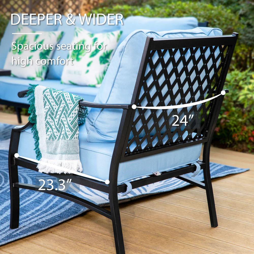 PHI VILLA 5-Seat Rattan-steel Luxury Padded Patio Conversation Set