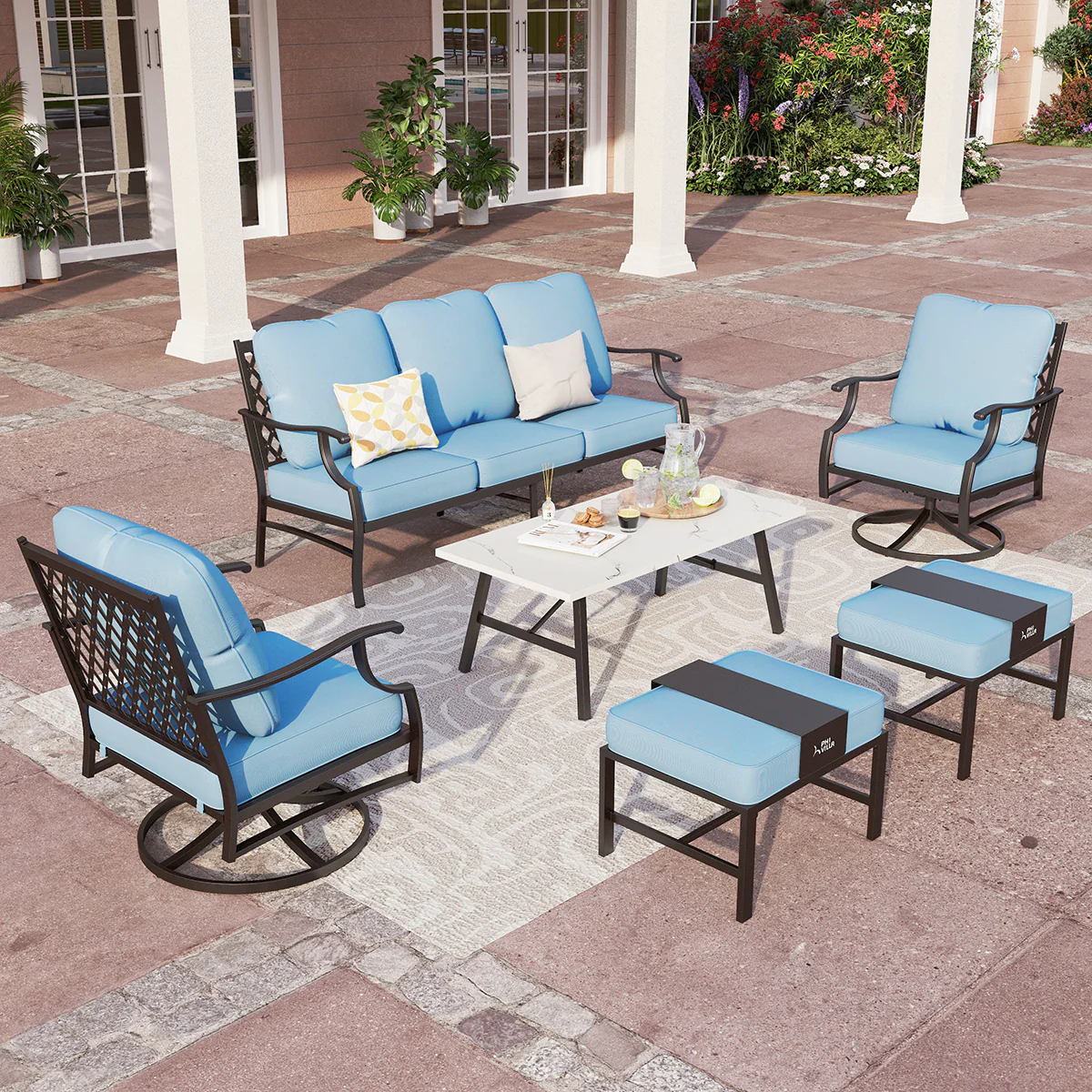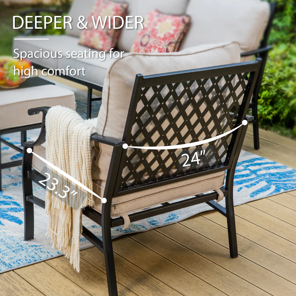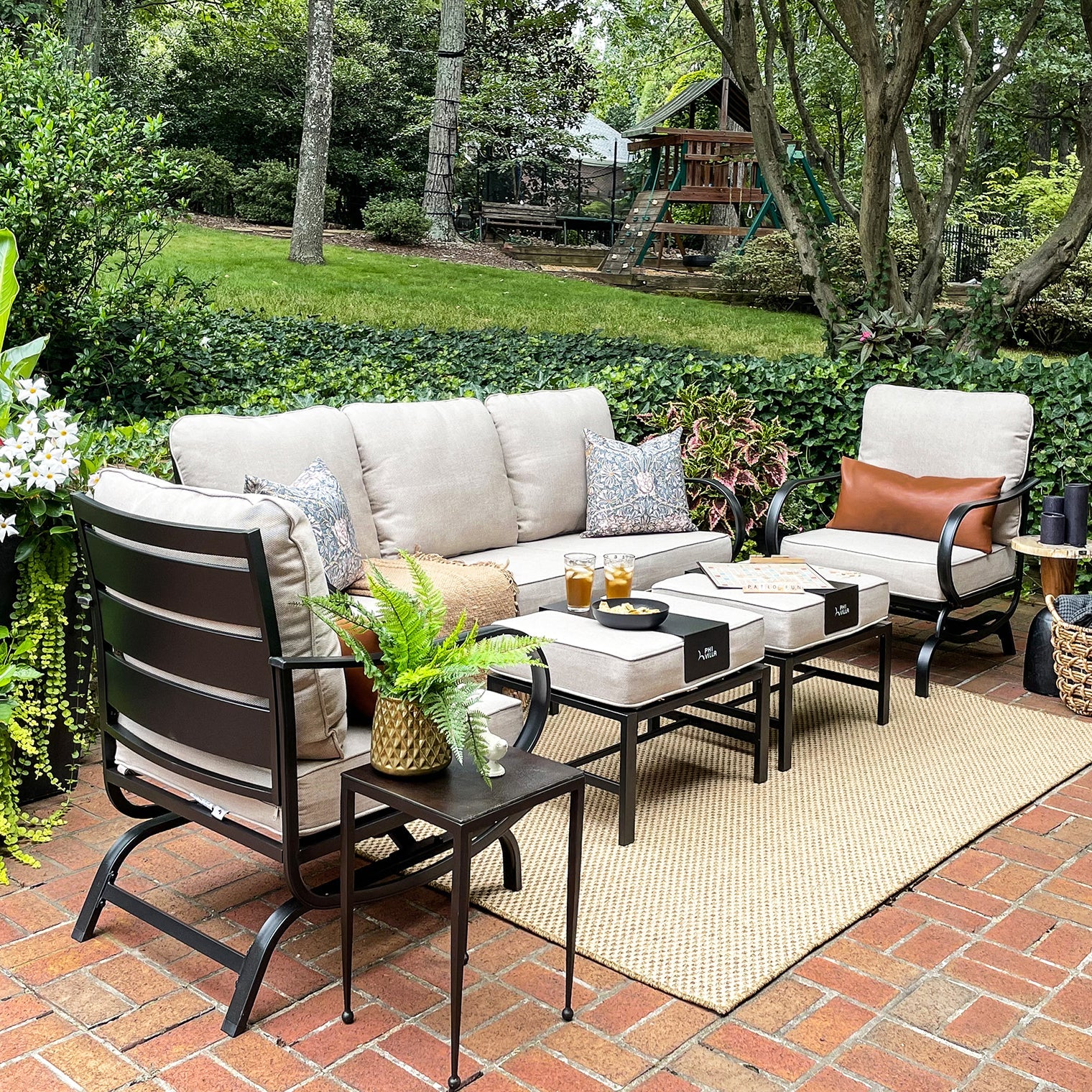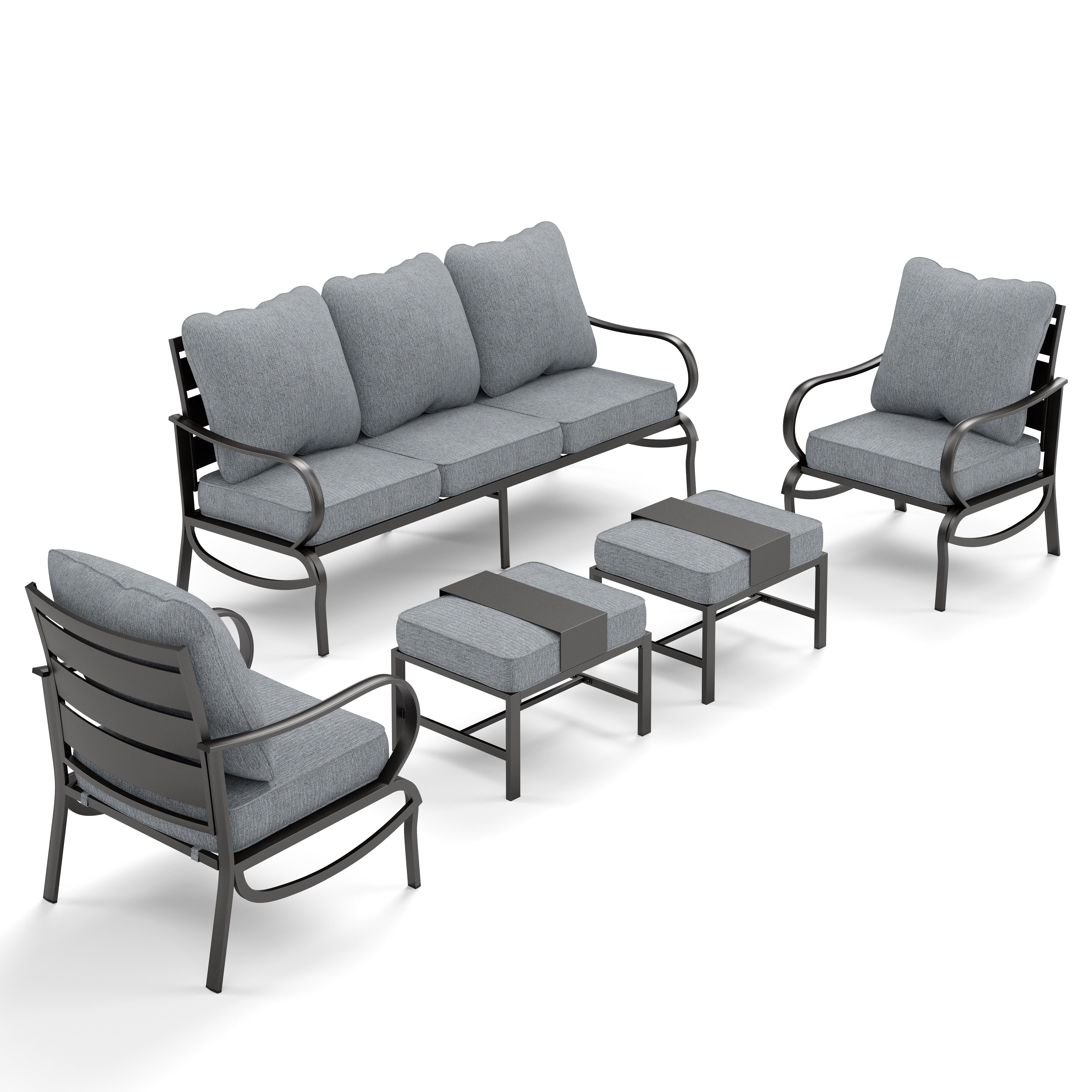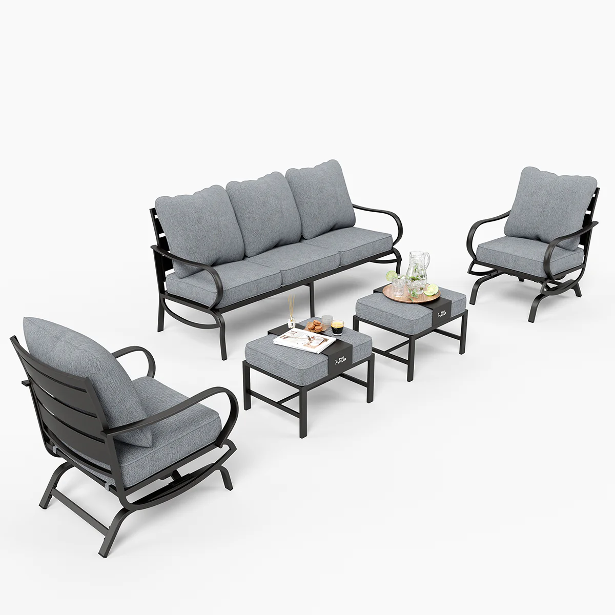 PHI VILLA 5-Seat Rattan-steel Luxury Padded Patio Conversation Set