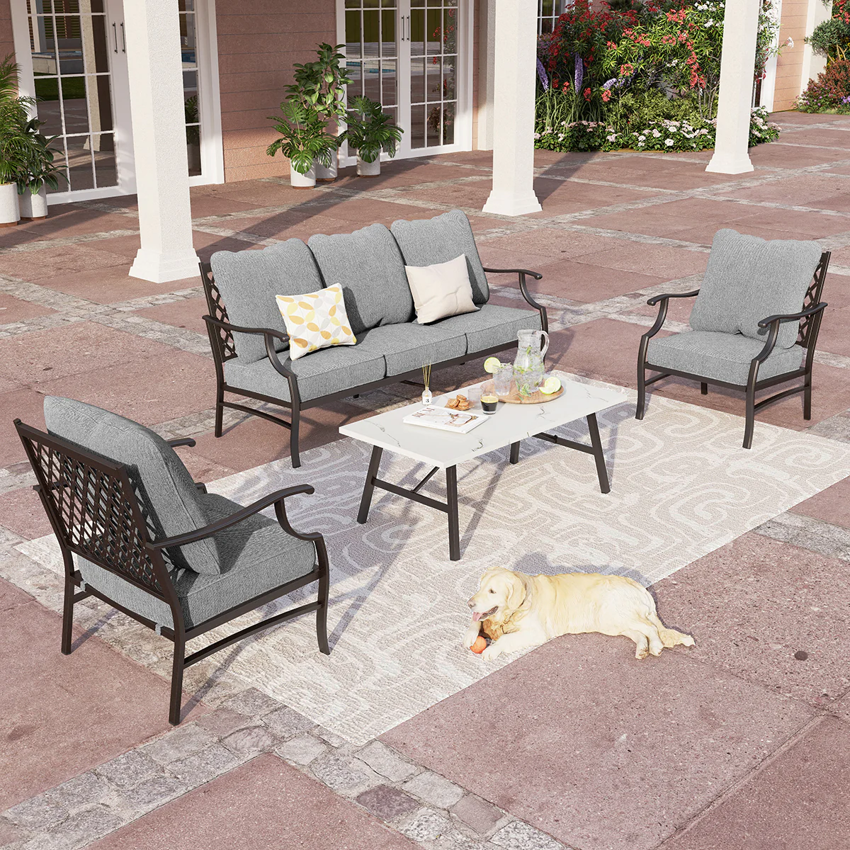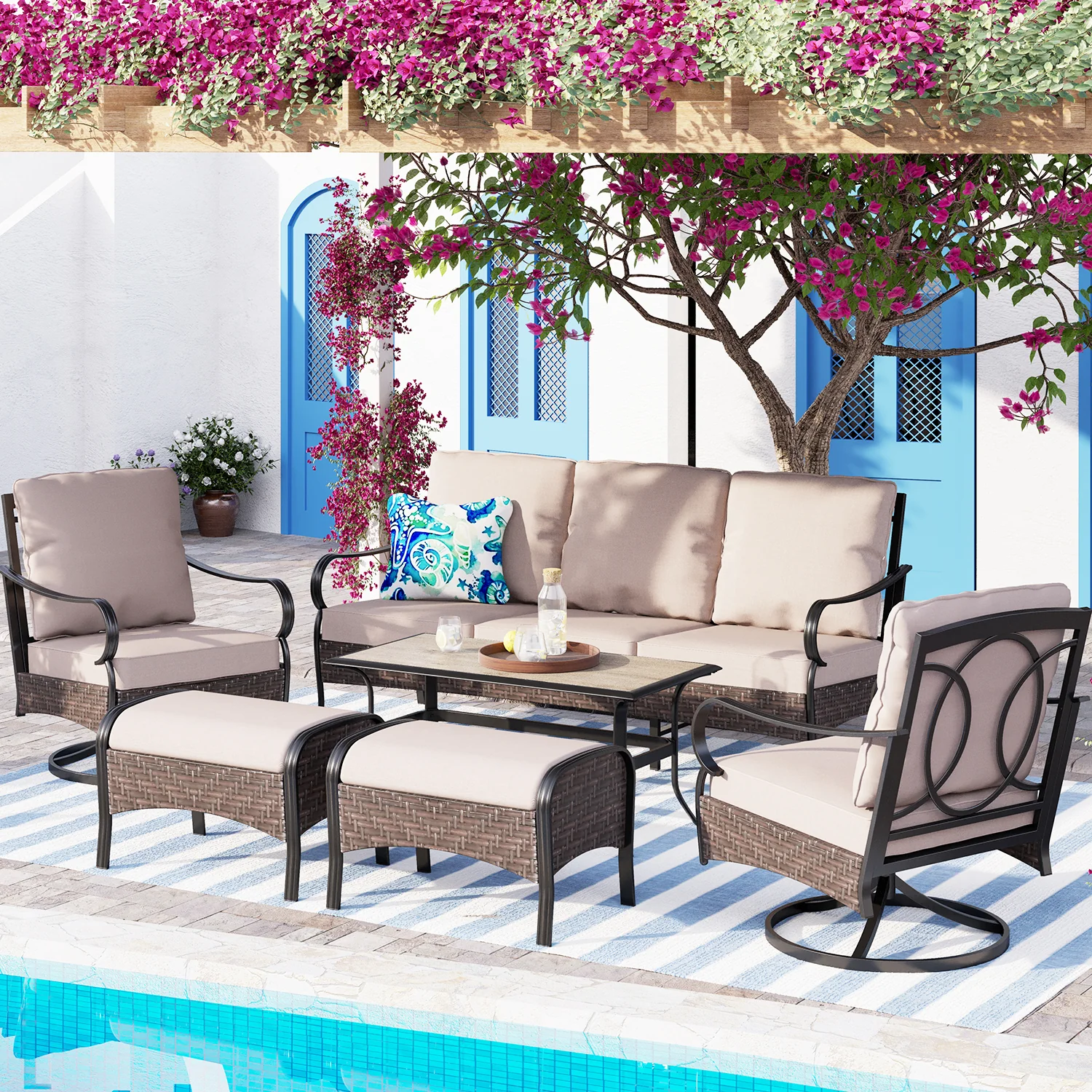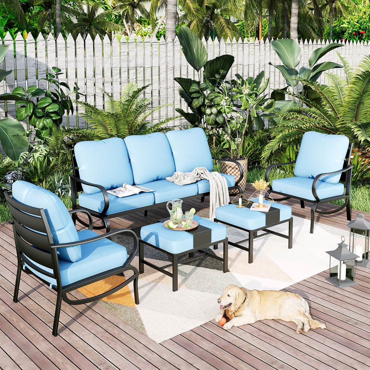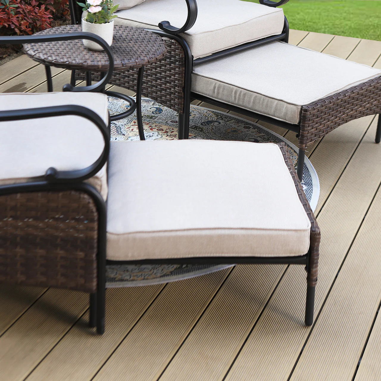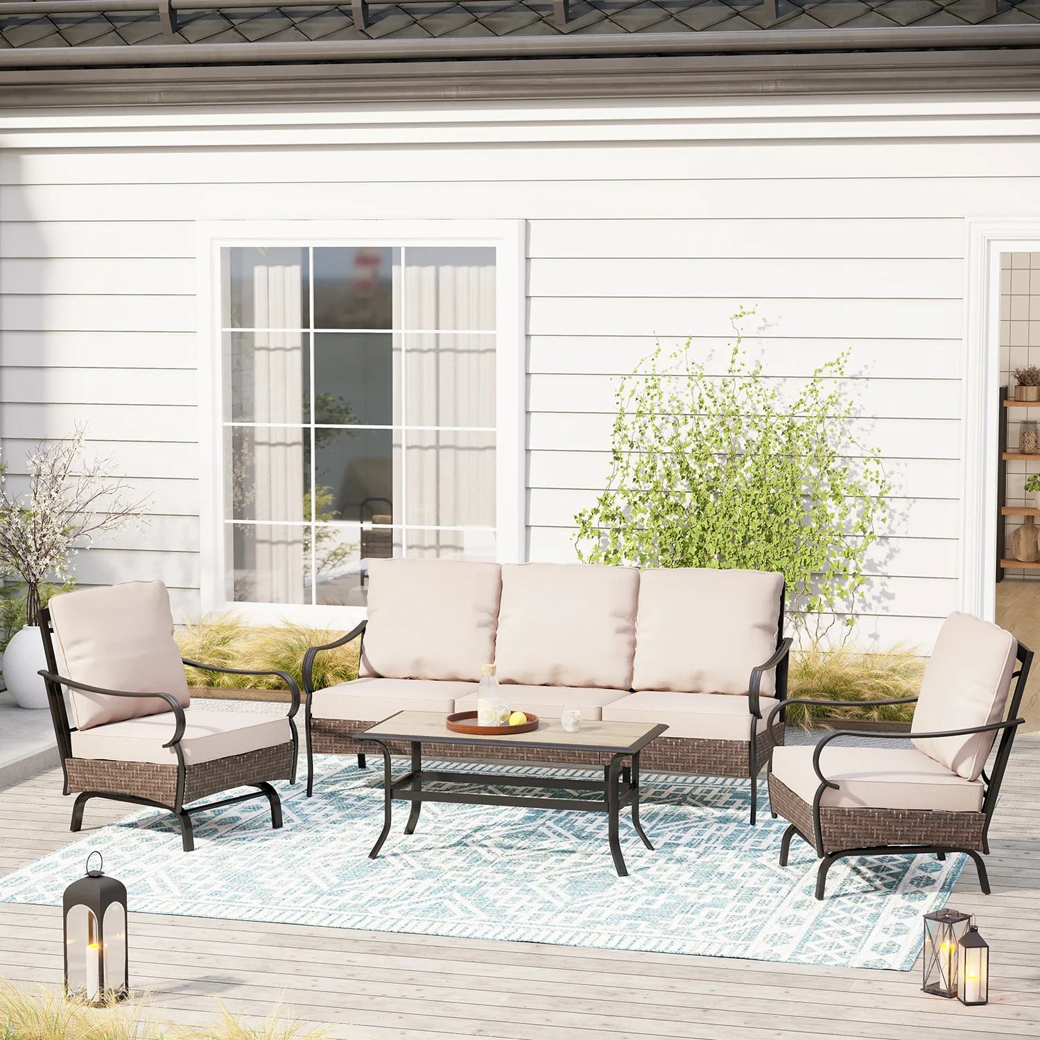 PHI VILLA 5-Seat Rattan-steel Luxury Padded Patio Conversation Set