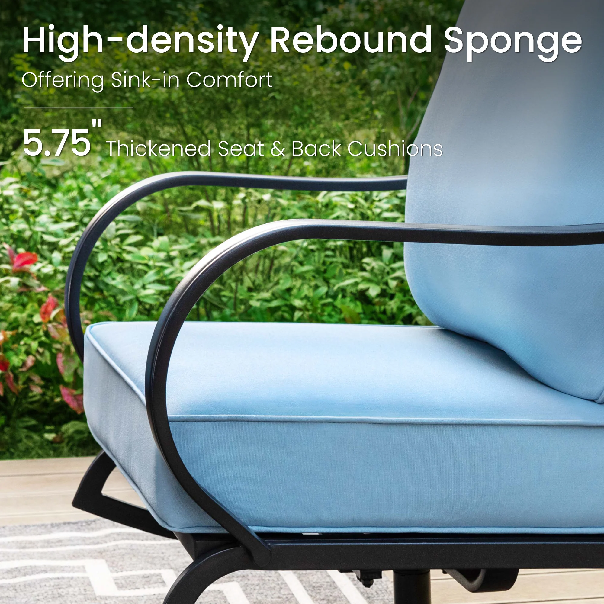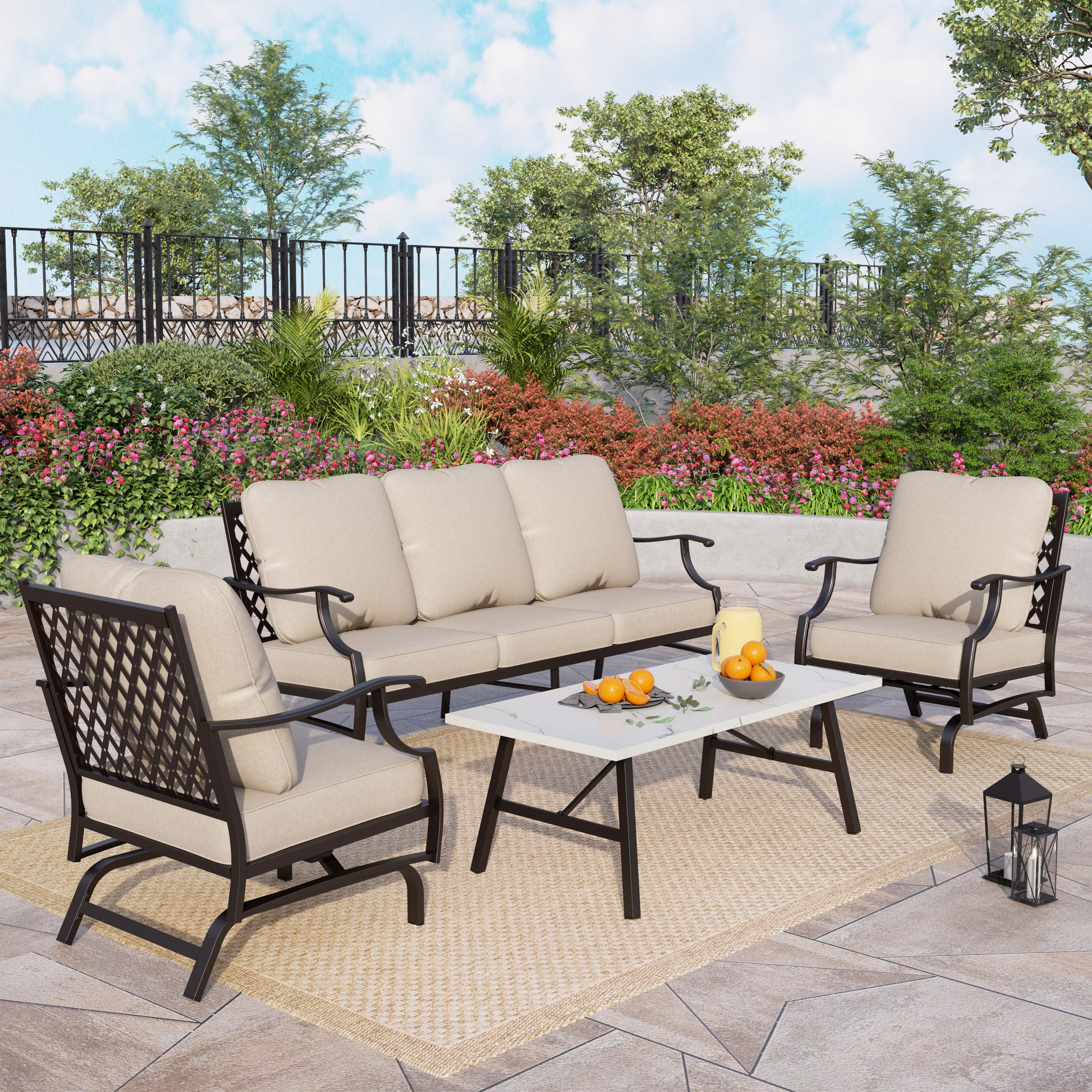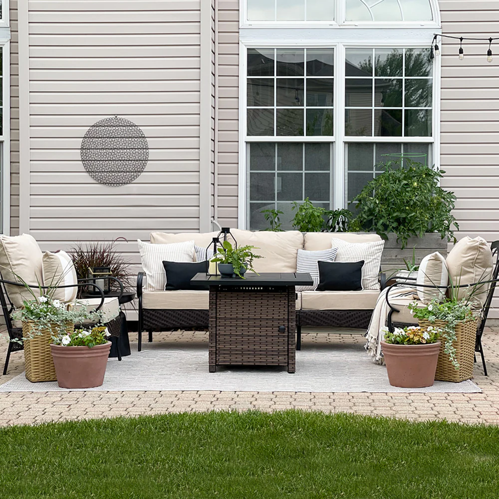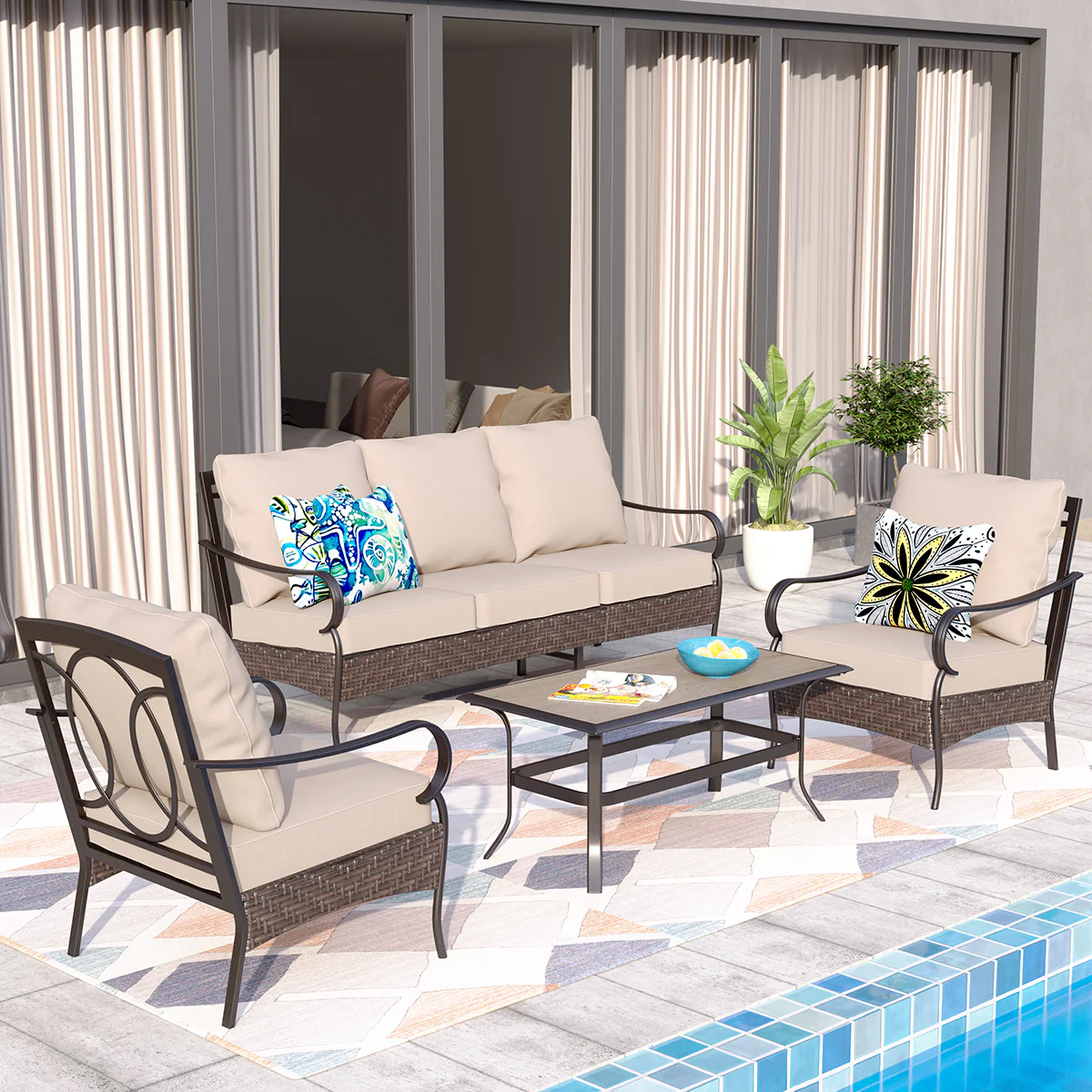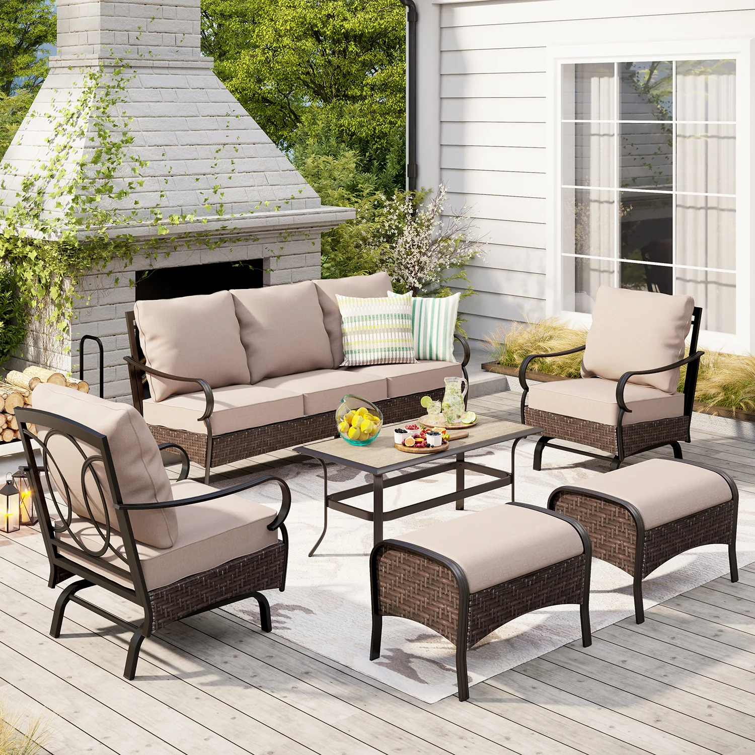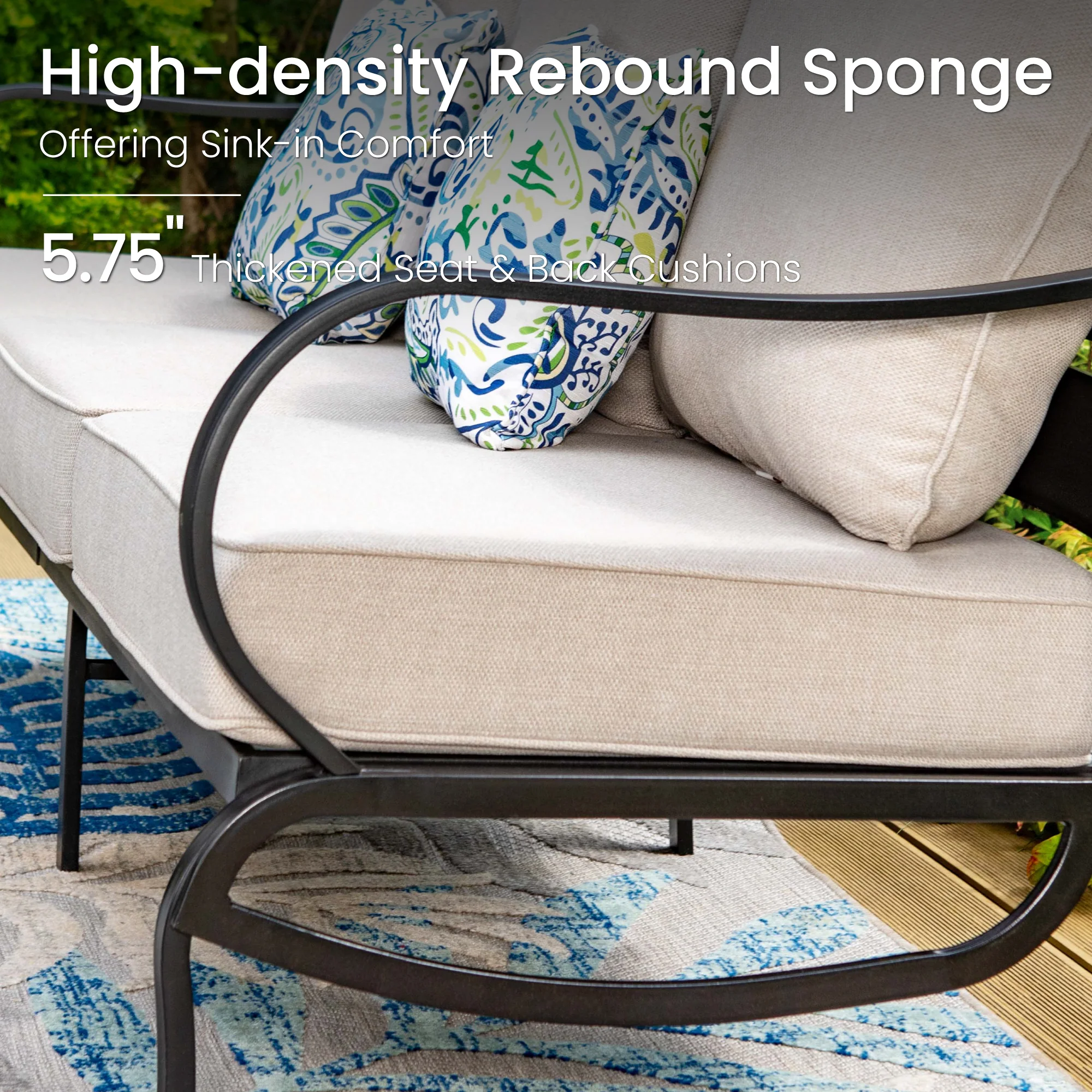 PHI VILLA 5-Seat Rattan-steel Luxury Padded Patio Conversation Set