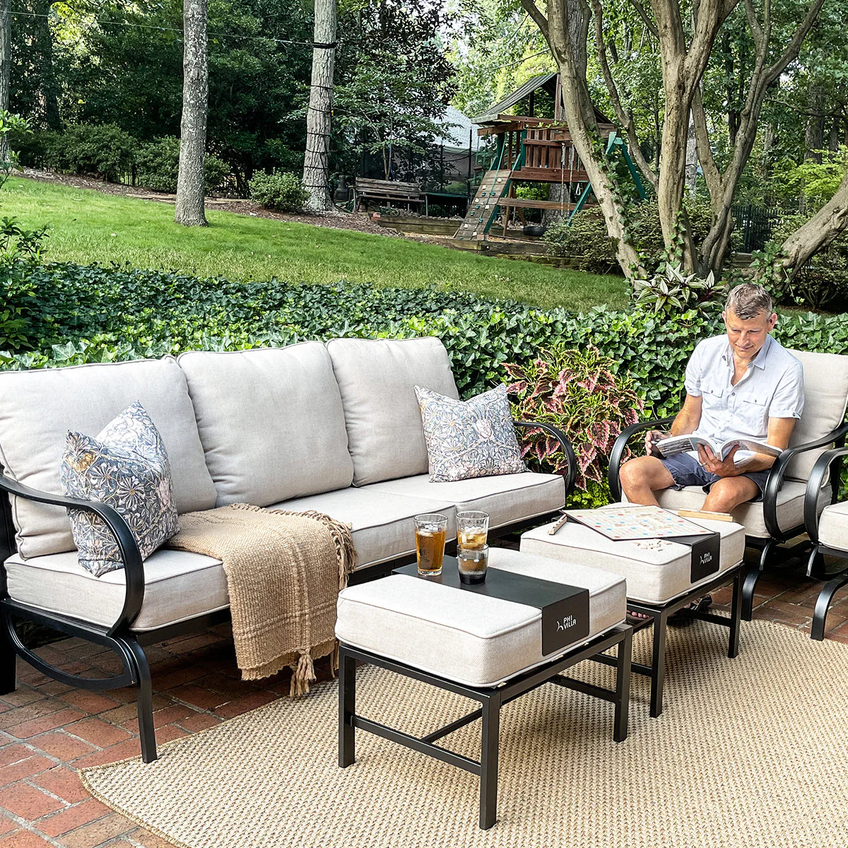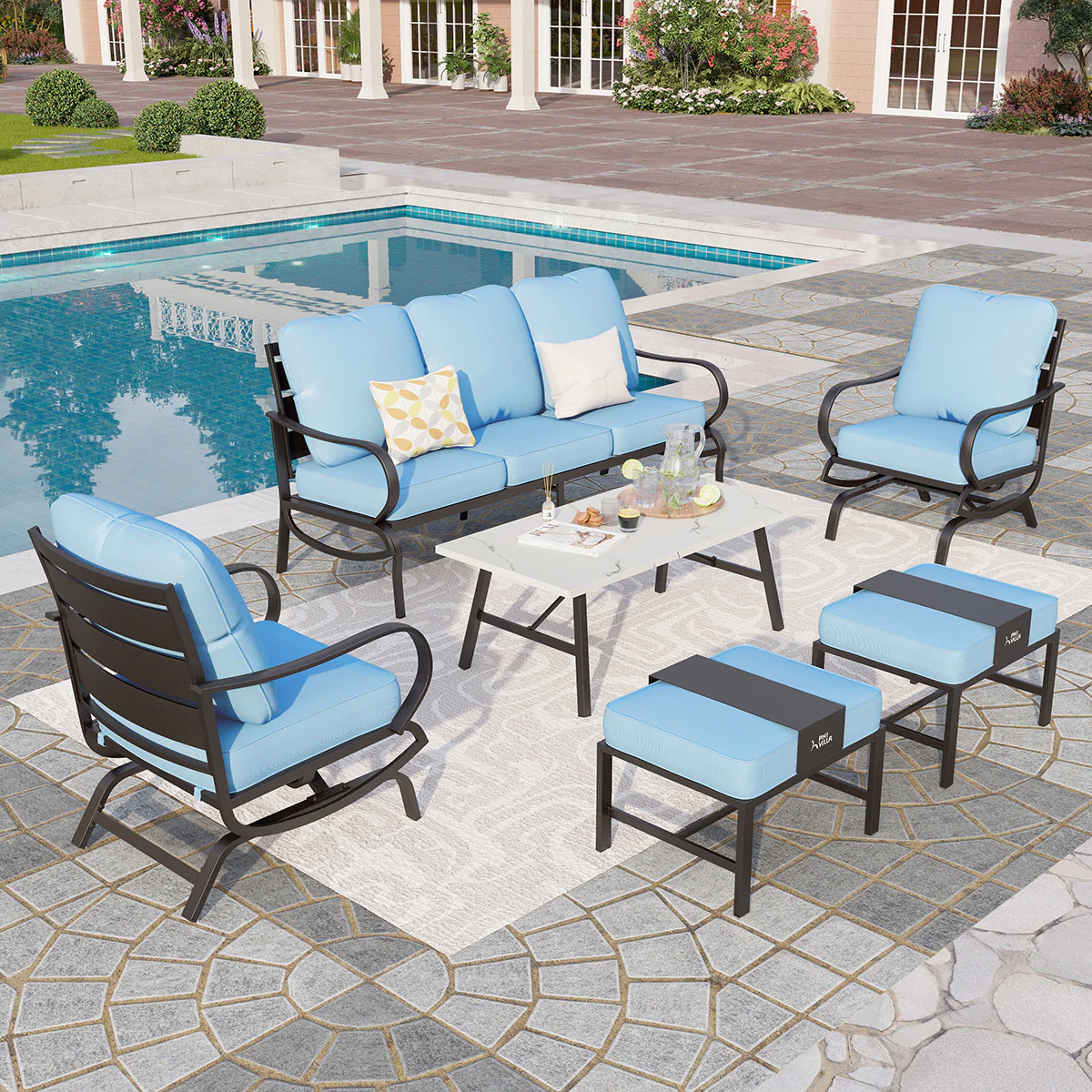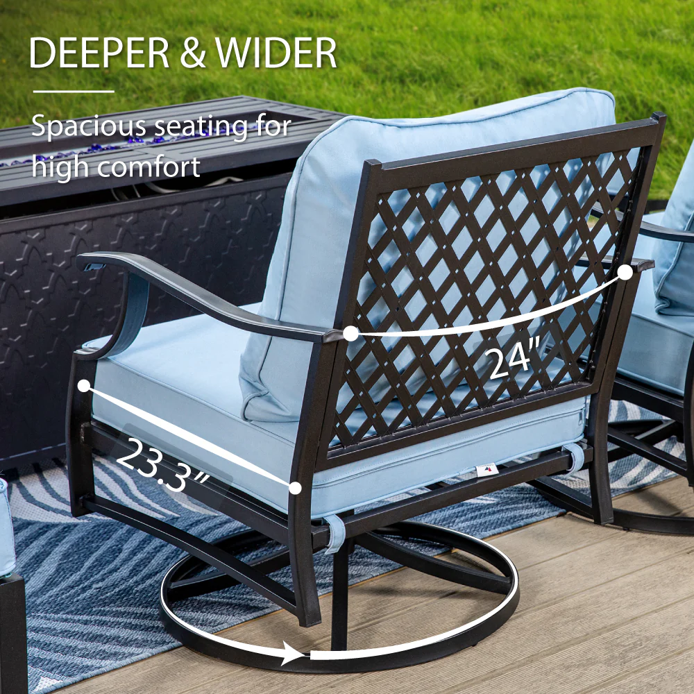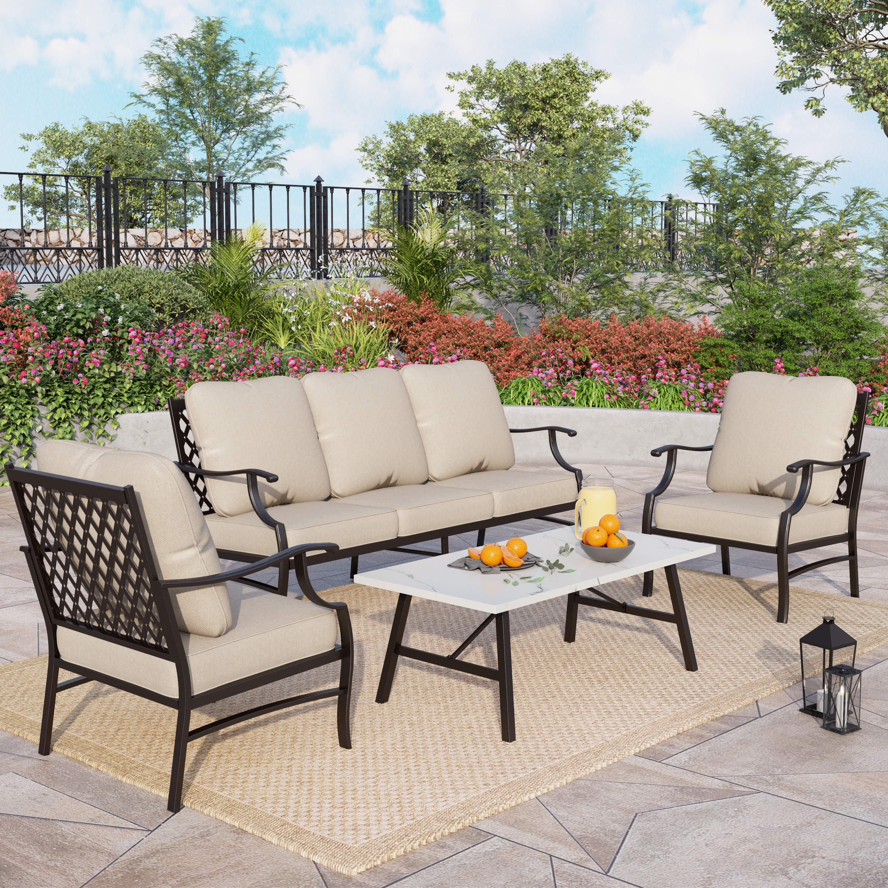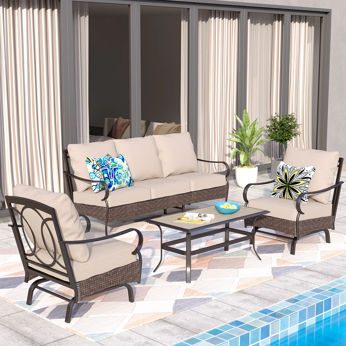 PHI VILLA 5-Seat Rattan-steel Luxury Padded Patio Conversation Set