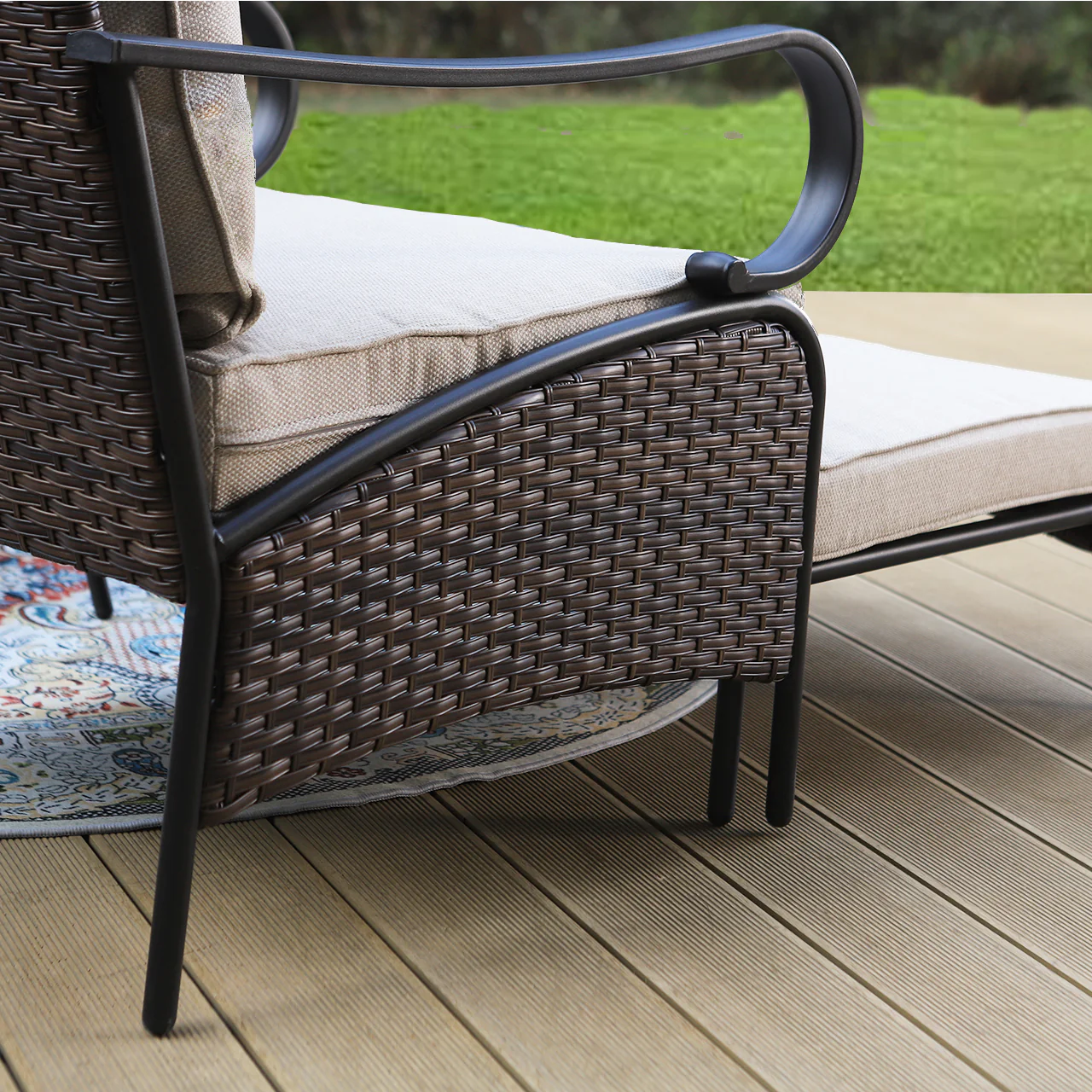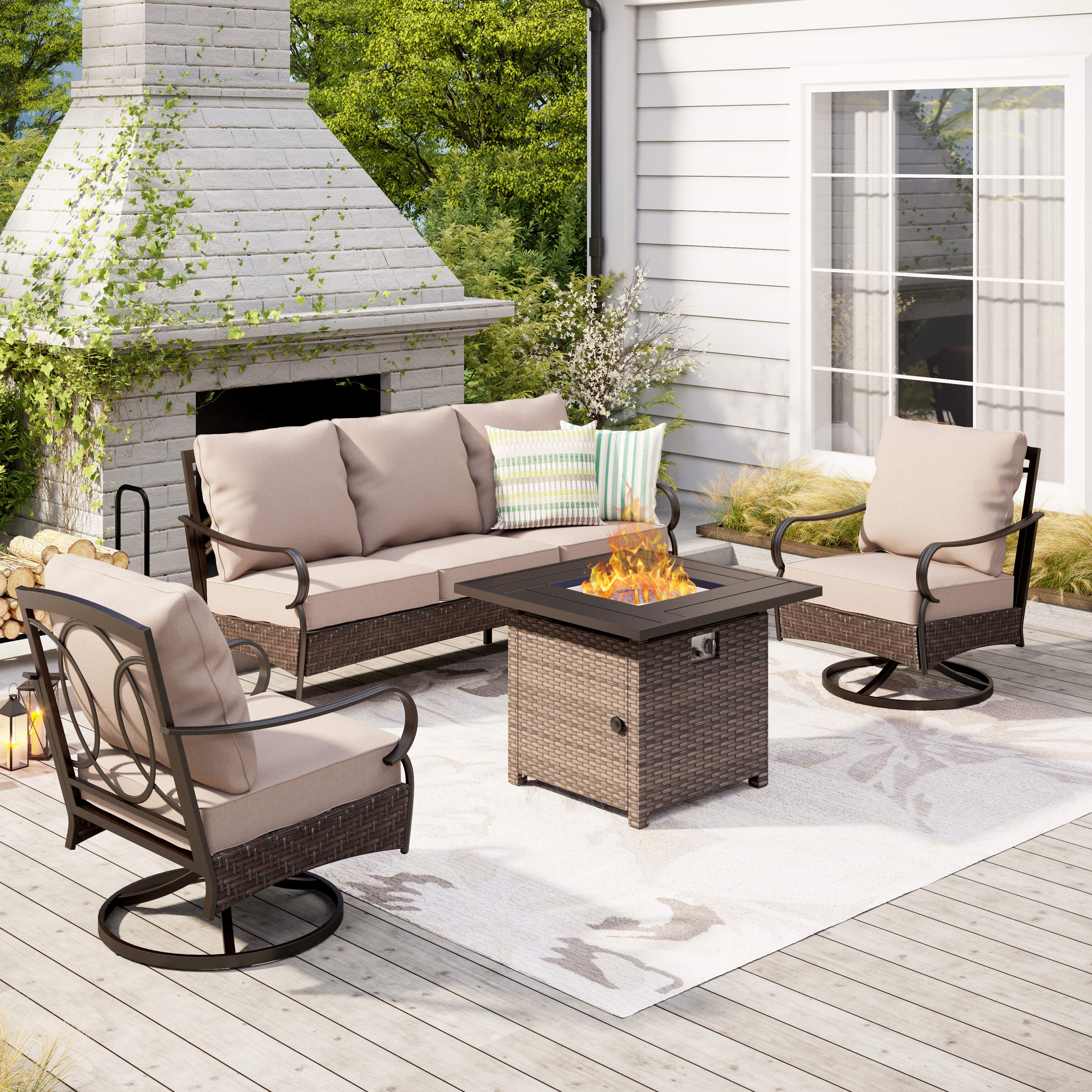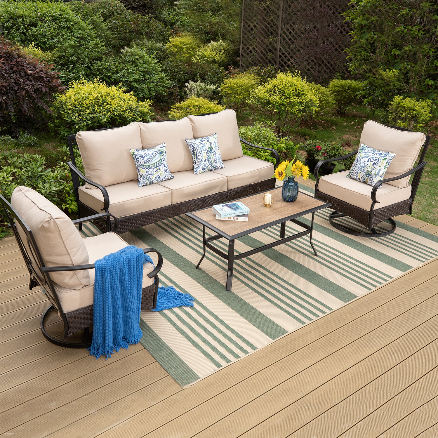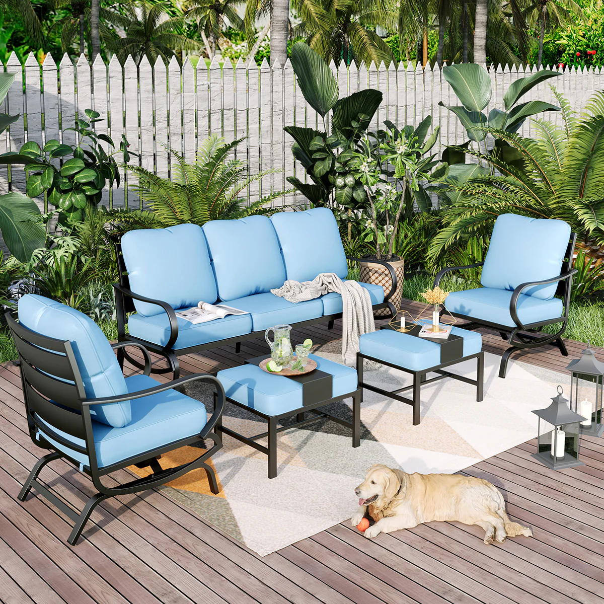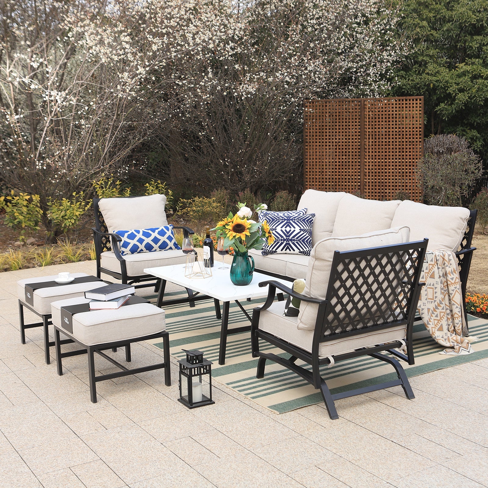 PHI VILLA 5-Seat Rattan-steel Luxury Padded Patio Conversation Set