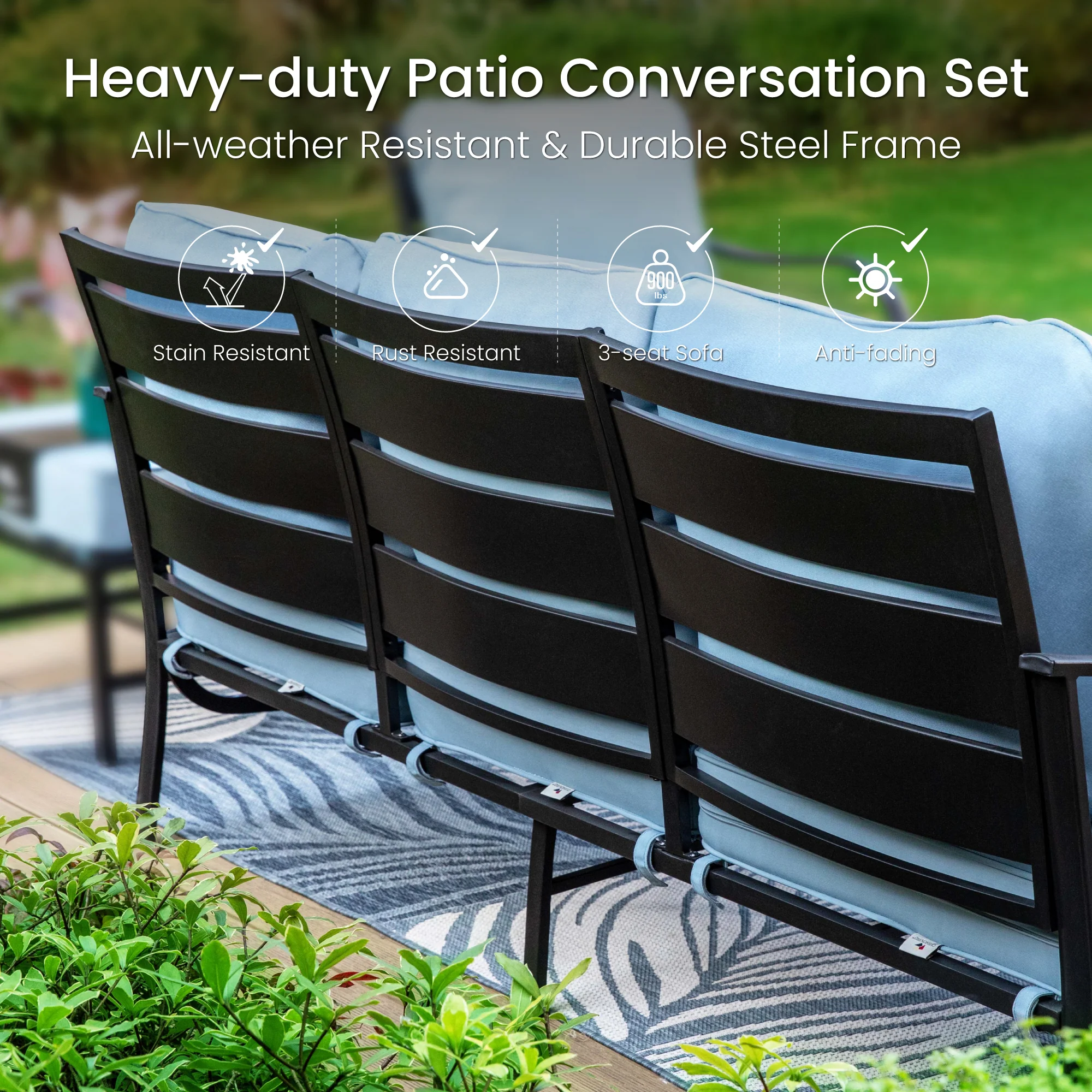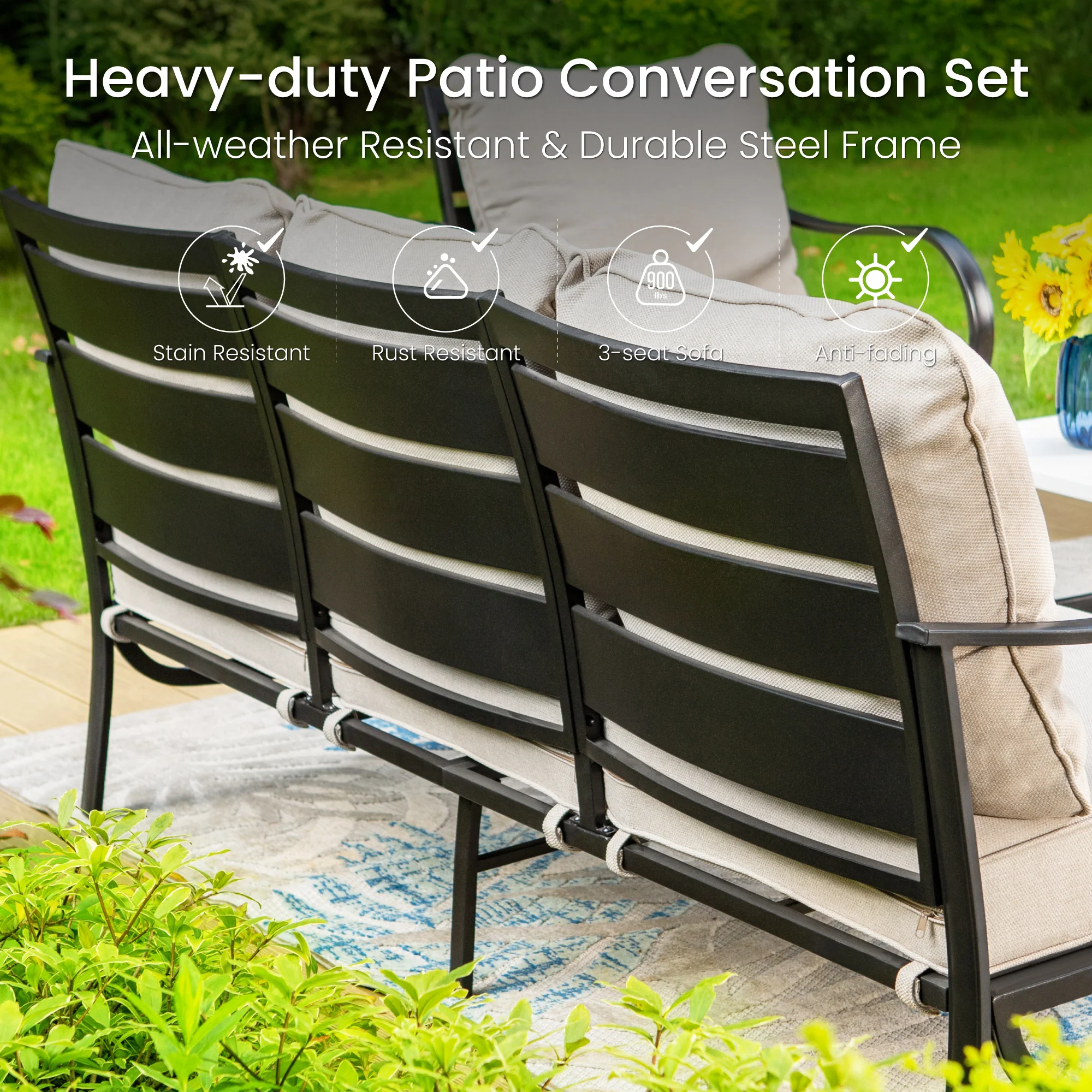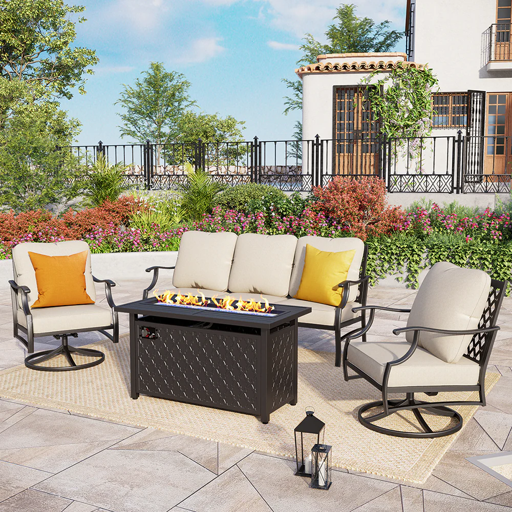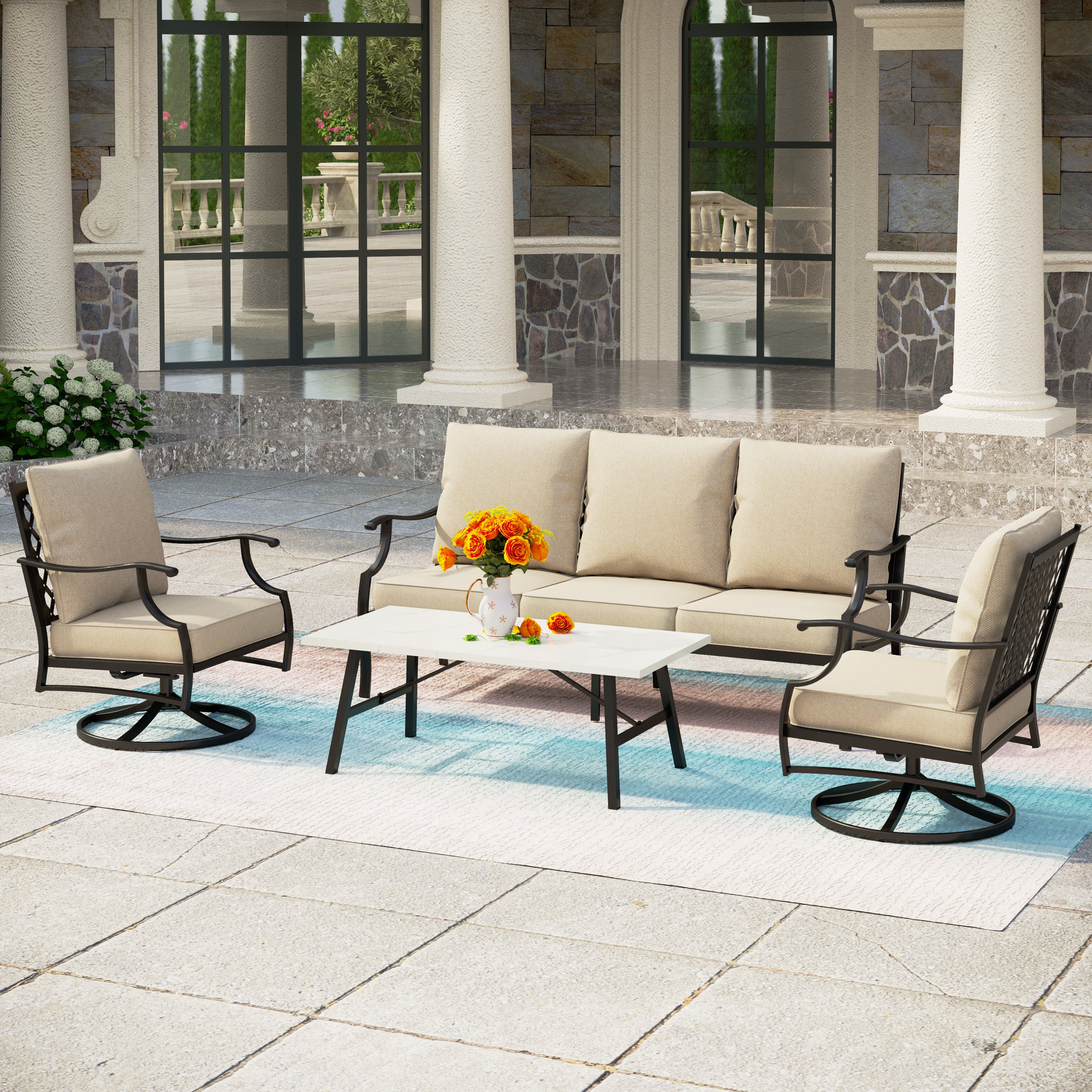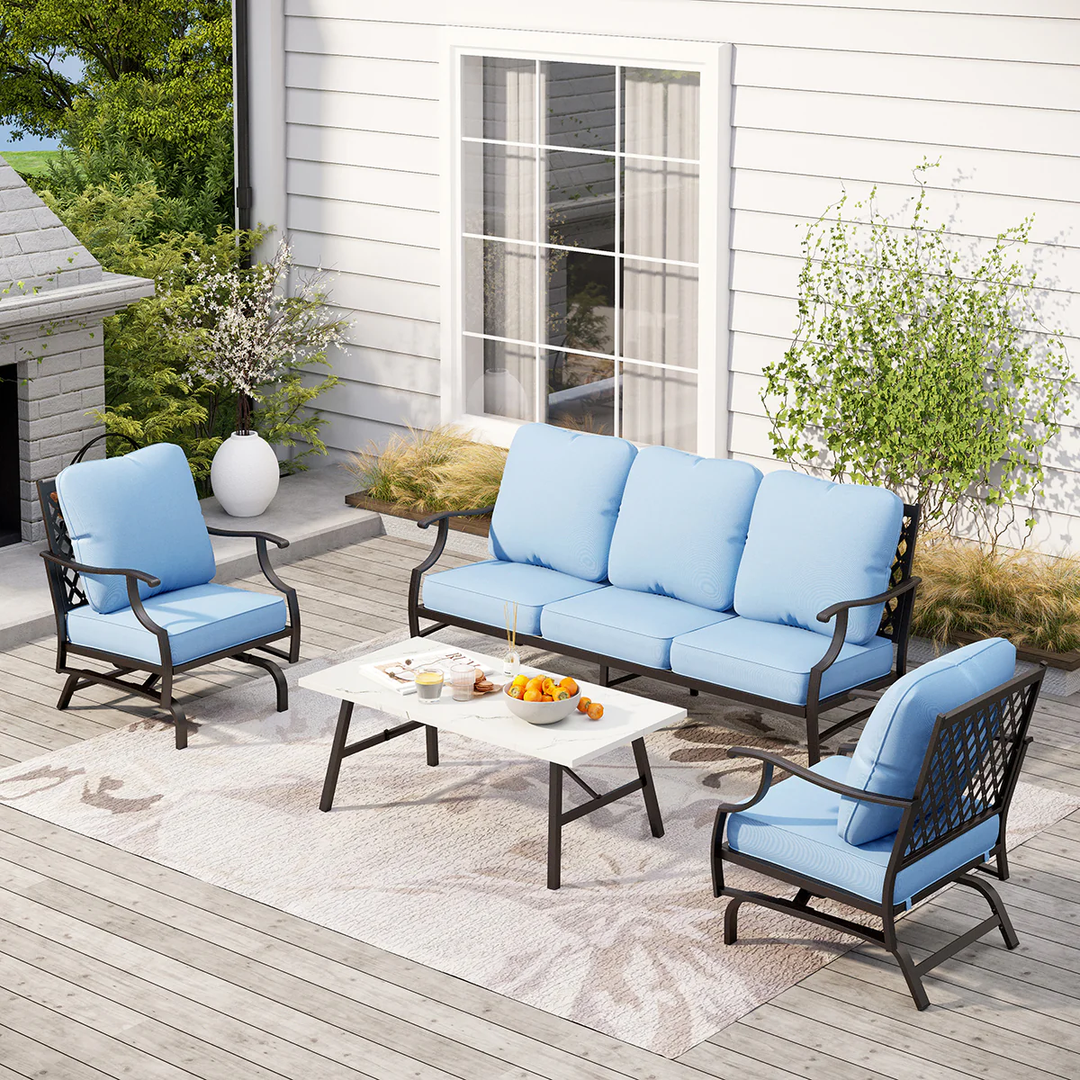 PHI VILLA 5-Seat Rattan-steel Luxury Padded Patio Conversation Set