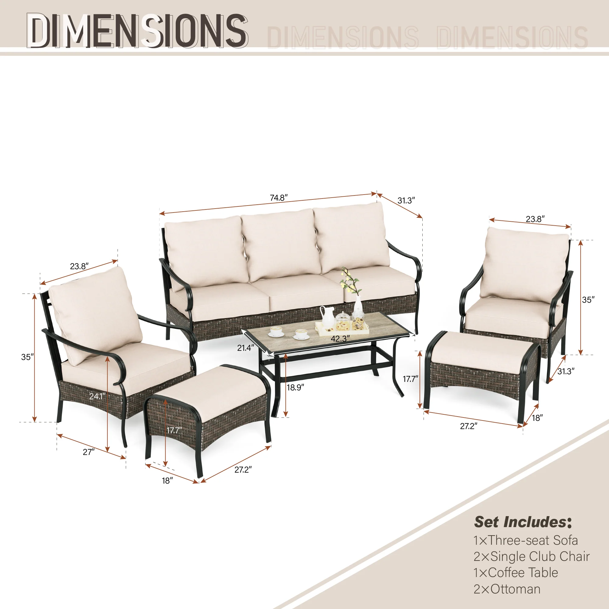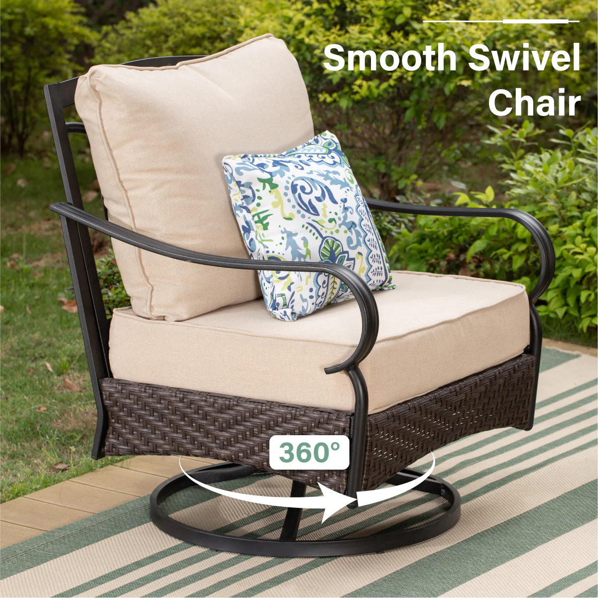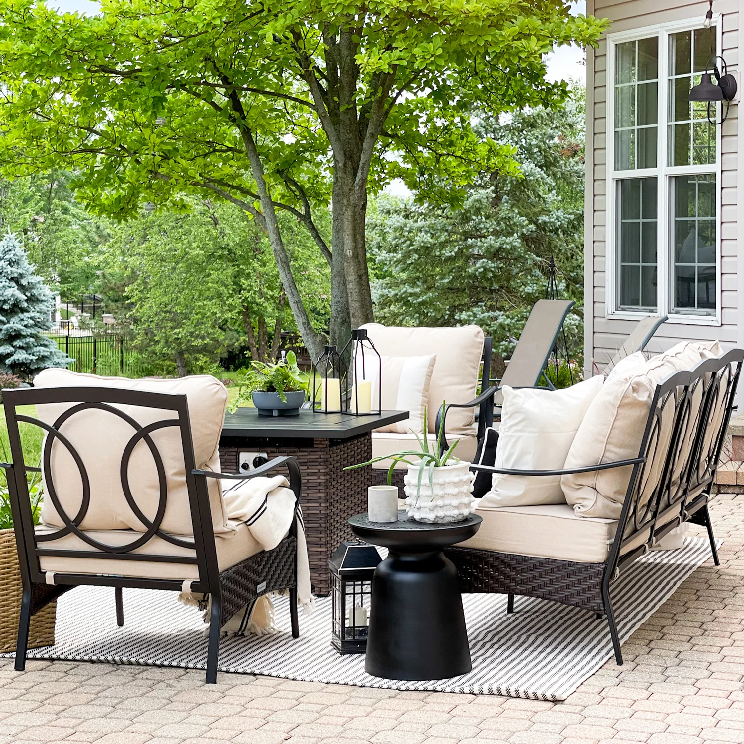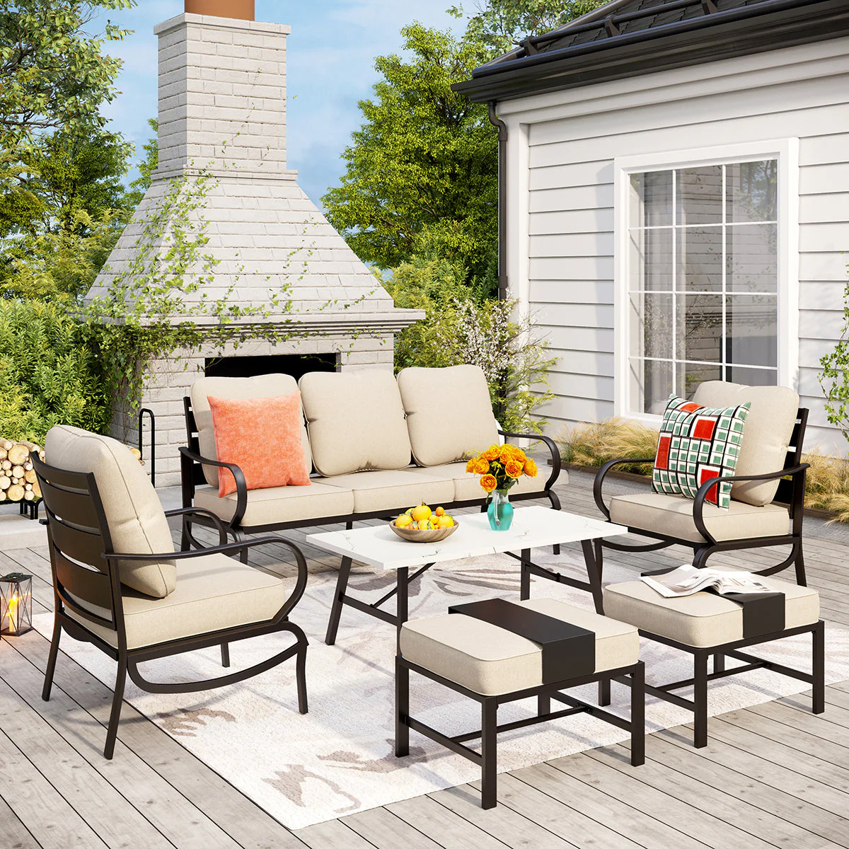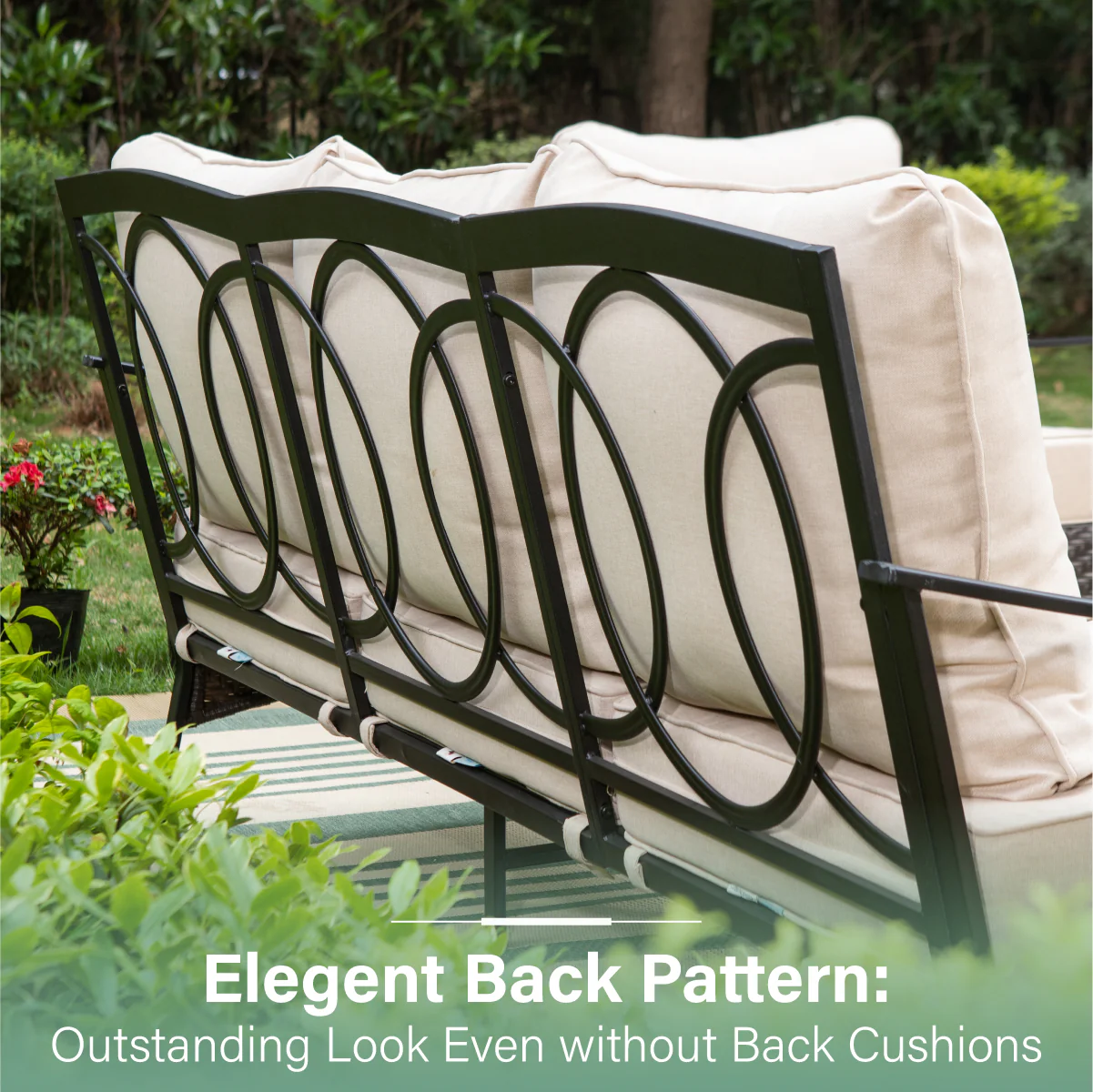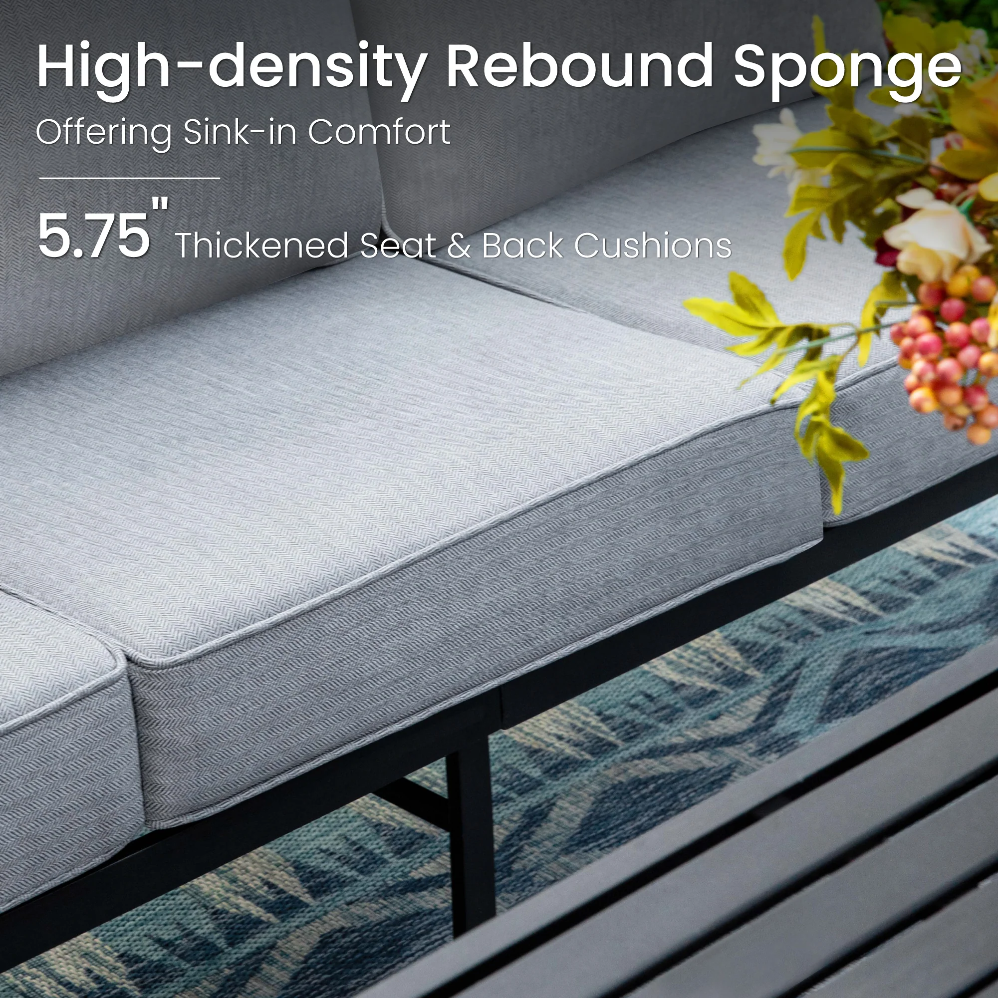 PHI VILLA 5-Seat Rattan-steel Luxury Padded Patio Conversation Set