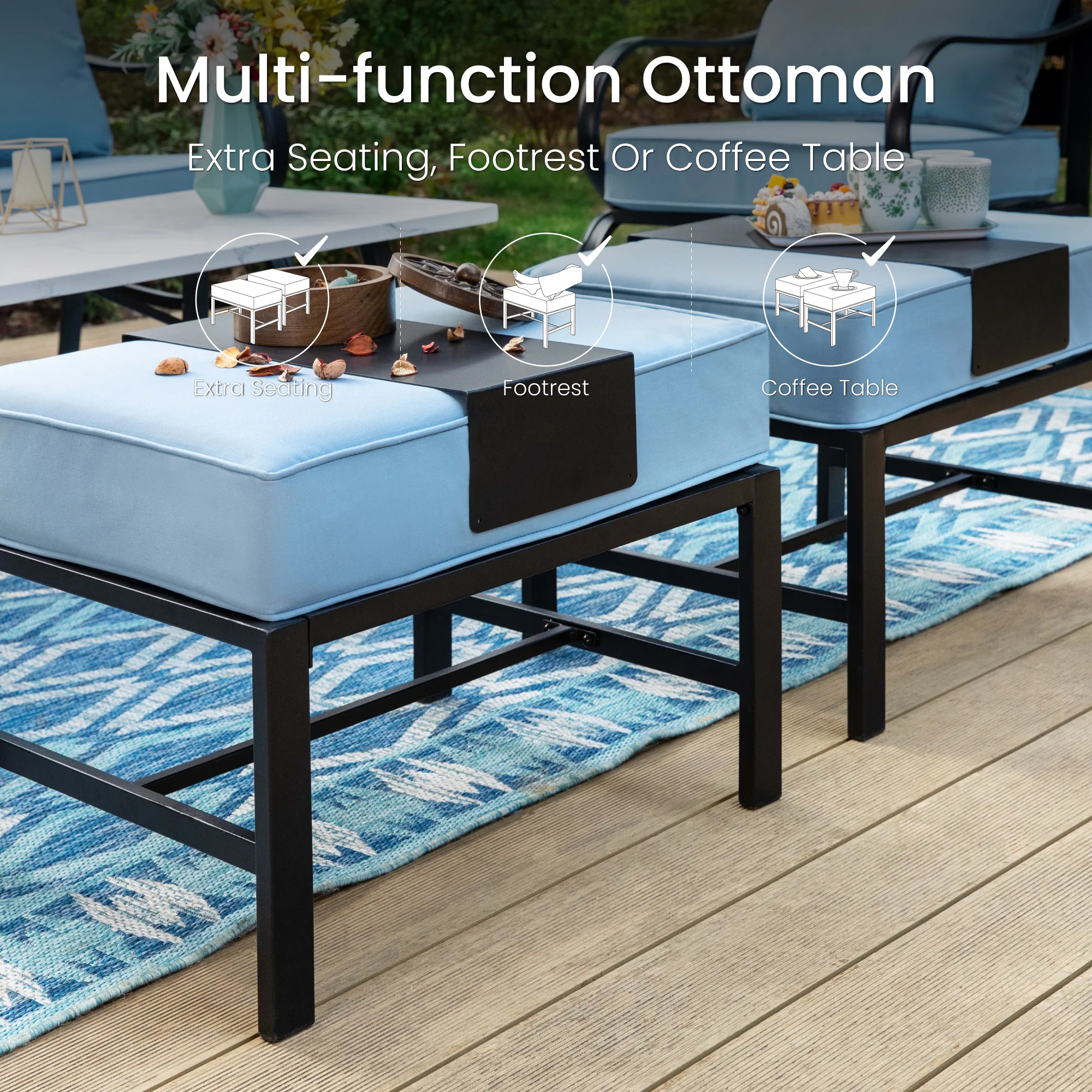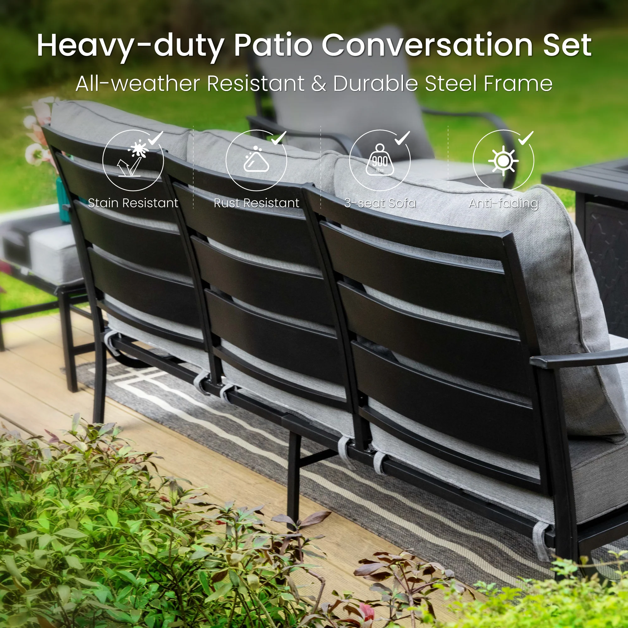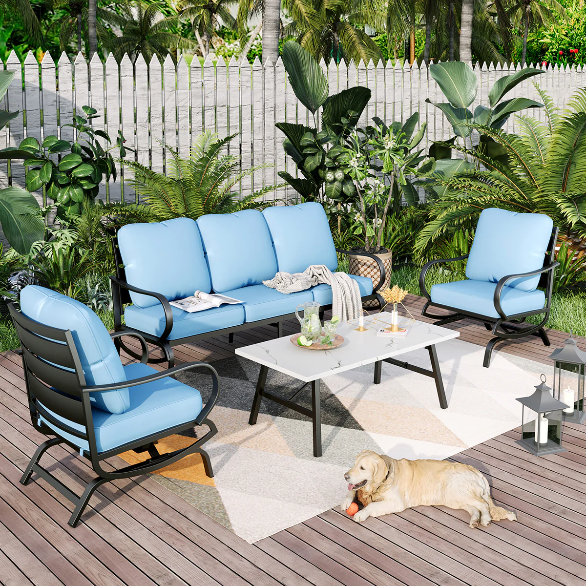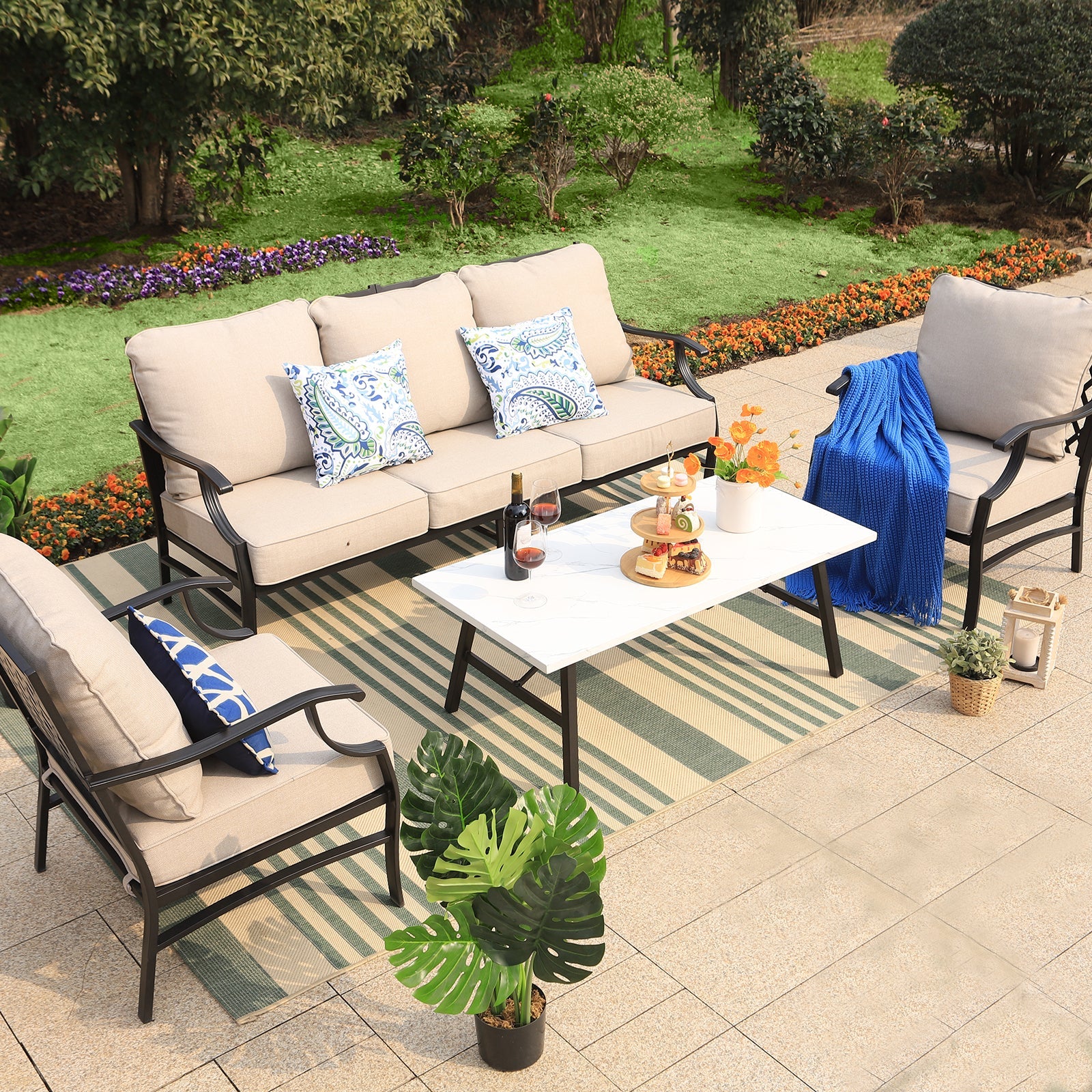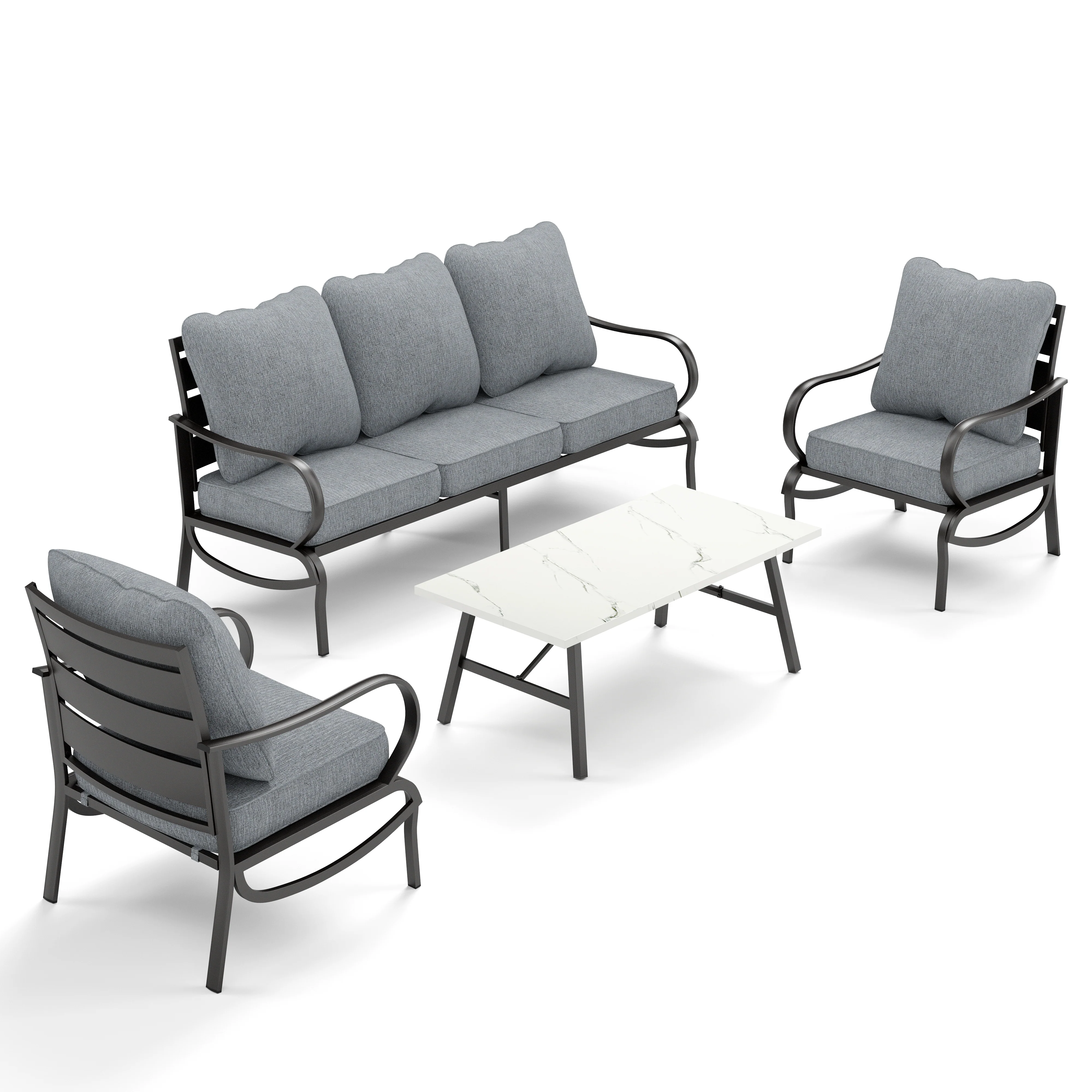 PHI VILLA 5-Seat Rattan-steel Luxury Padded Patio Conversation Set