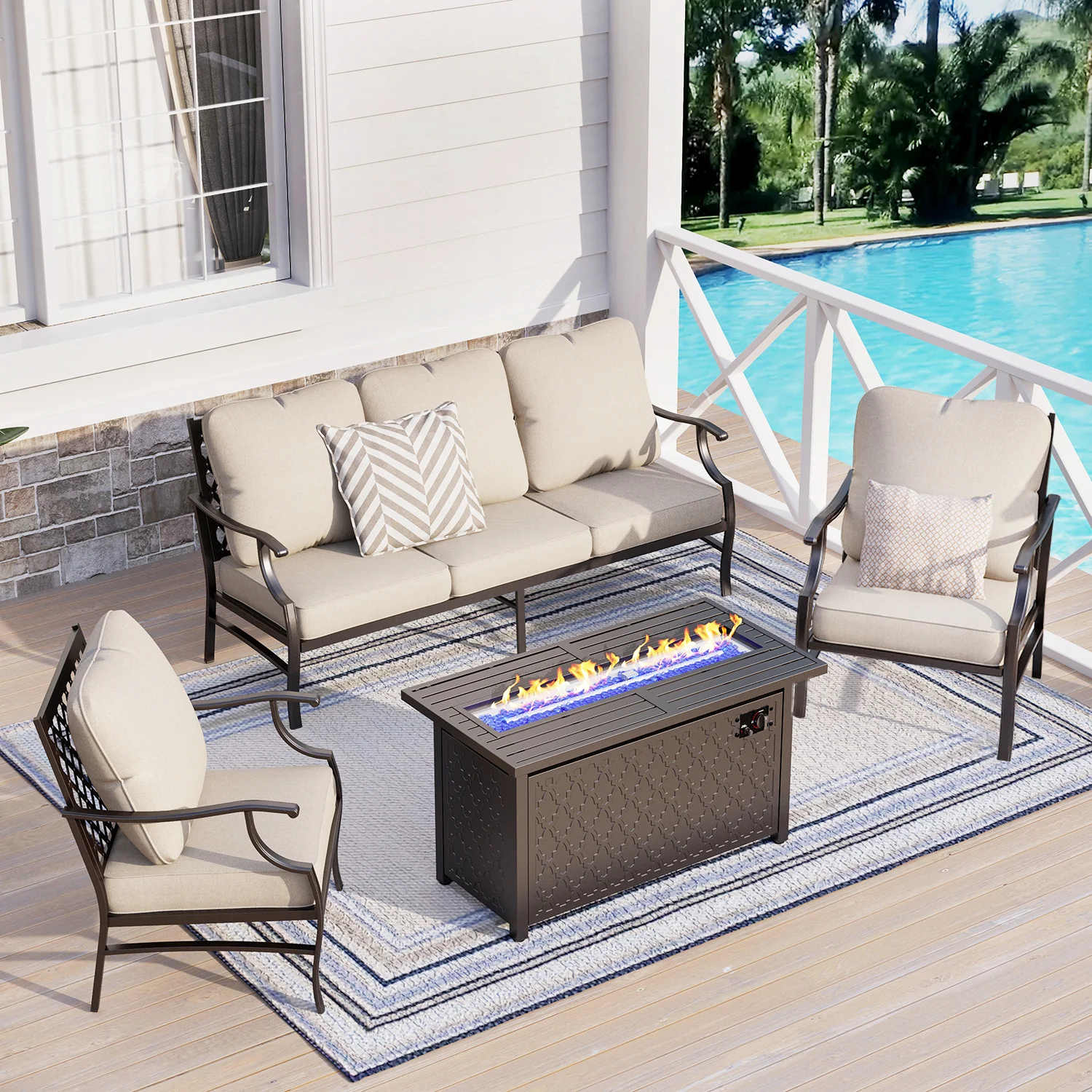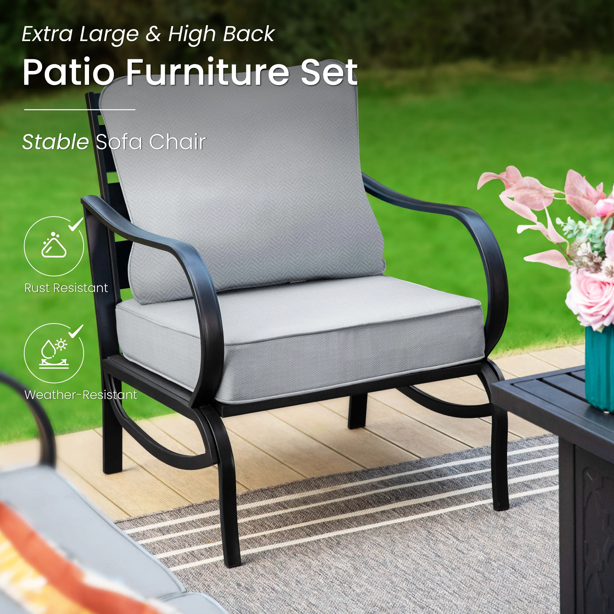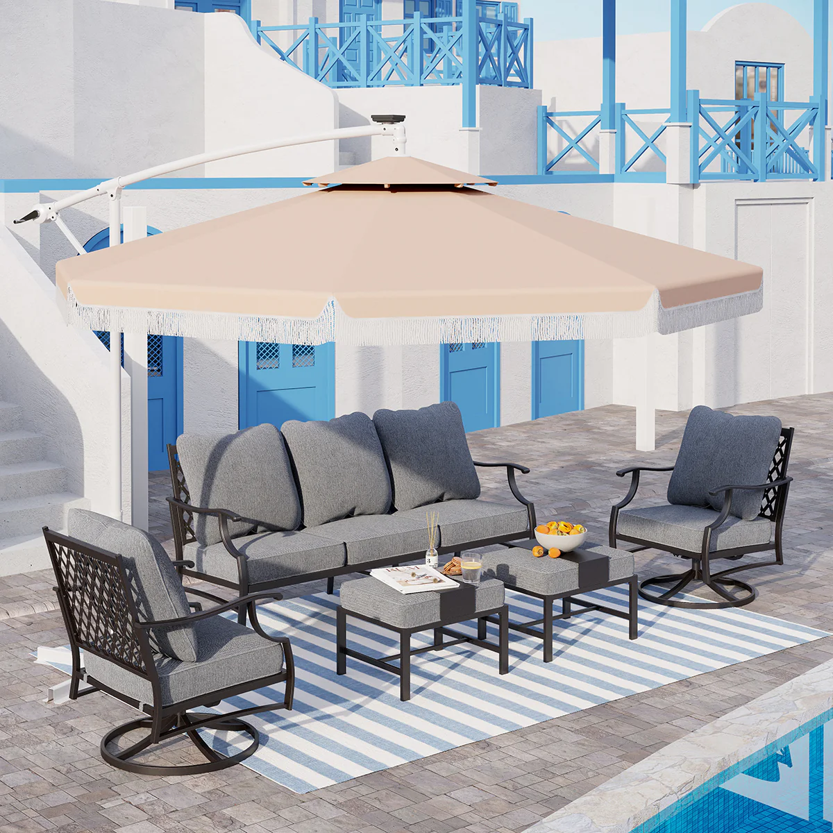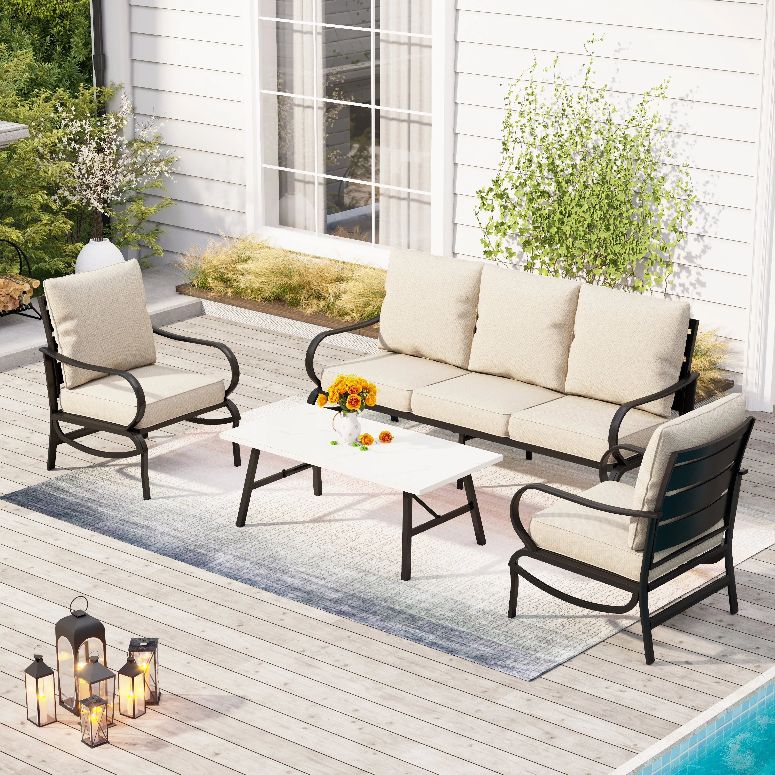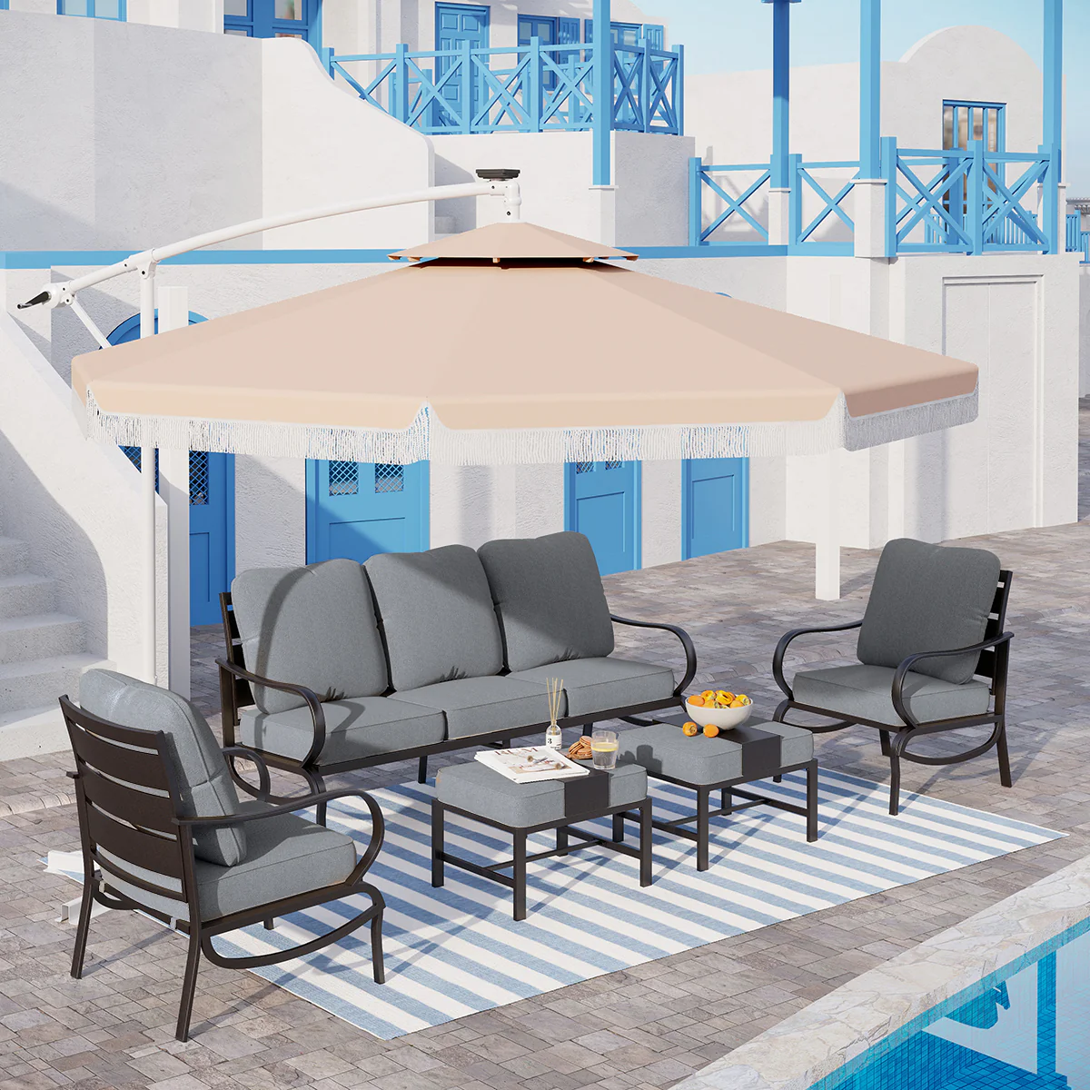 PHI VILLA 5-Seat Rattan-steel Luxury Padded Patio Conversation Set