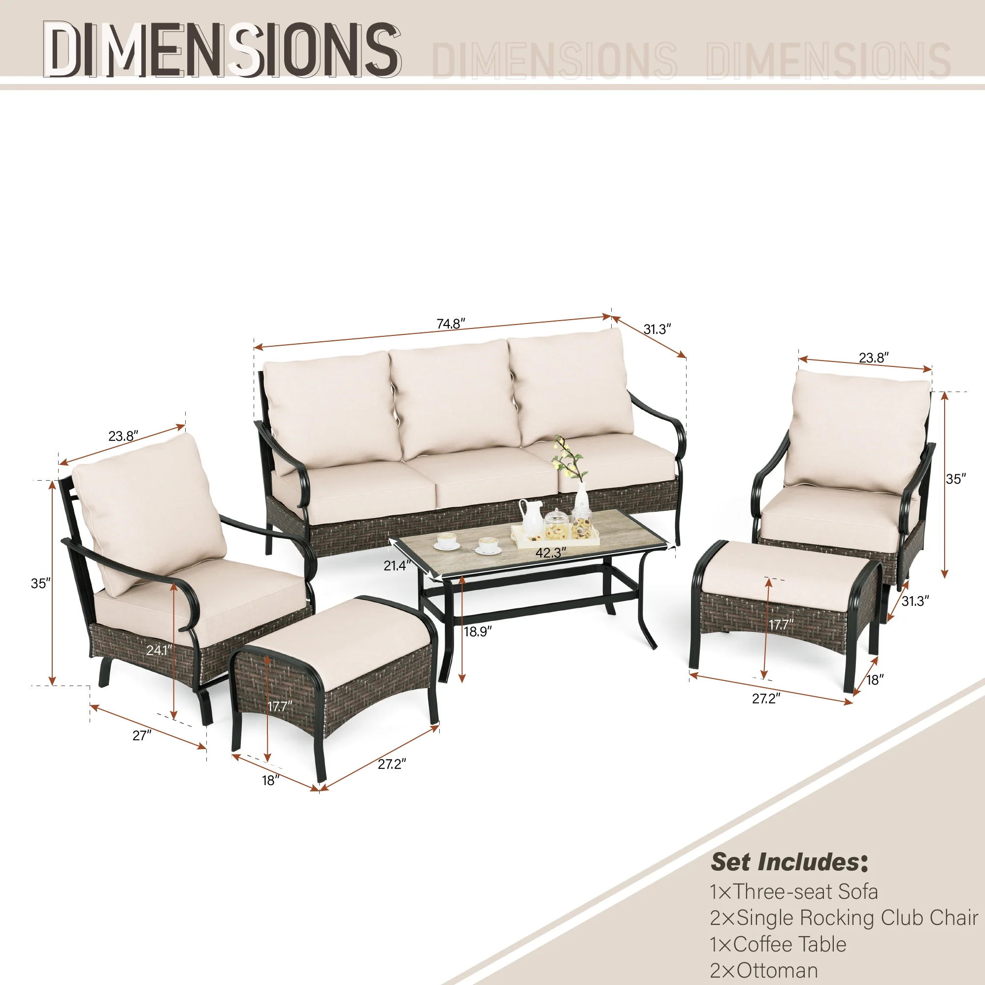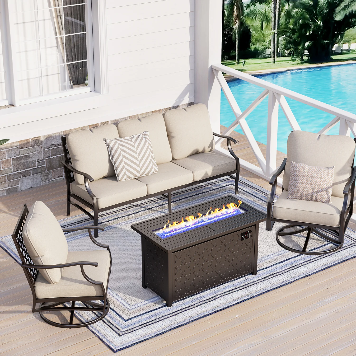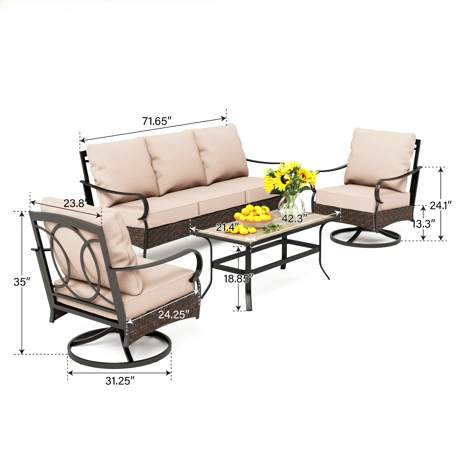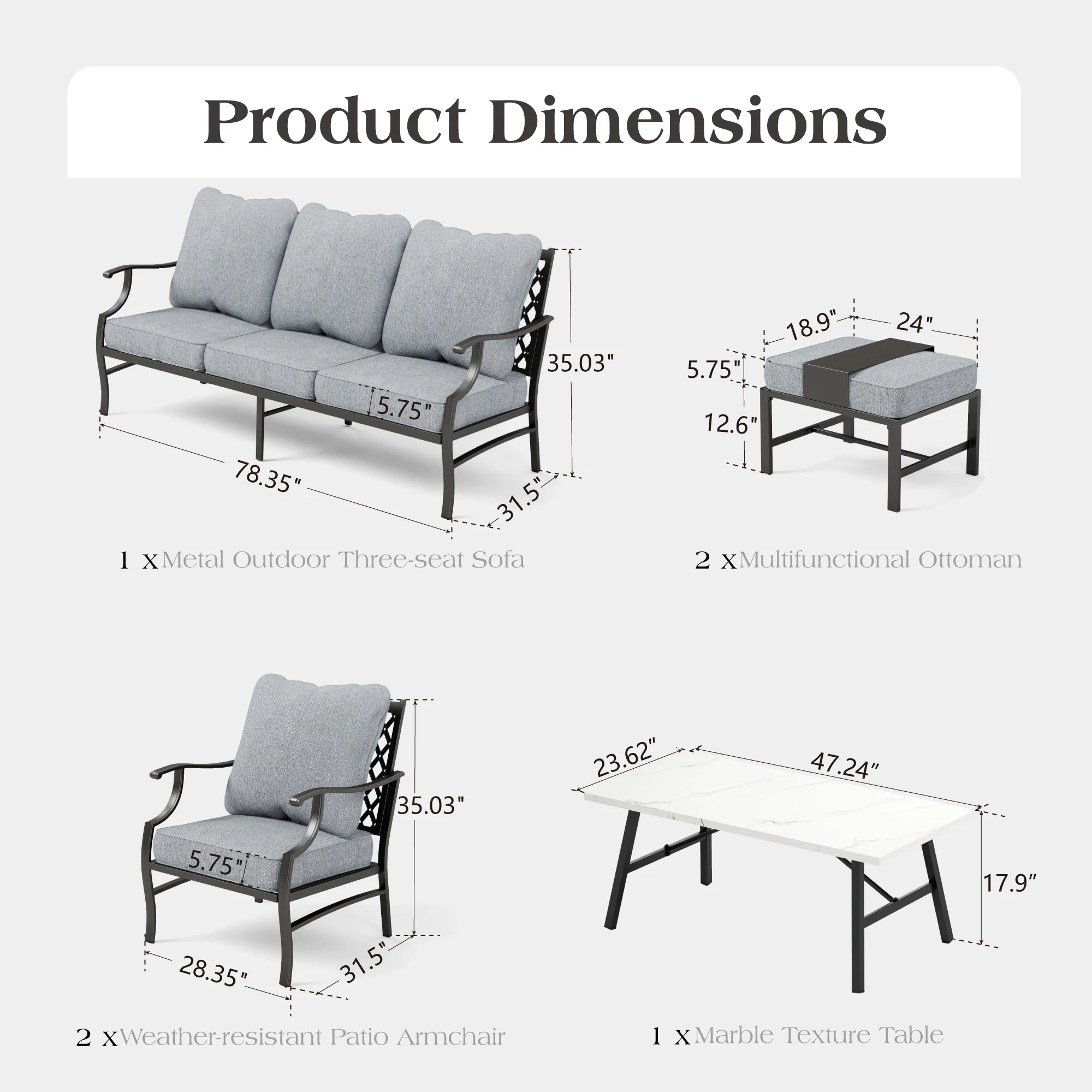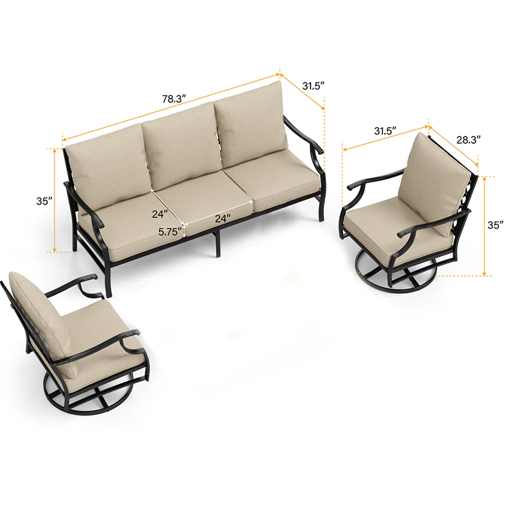 PHI VILLA 5-Seat Rattan-steel Luxury Padded Patio Conversation Set