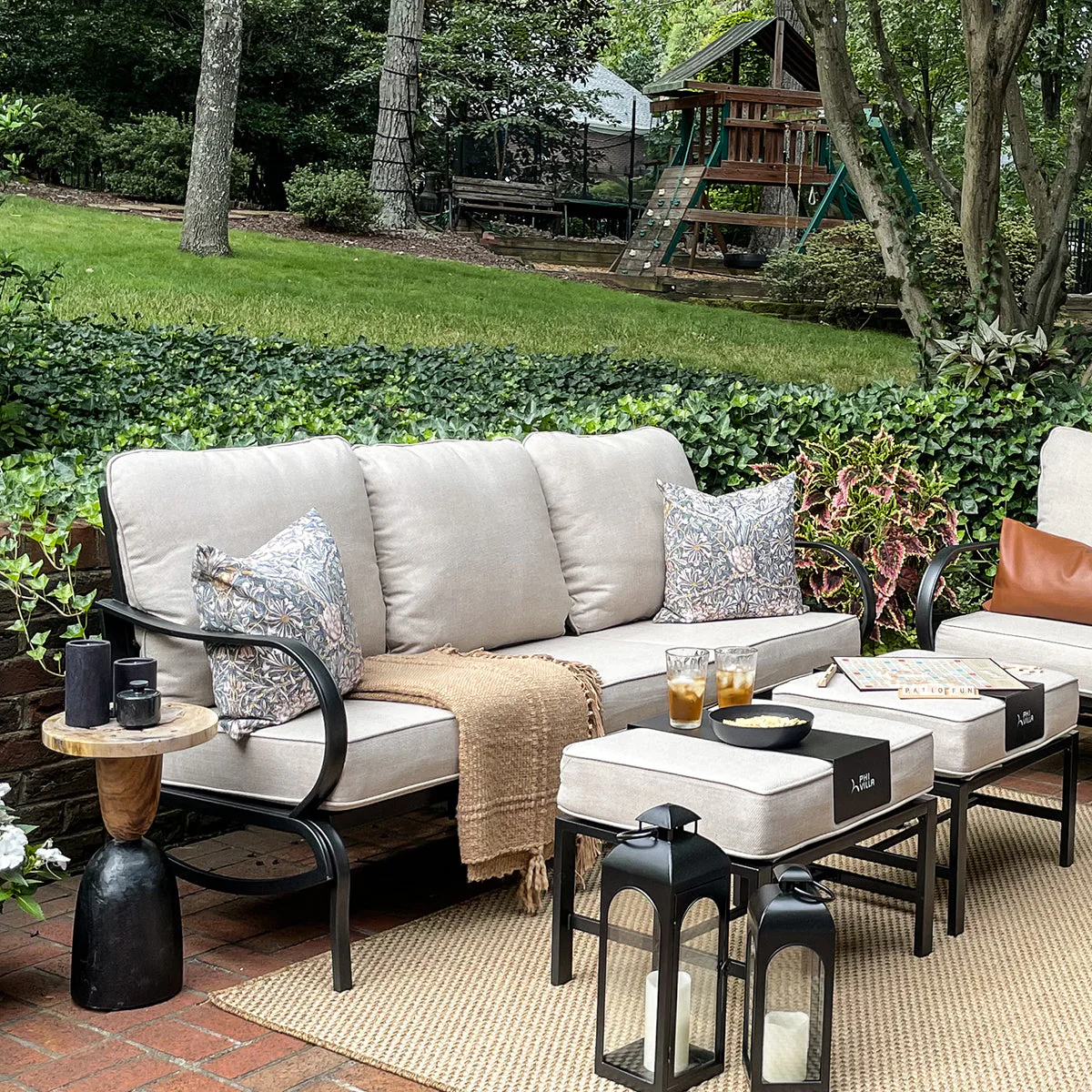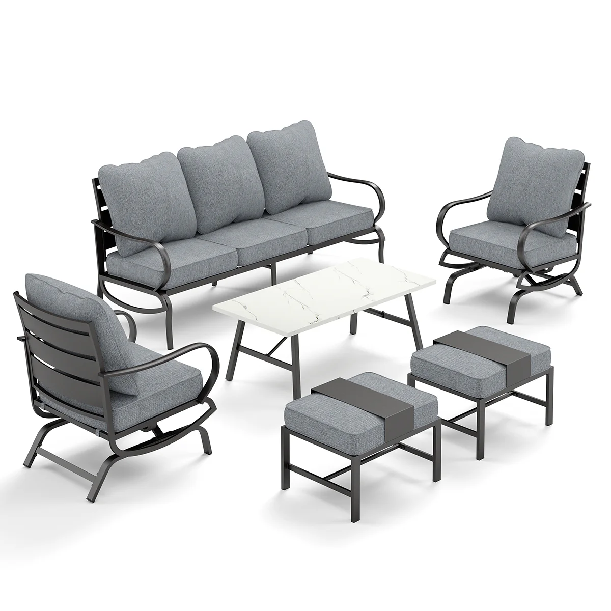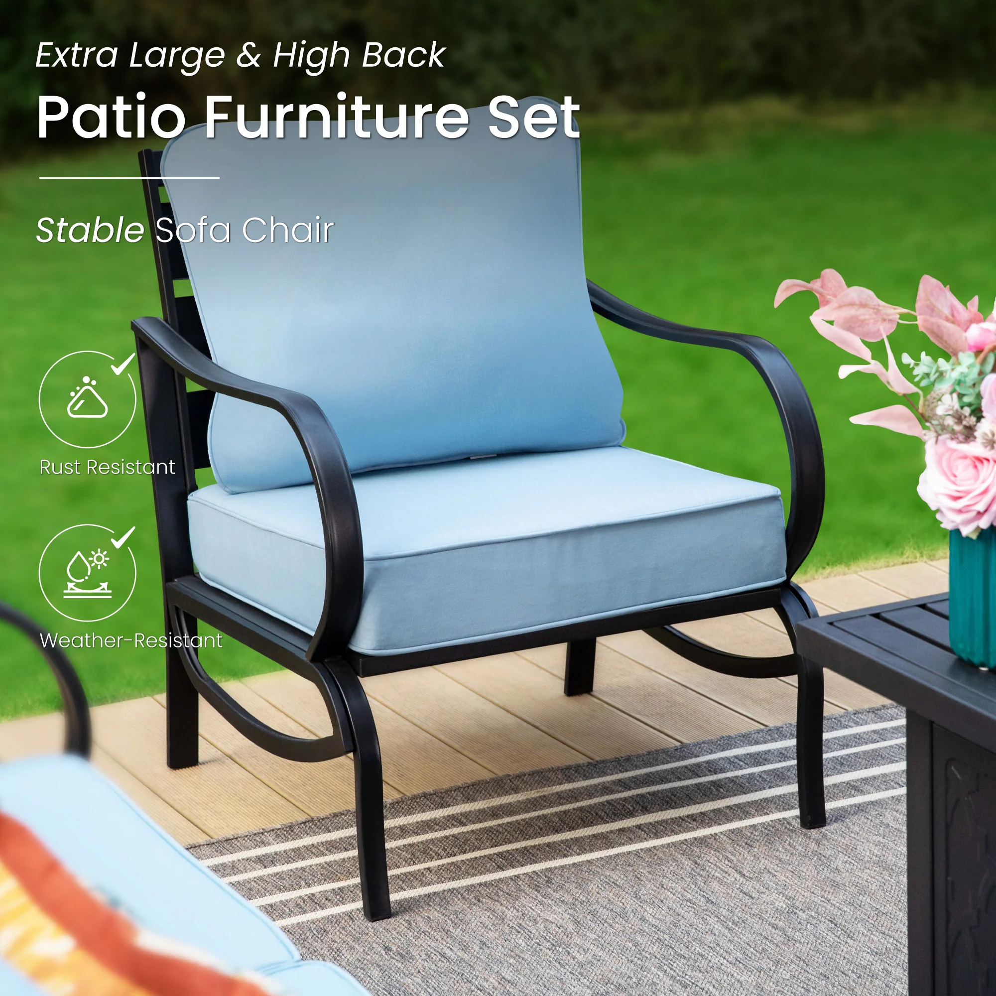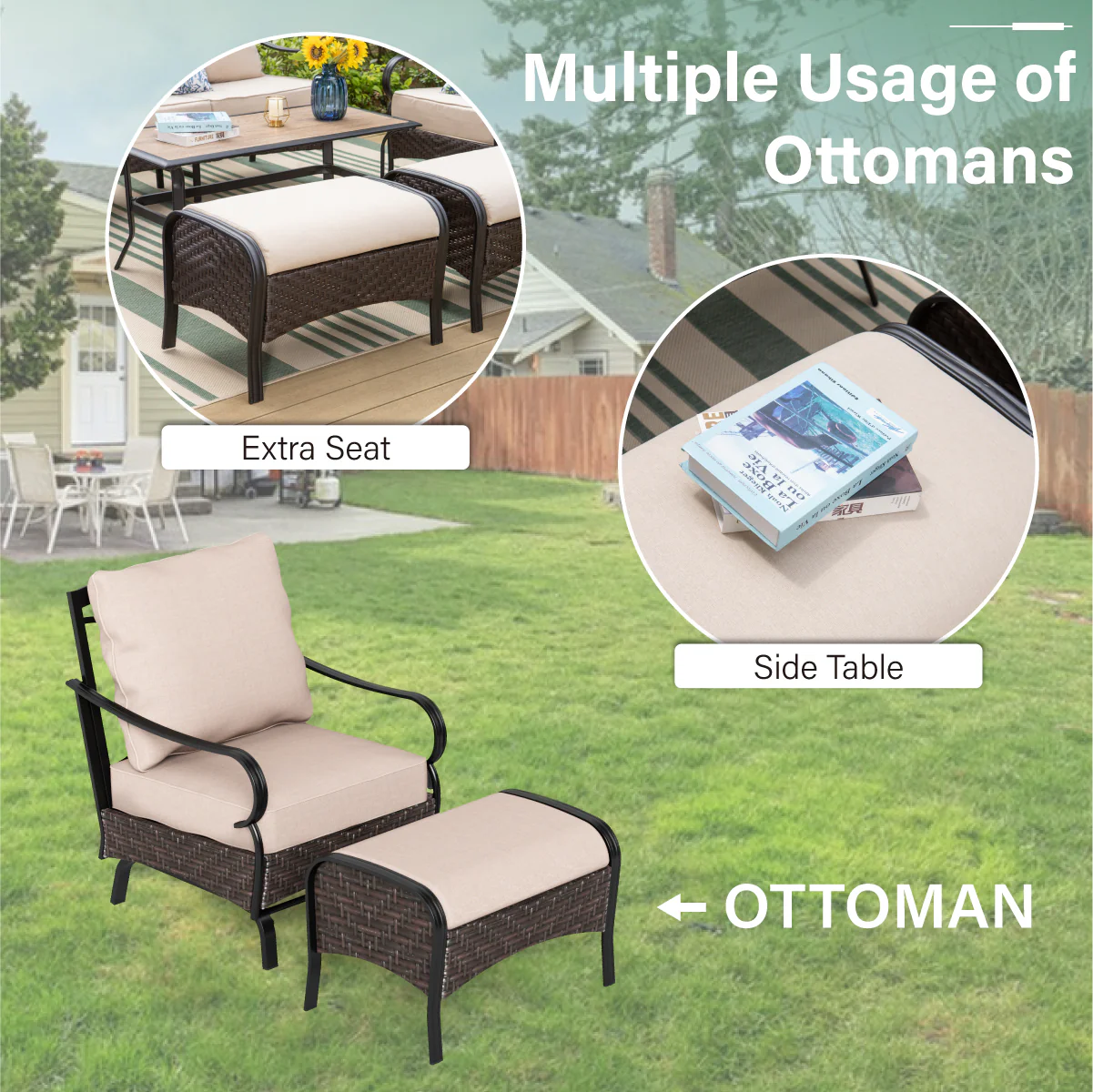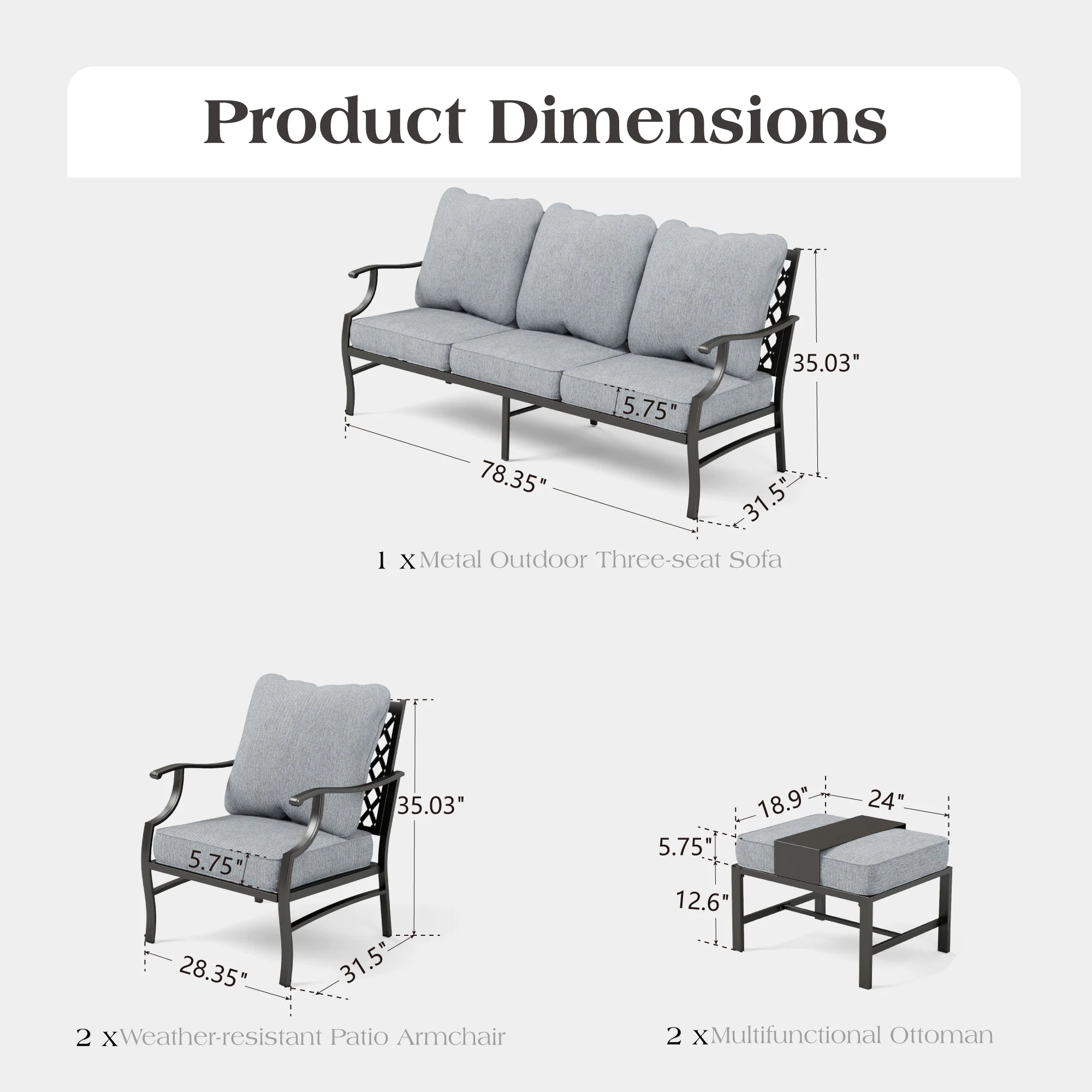 PHI VILLA 5-Seat Rattan-steel Luxury Padded Patio Conversation Set