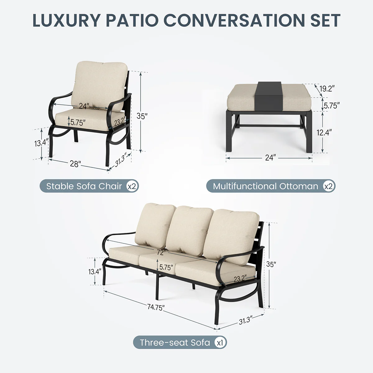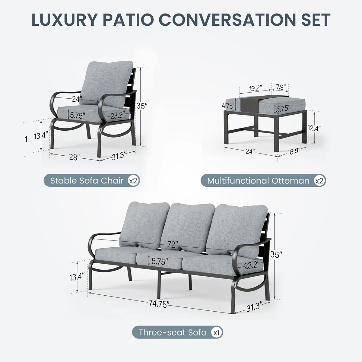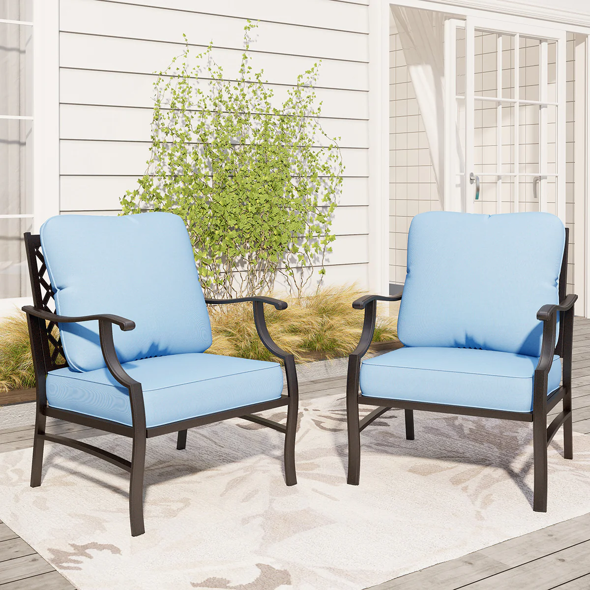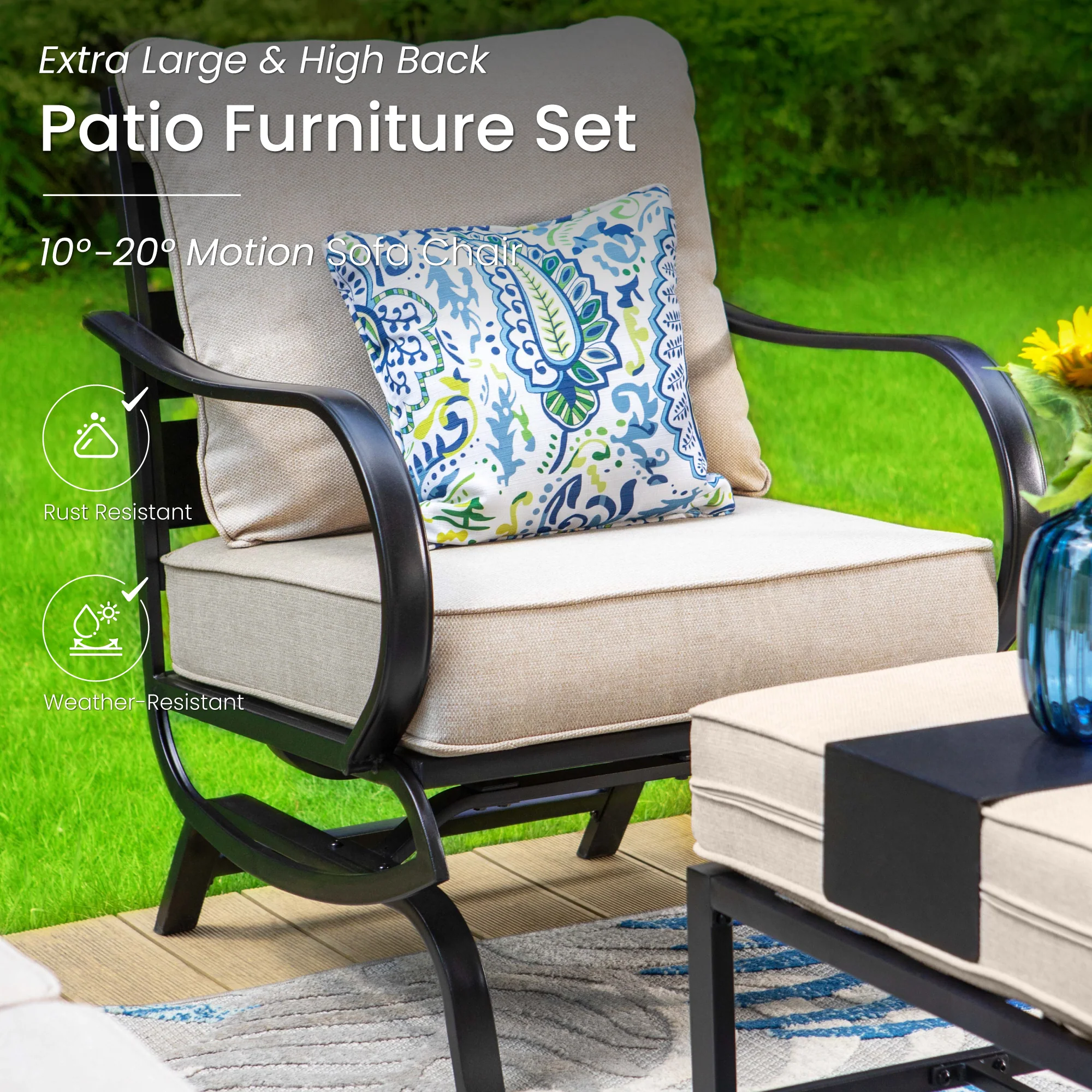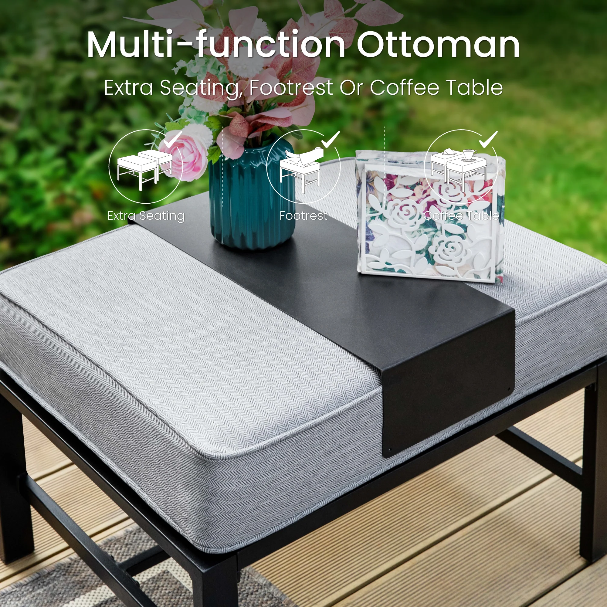 PHI VILLA 5-Seat Rattan-steel Luxury Padded Patio Conversation Set