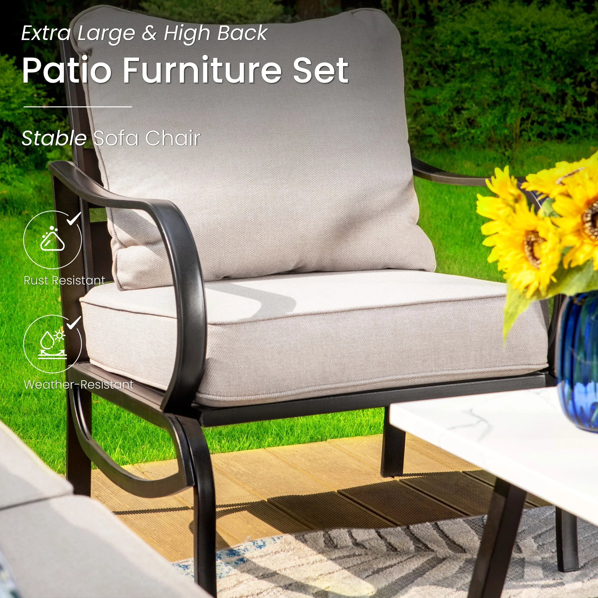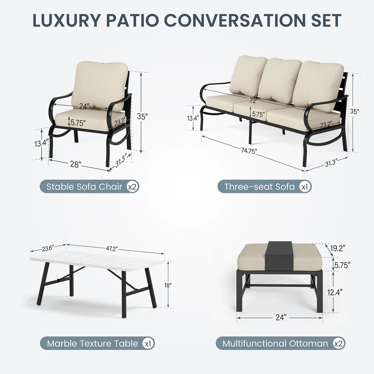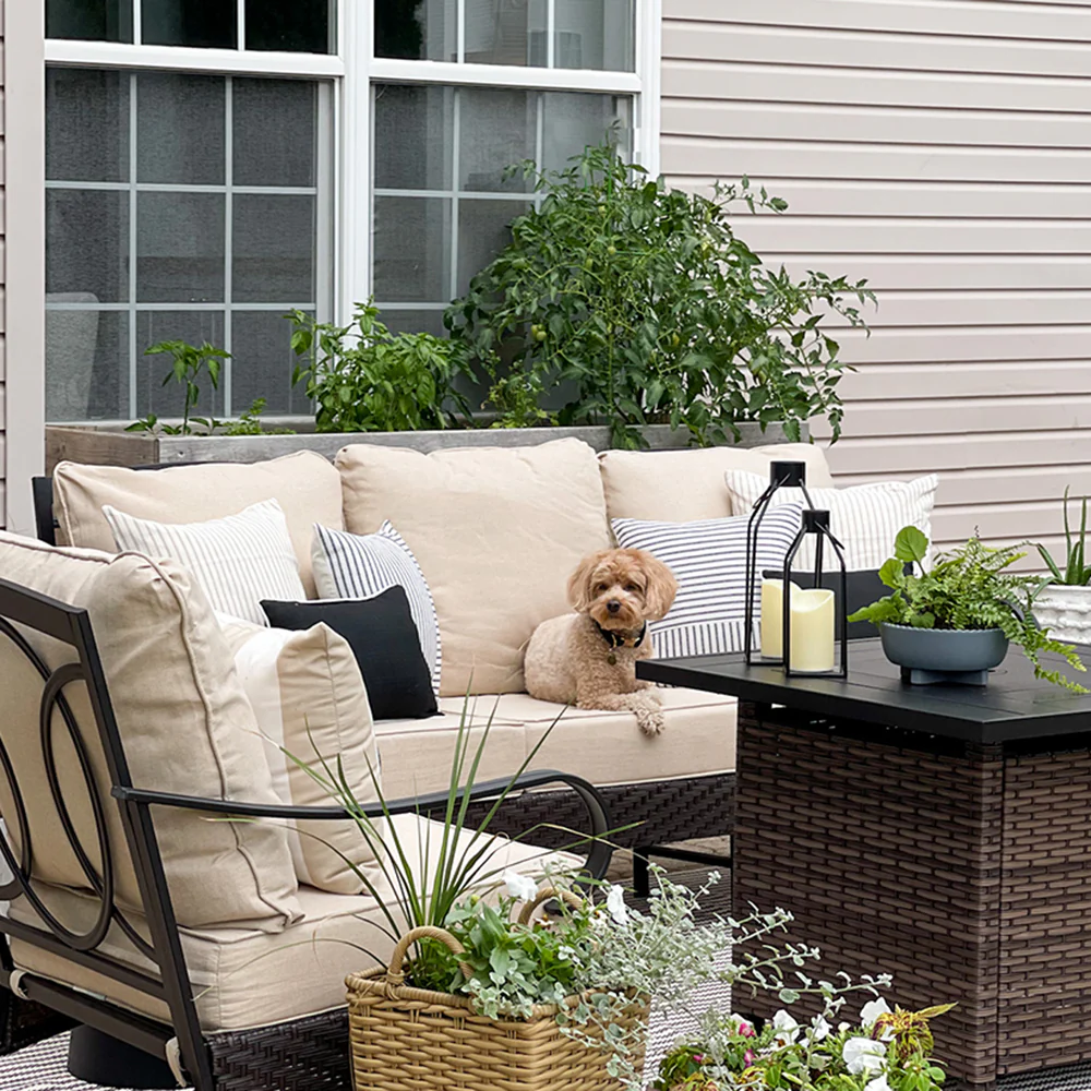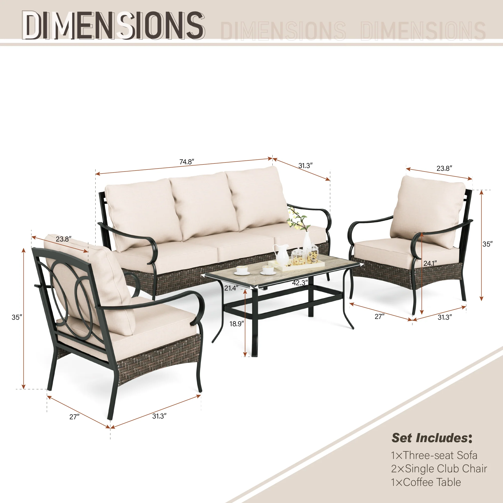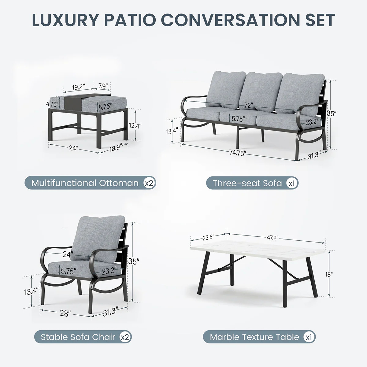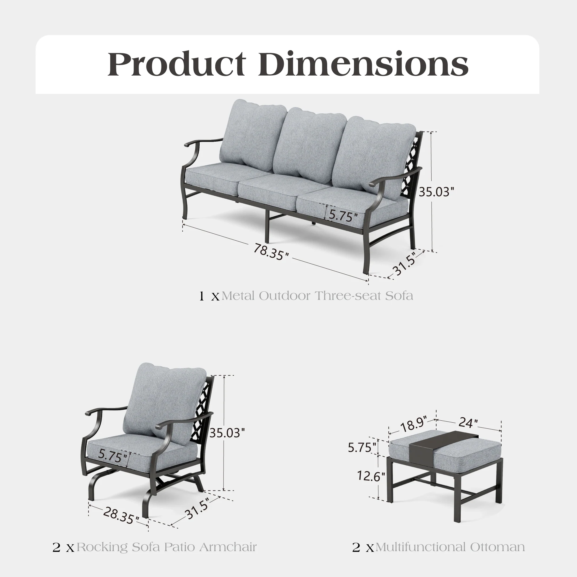 PHI VILLA 5-Seat Rattan-steel Luxury Padded Patio Conversation Set