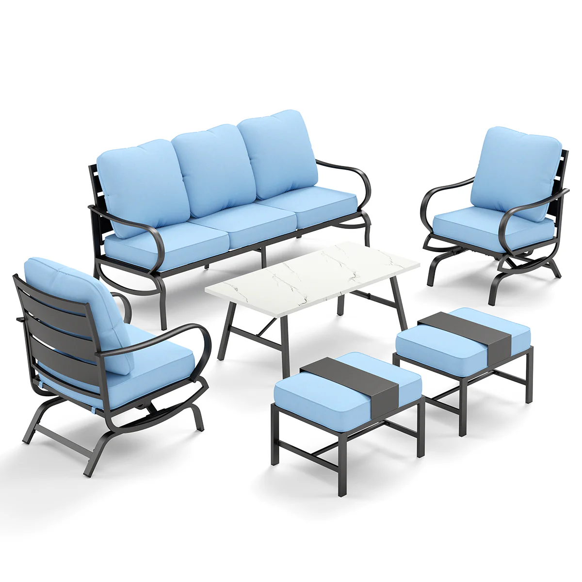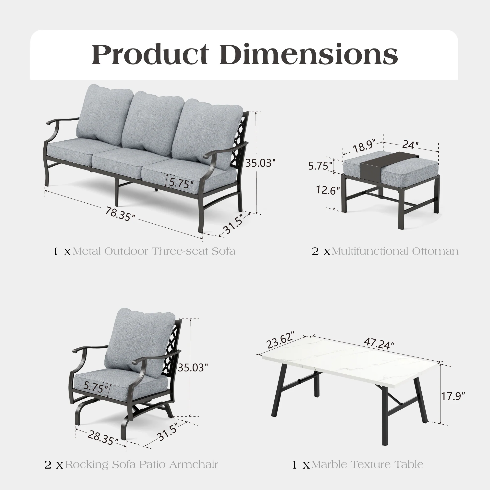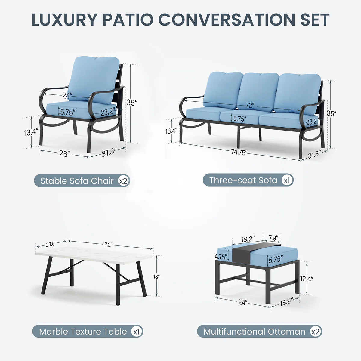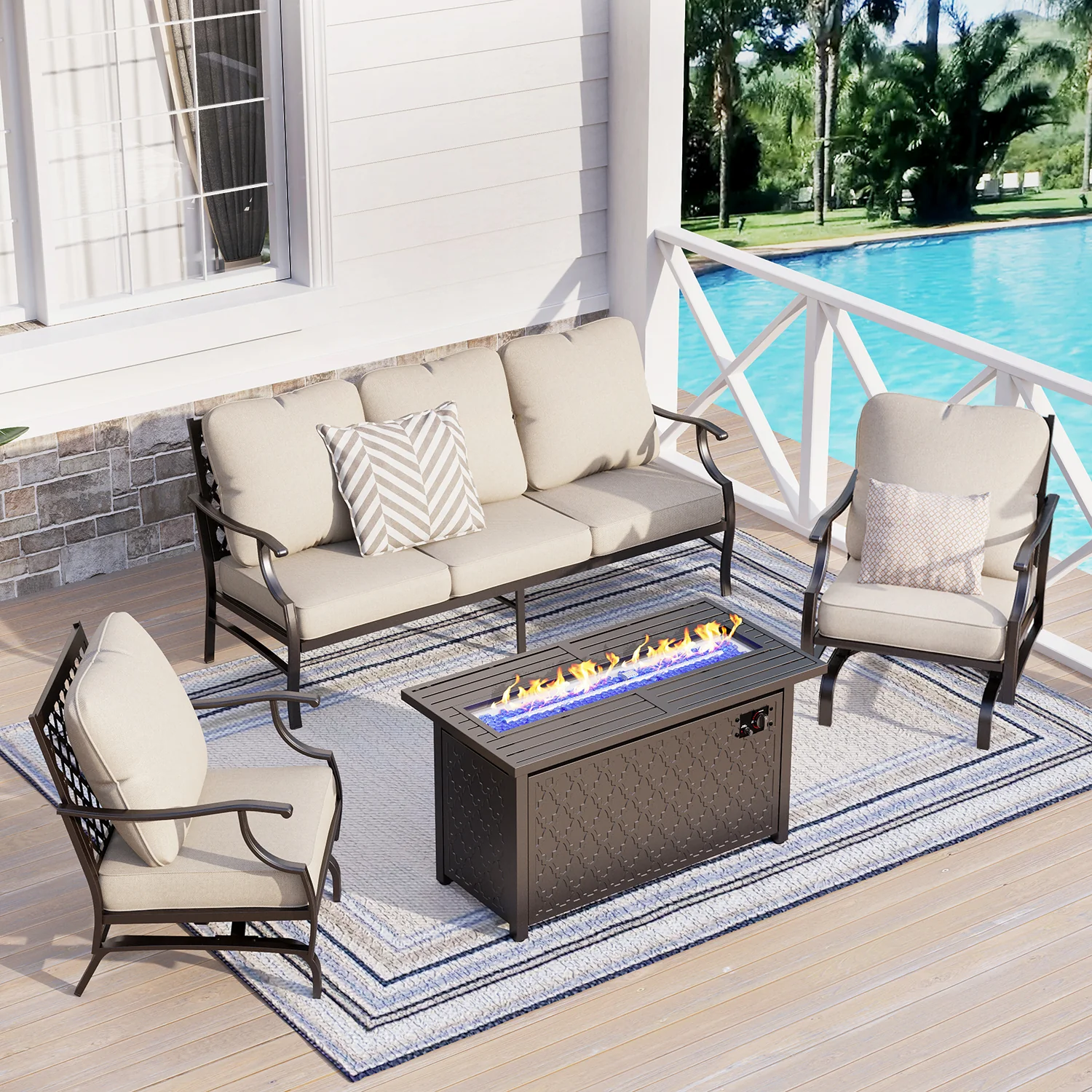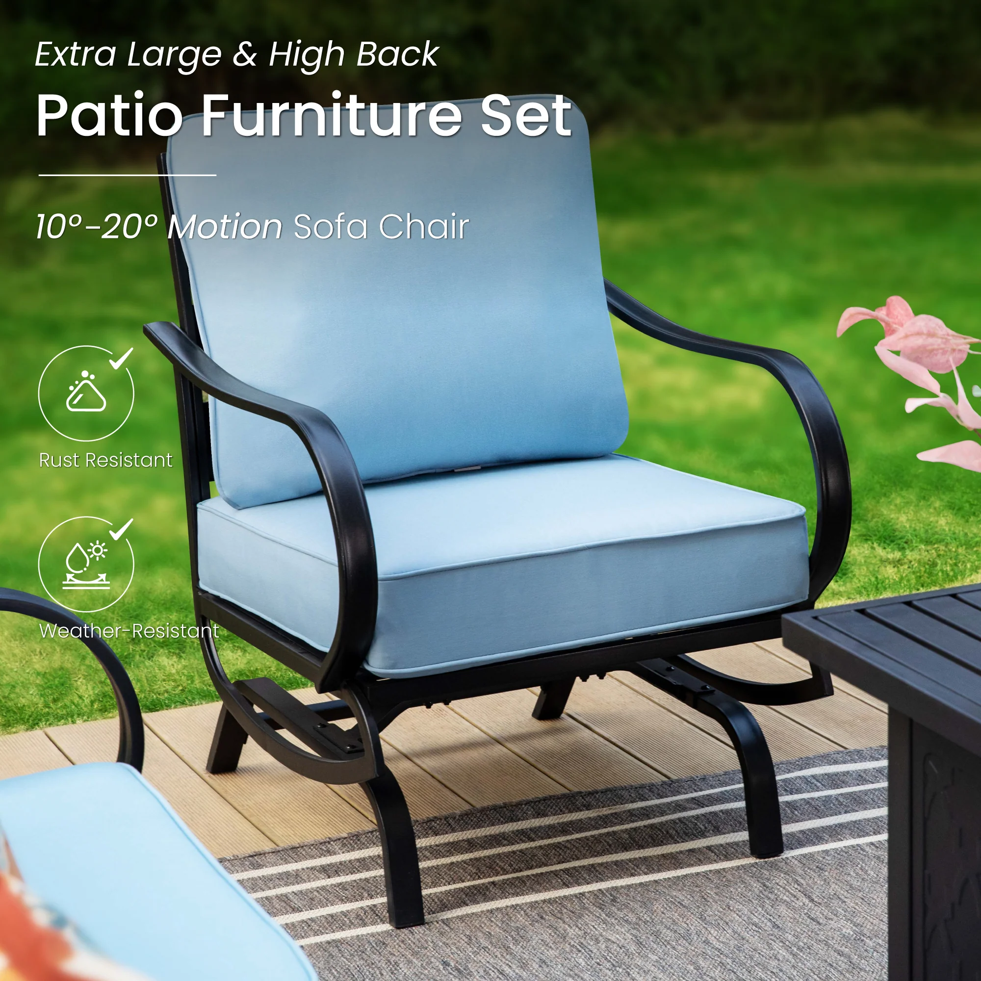 PHI VILLA 5-Seat Rattan-steel Luxury Padded Patio Conversation Set
