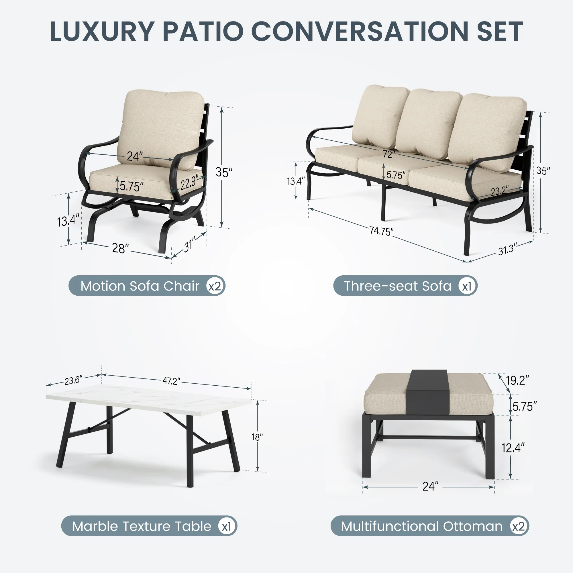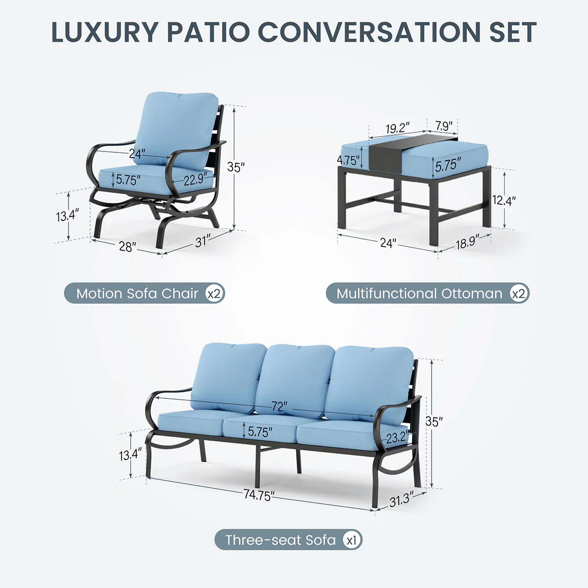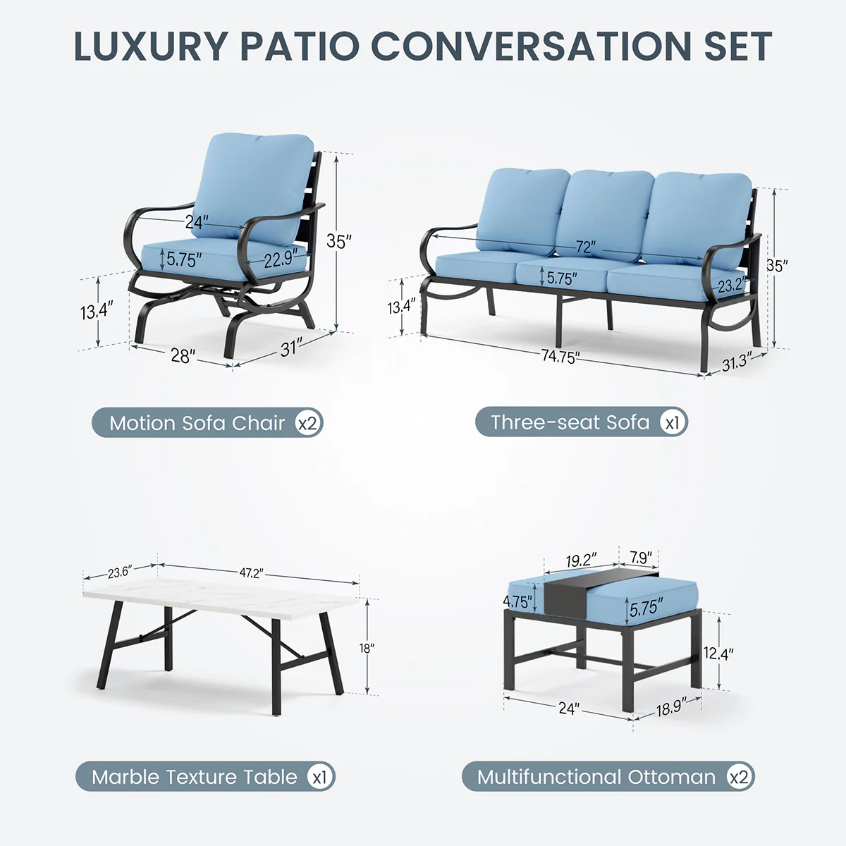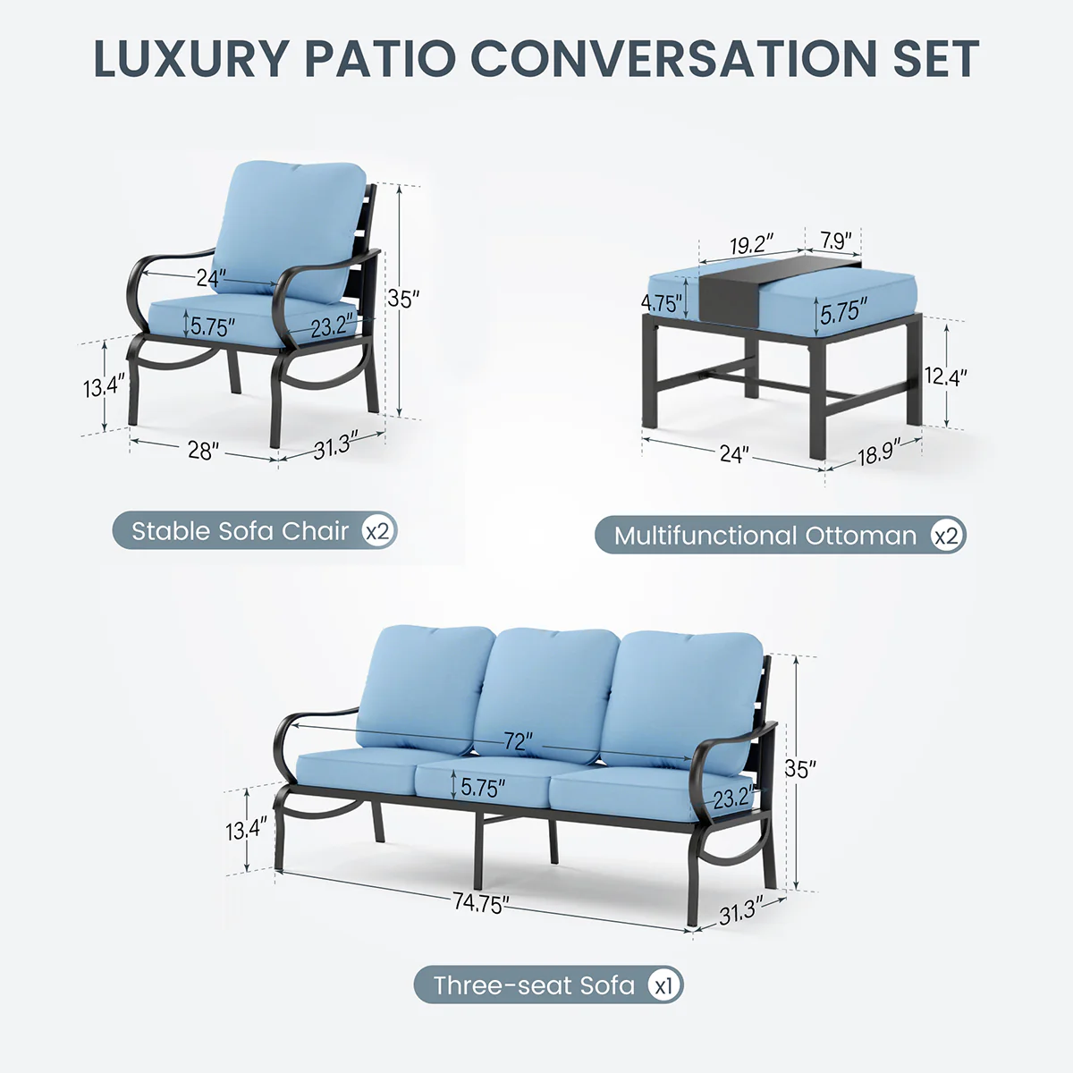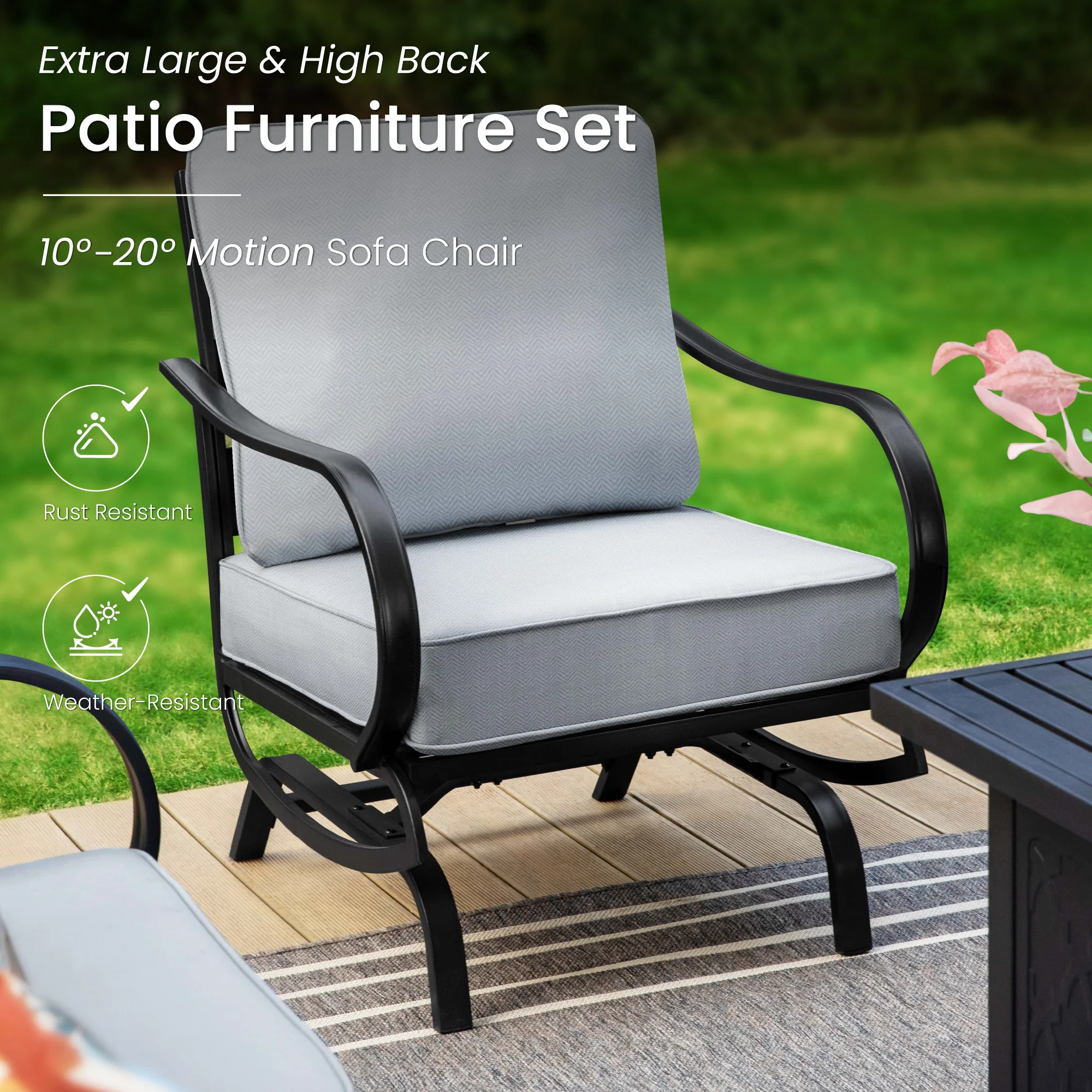 PHI VILLA 5-Seat Rattan-steel Luxury Padded Patio Conversation Set