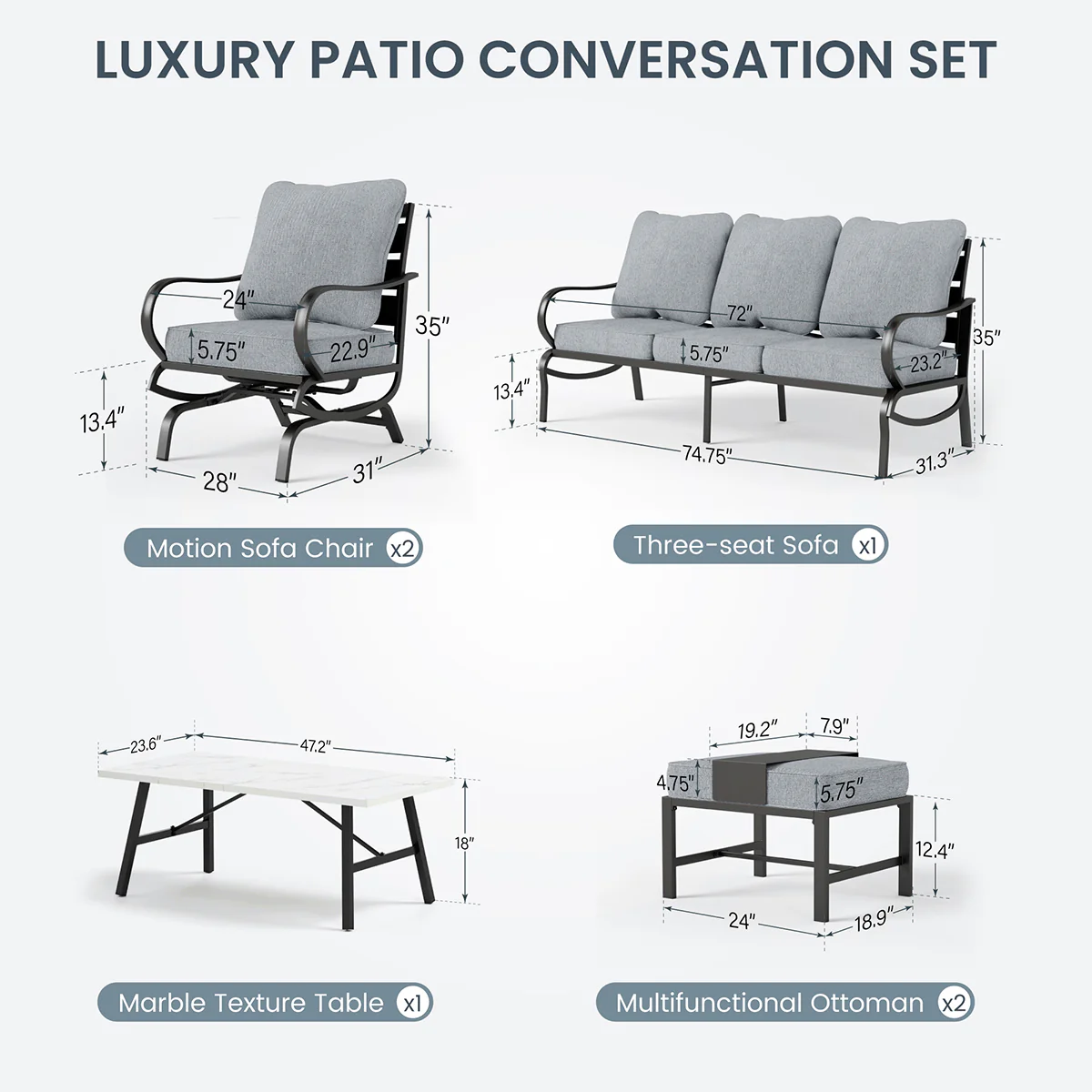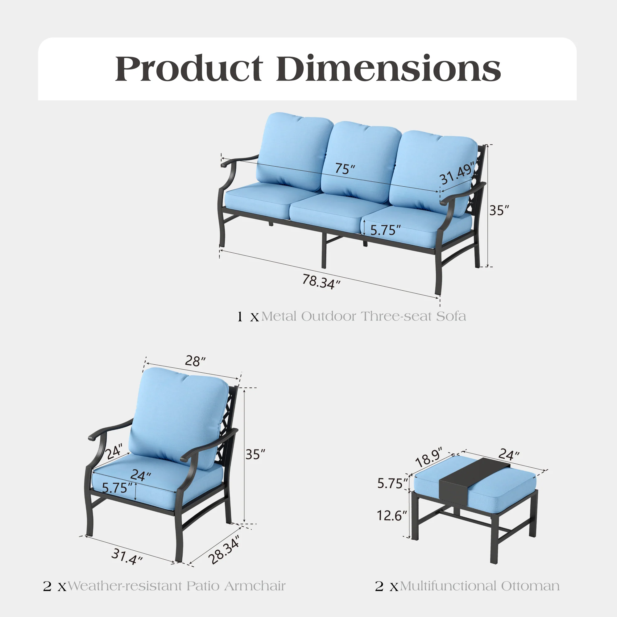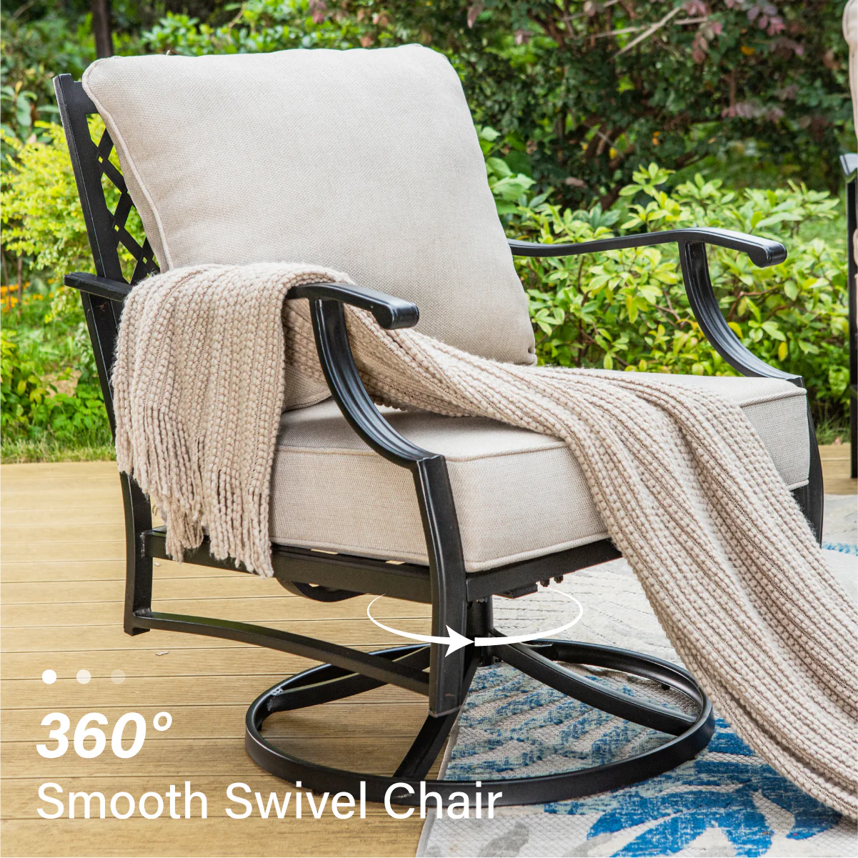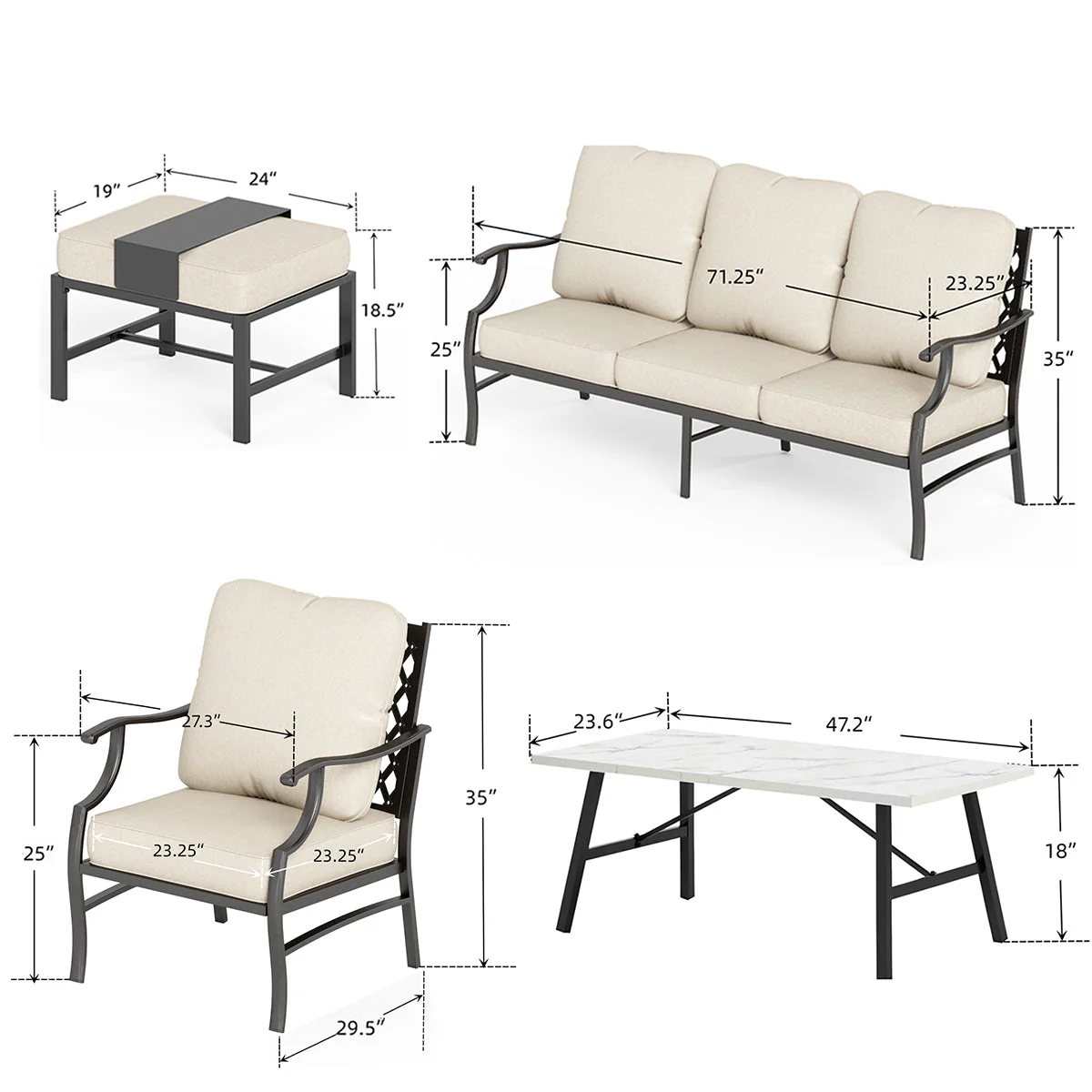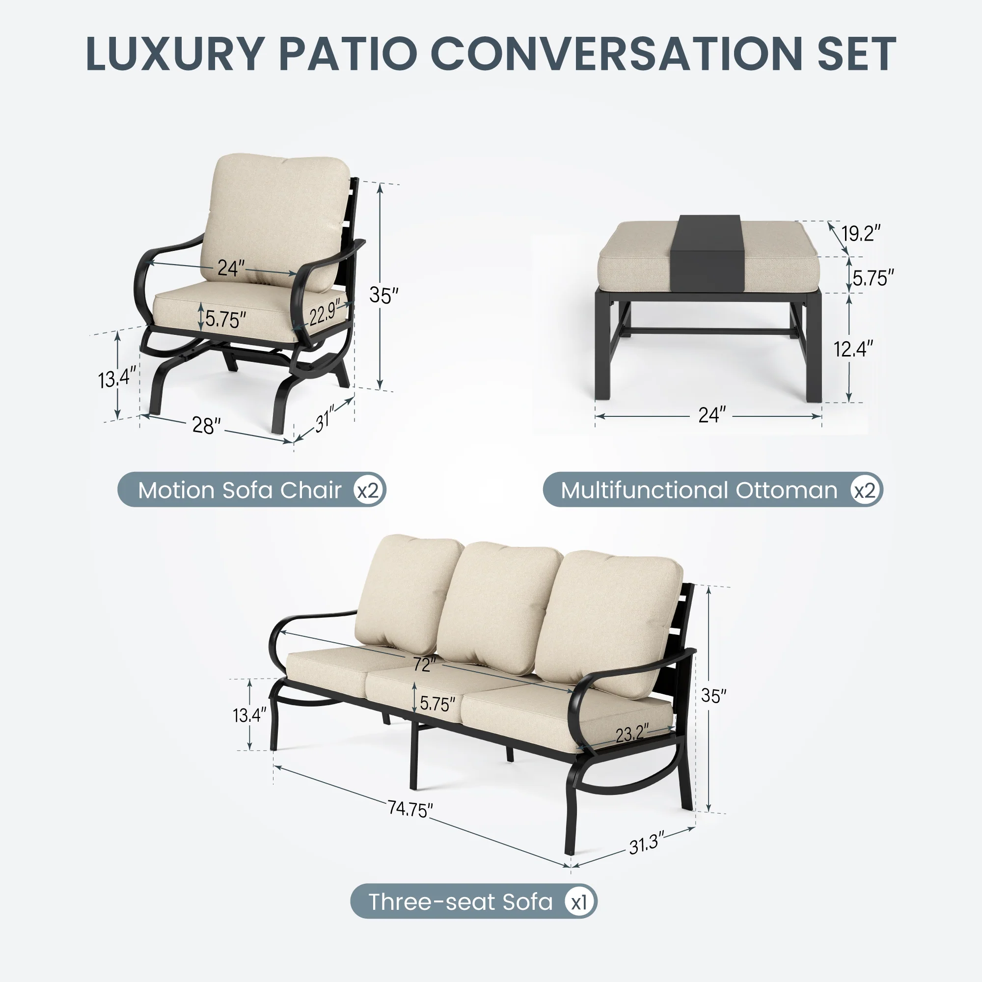 PHI VILLA 5-Seat Rattan-steel Luxury Padded Patio Conversation Set