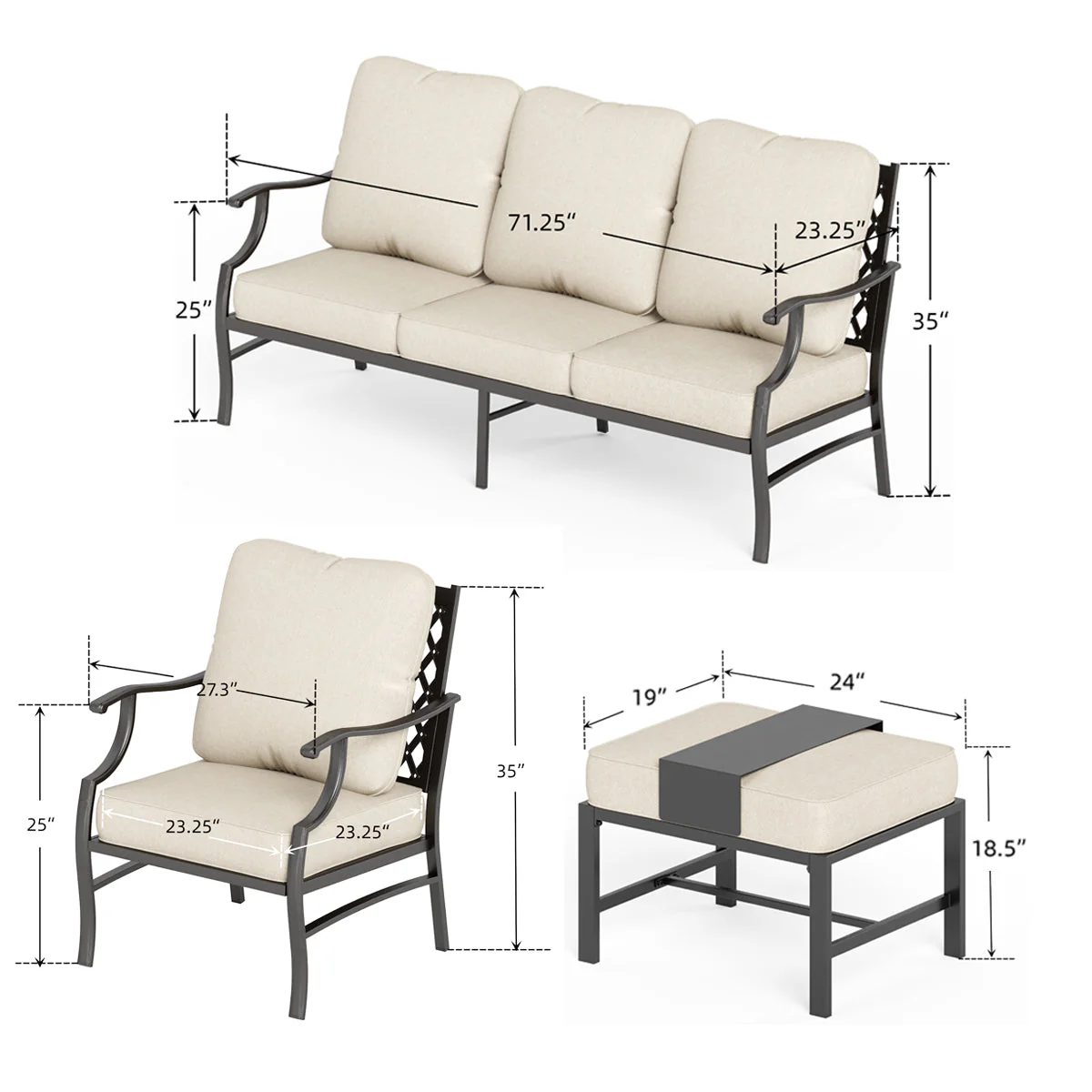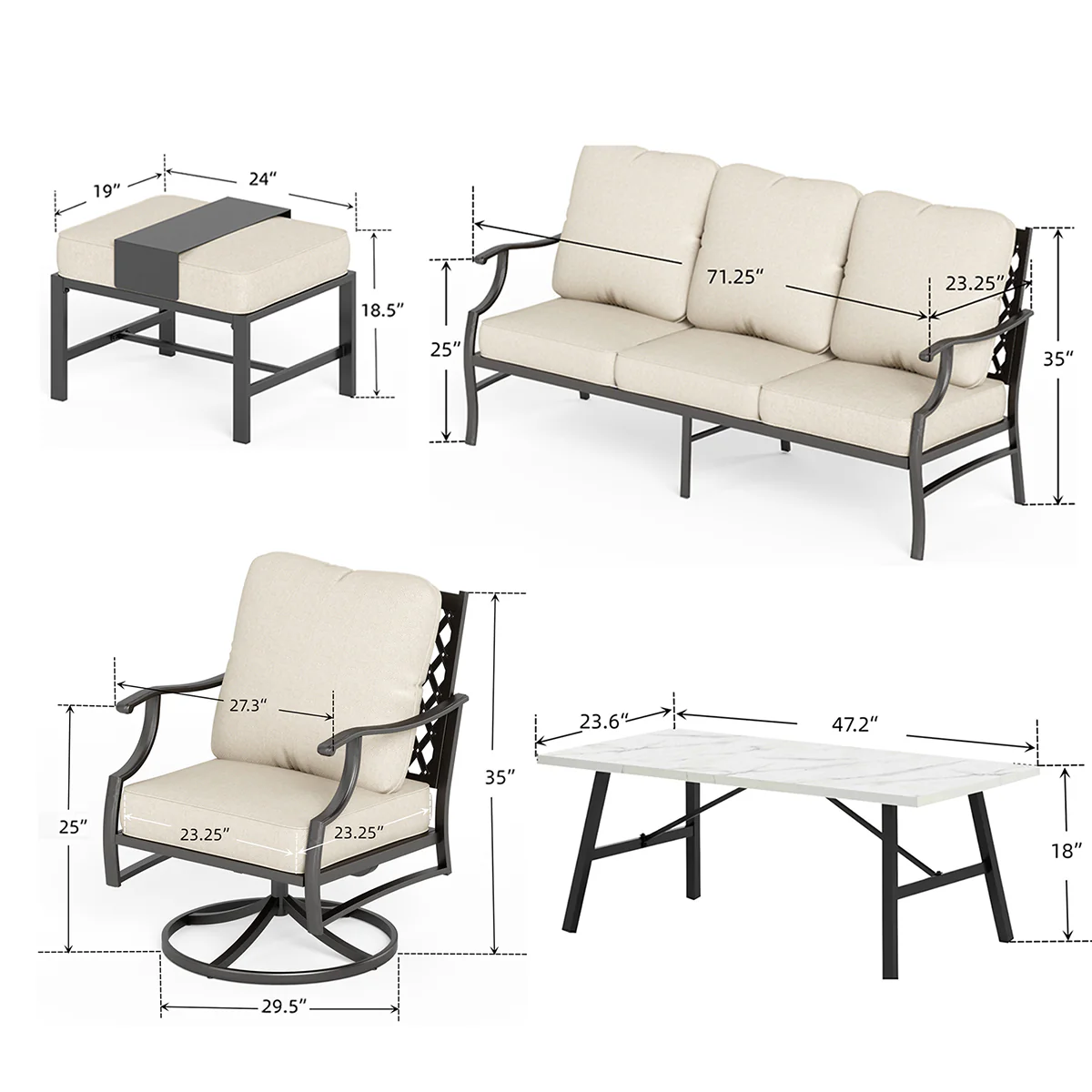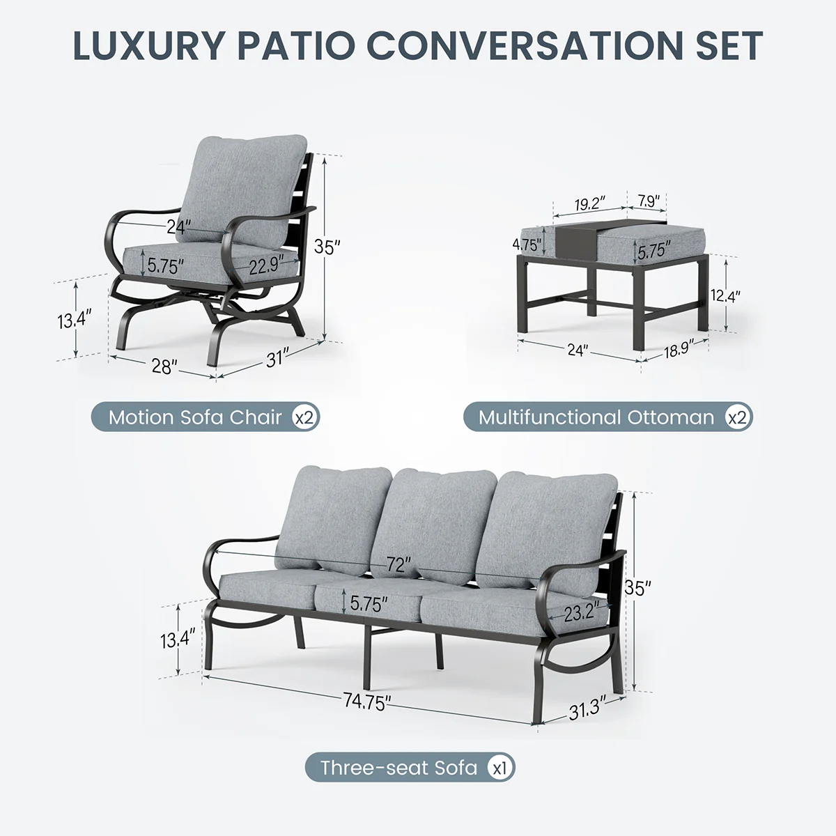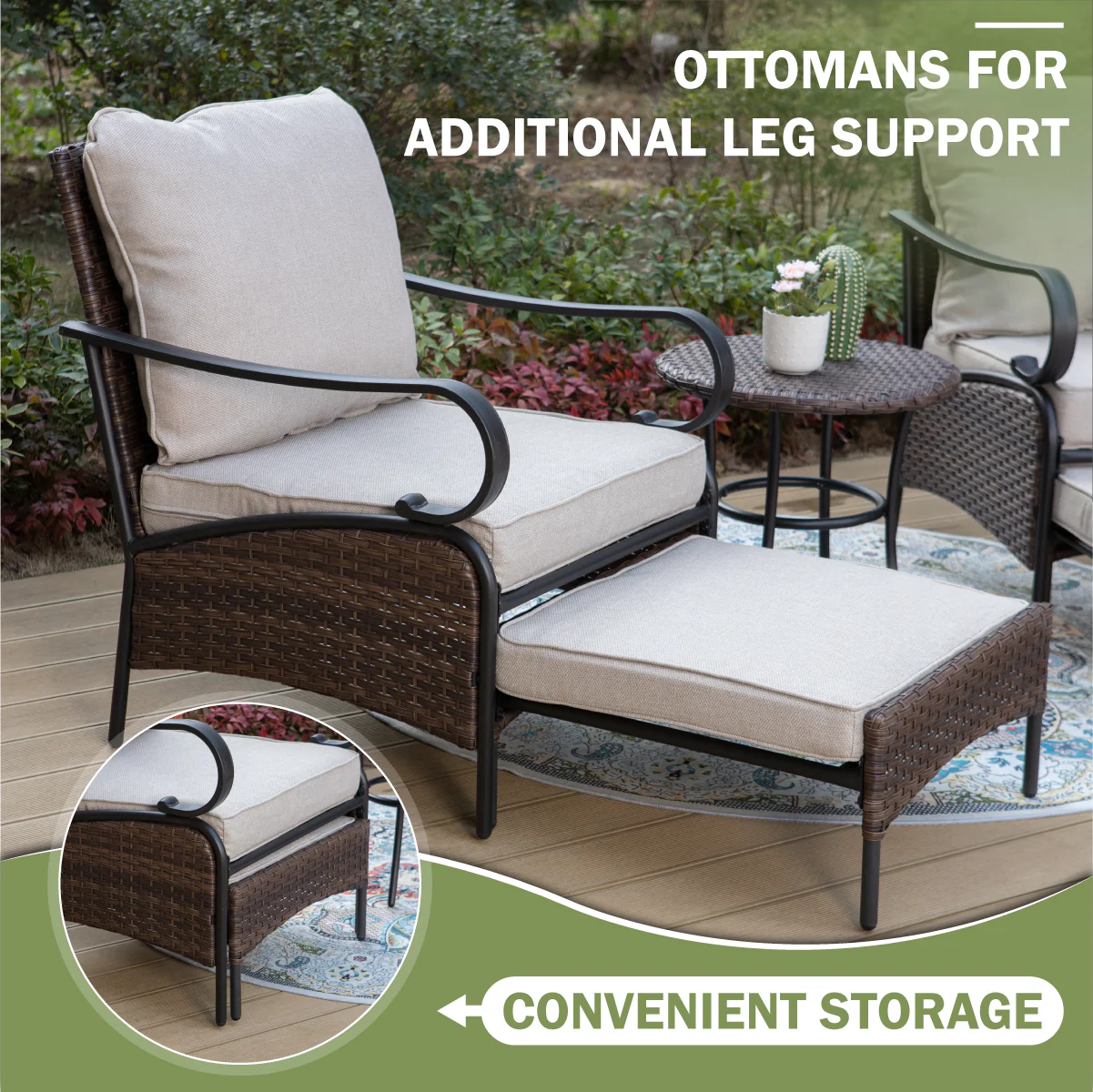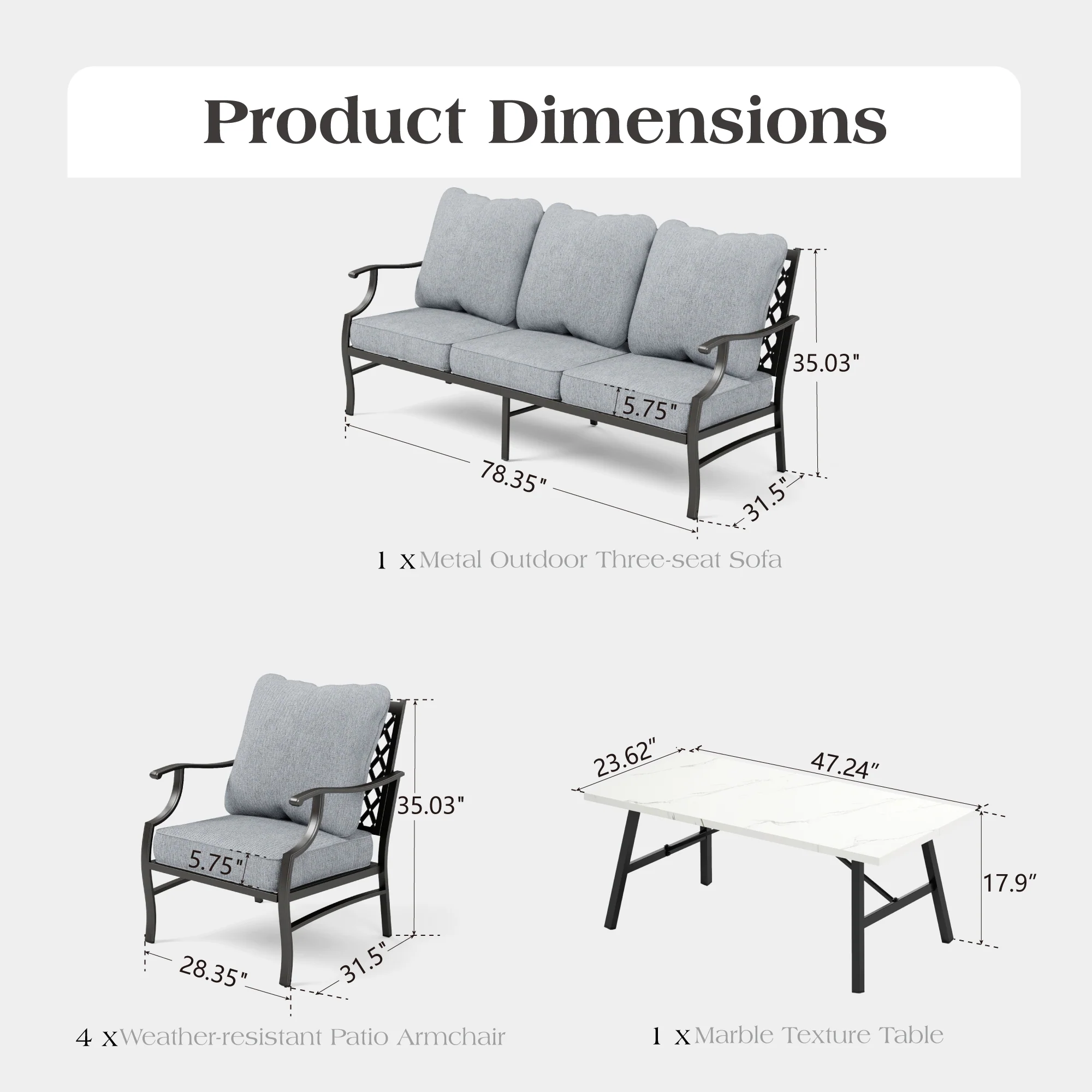 PHI VILLA 5-Seat Rattan-steel Luxury Padded Patio Conversation Set
