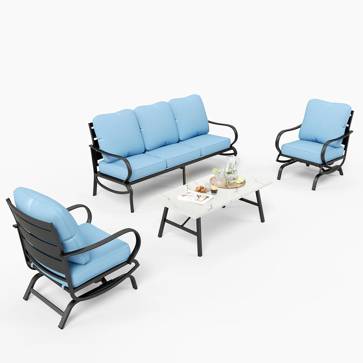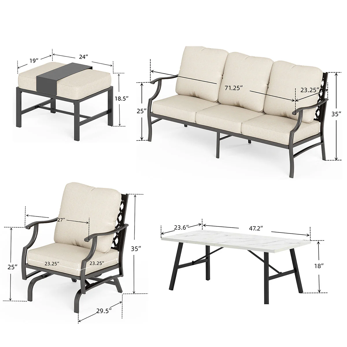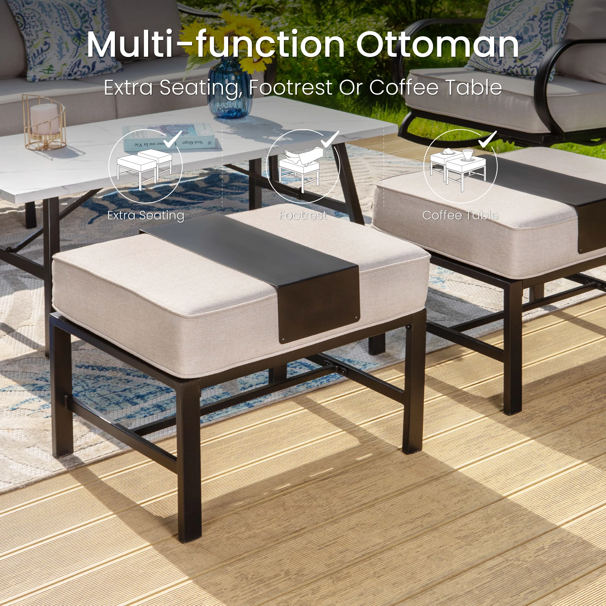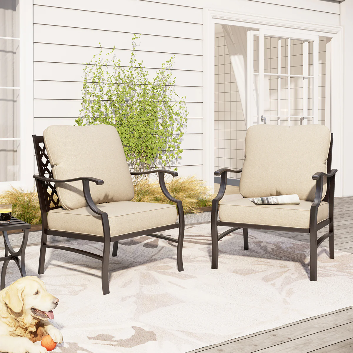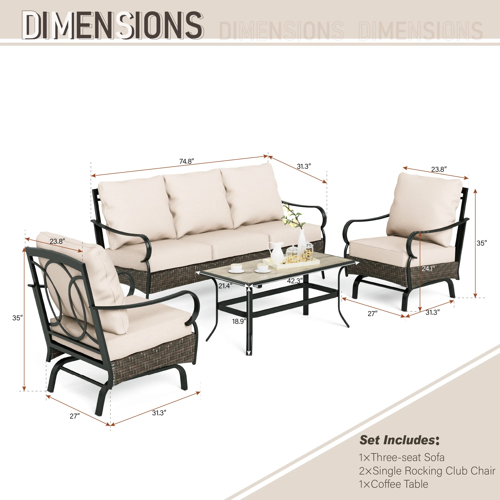 PHI VILLA 5-Seat Rattan-steel Luxury Padded Patio Conversation Set