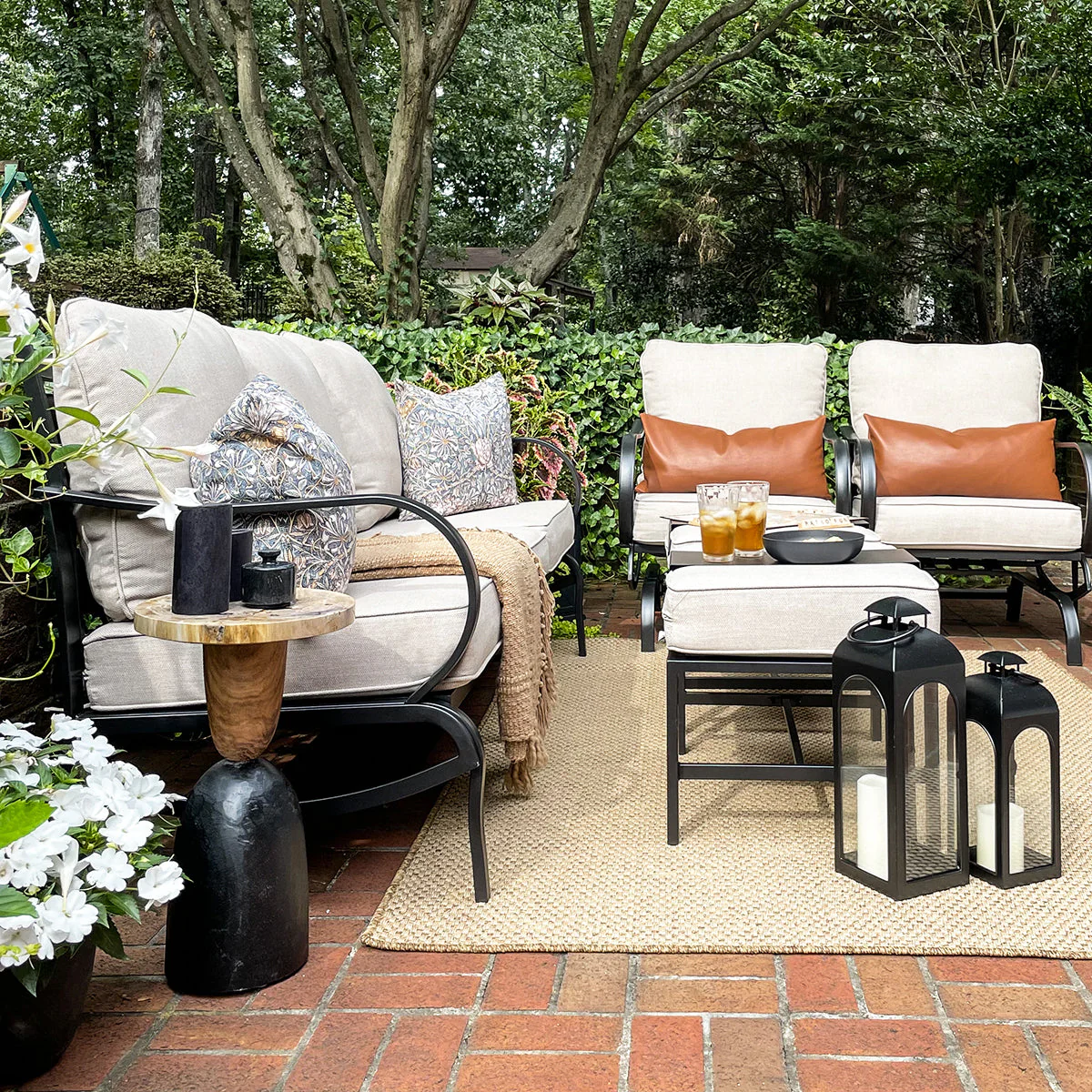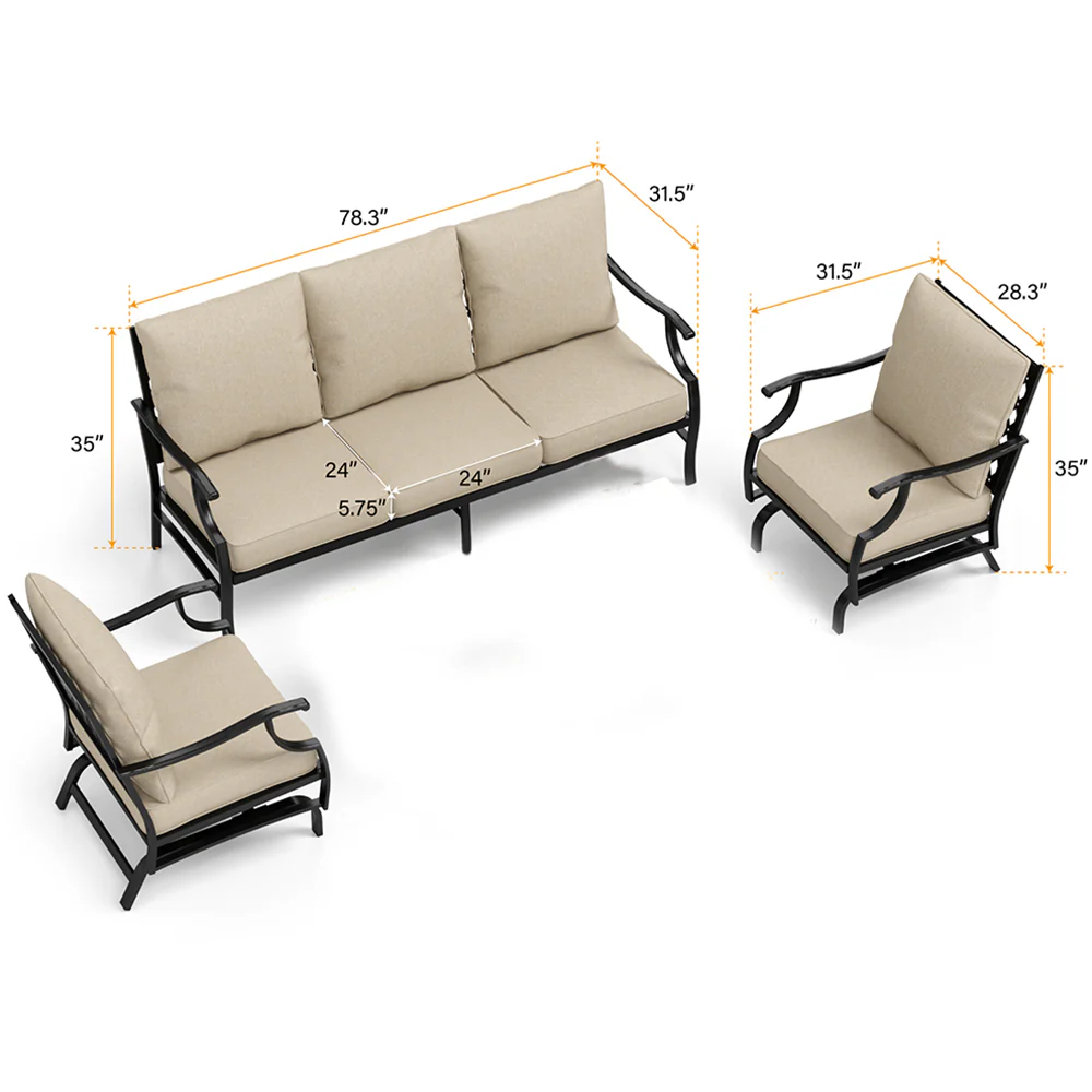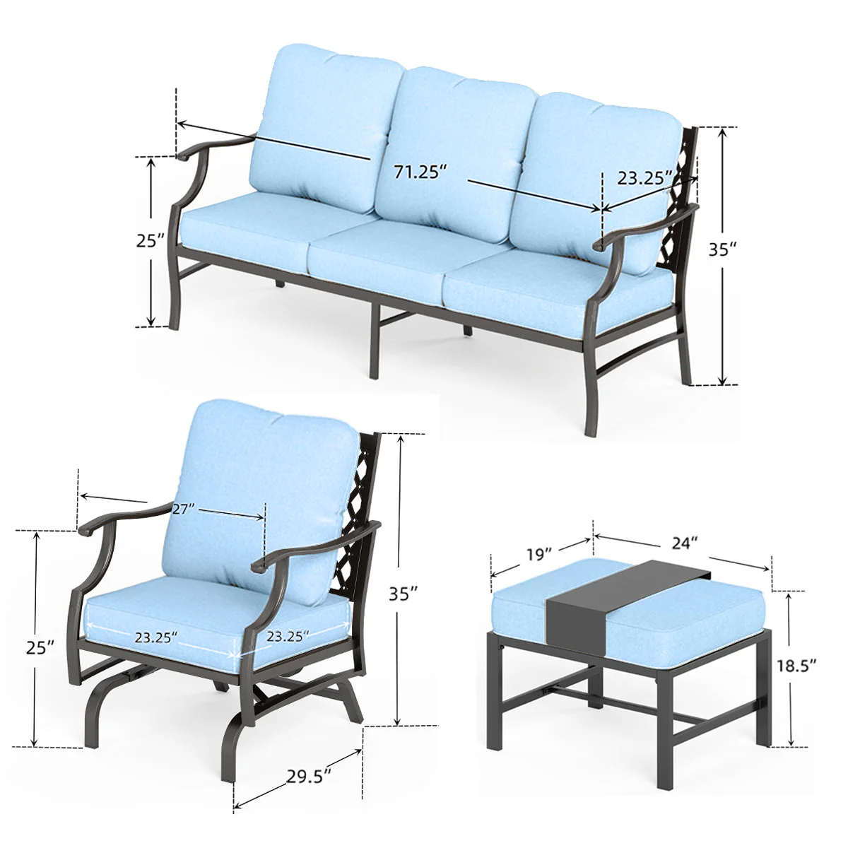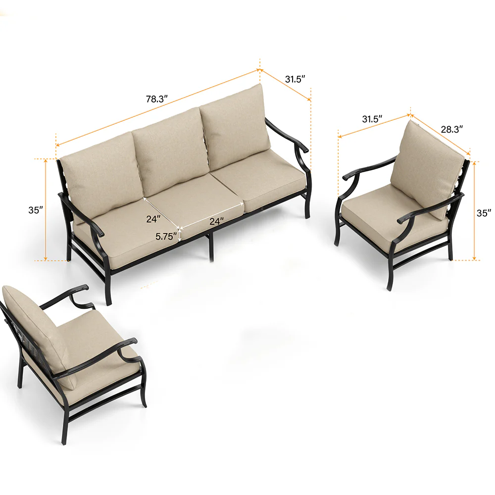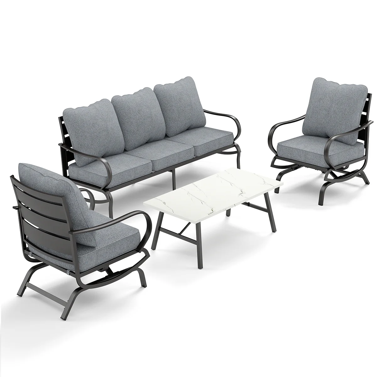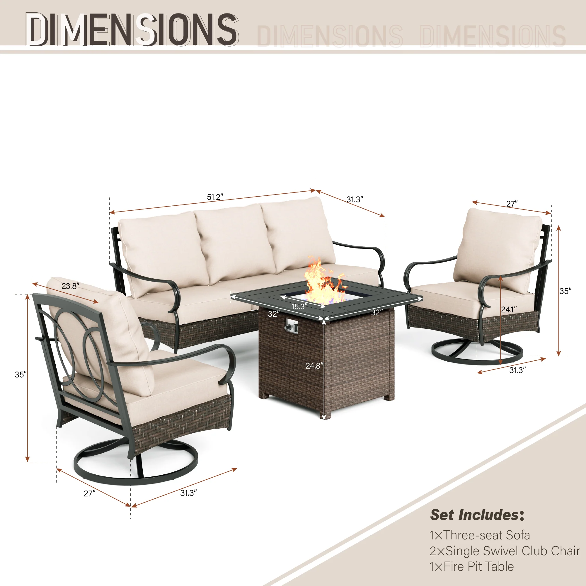 PHI VILLA 5-Seat Rattan-steel Luxury Padded Patio Conversation Set