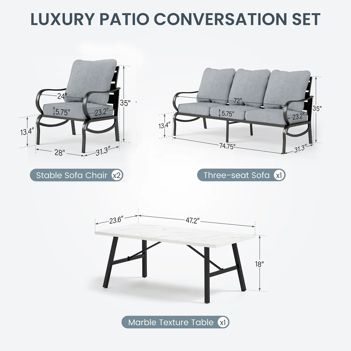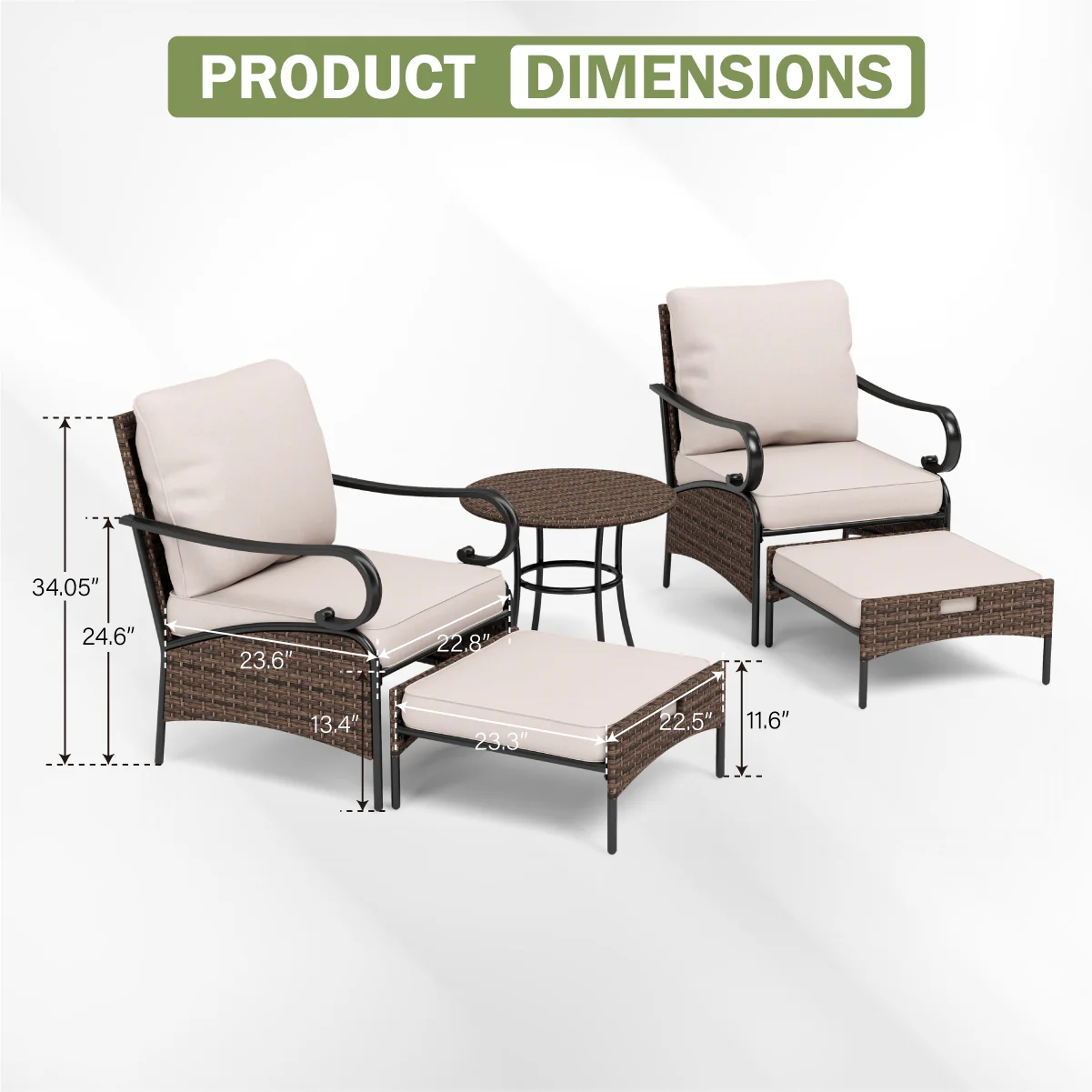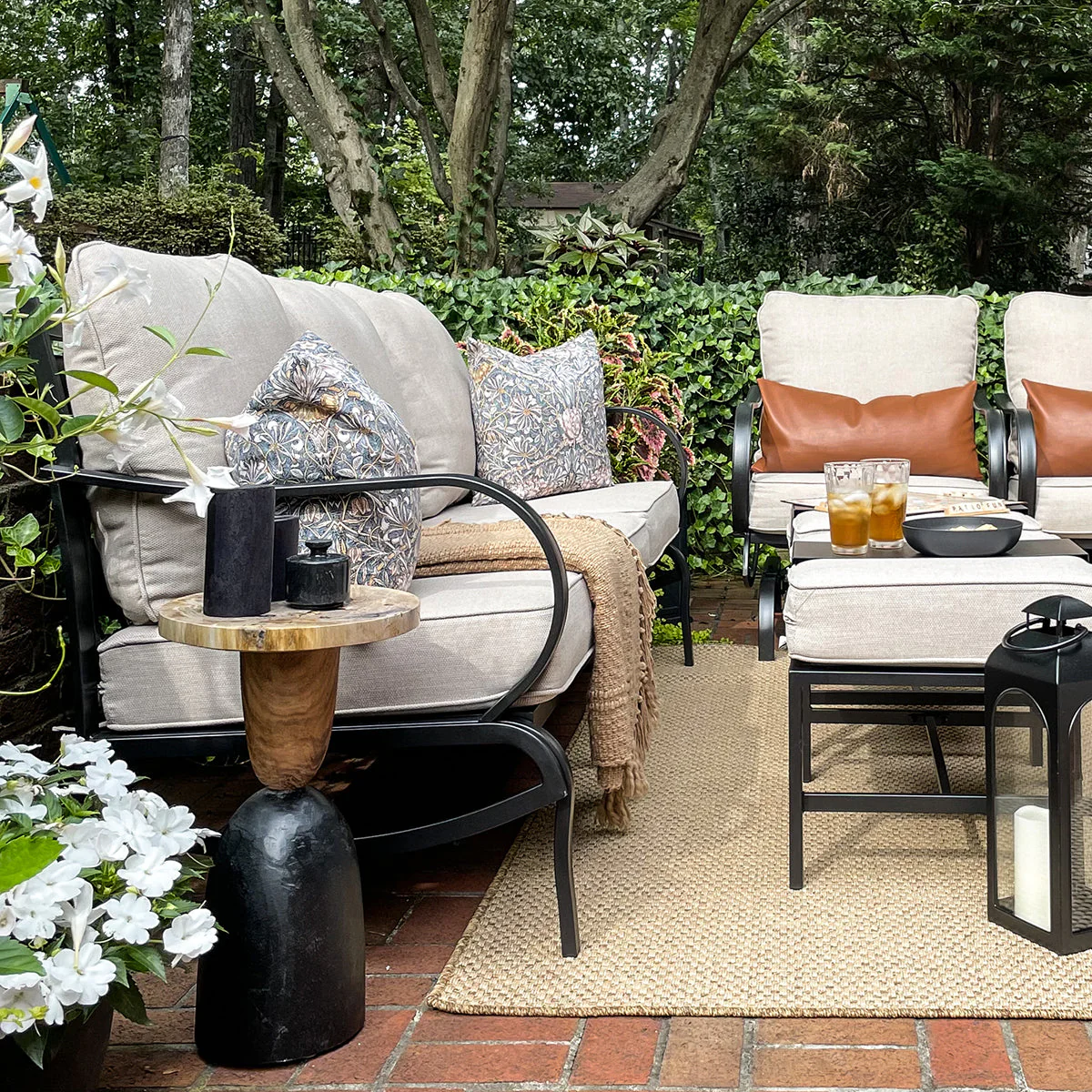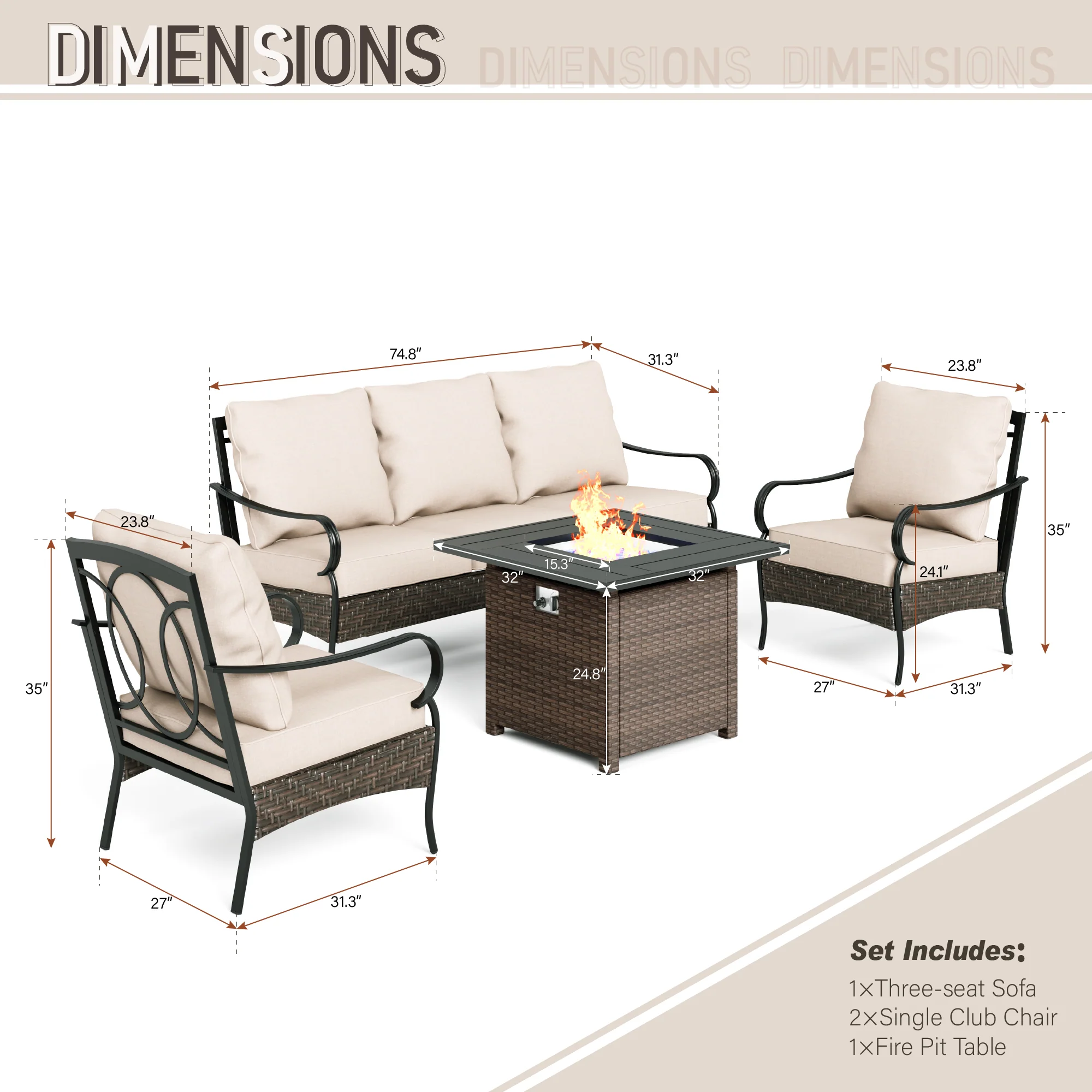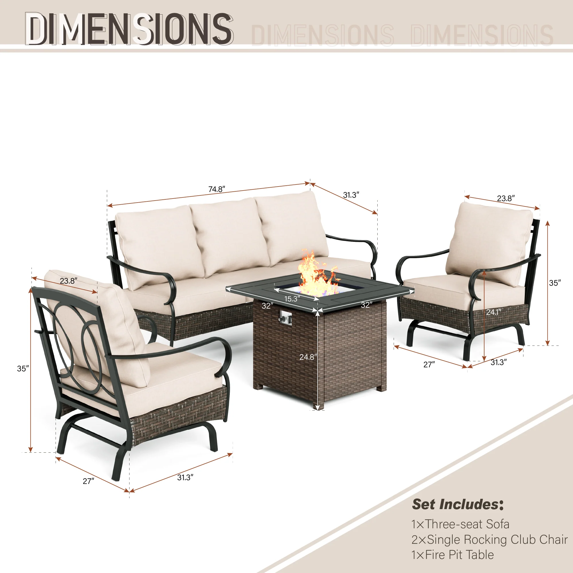 PHI VILLA 5-Seat Rattan-steel Luxury Padded Patio Conversation Set
